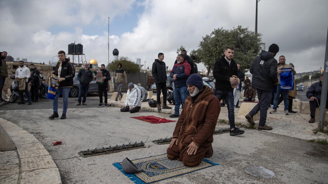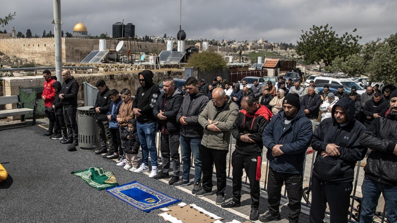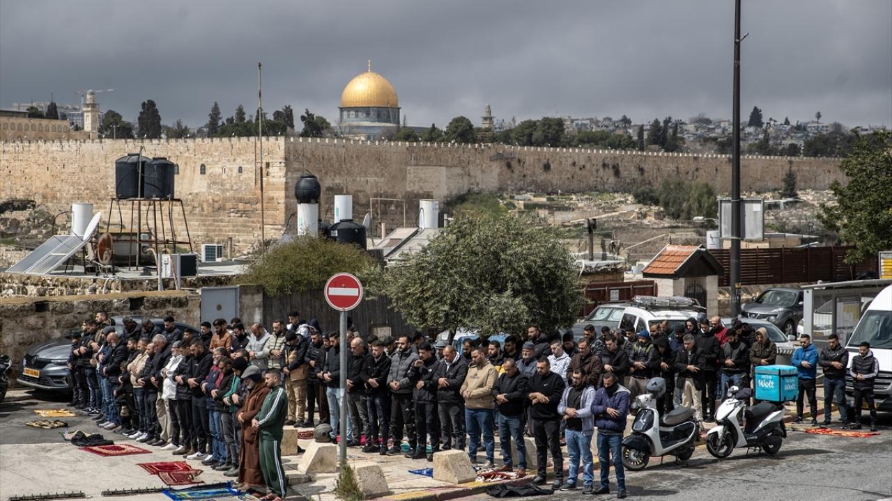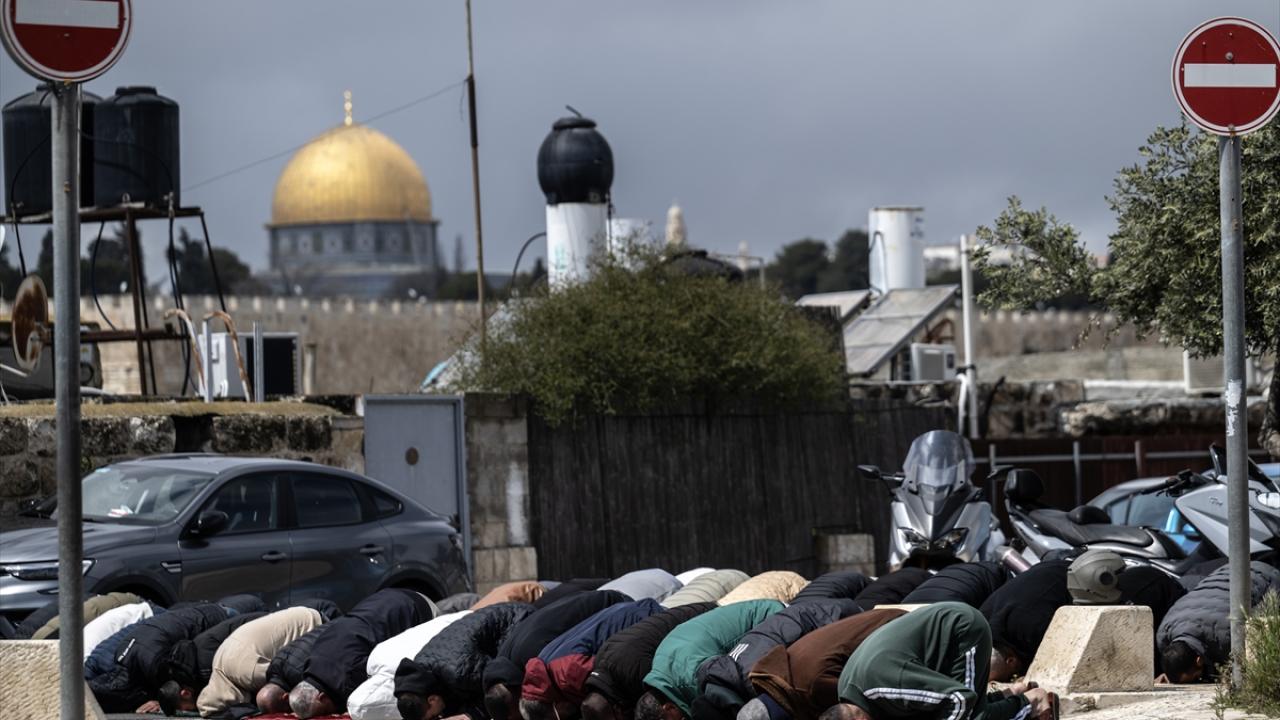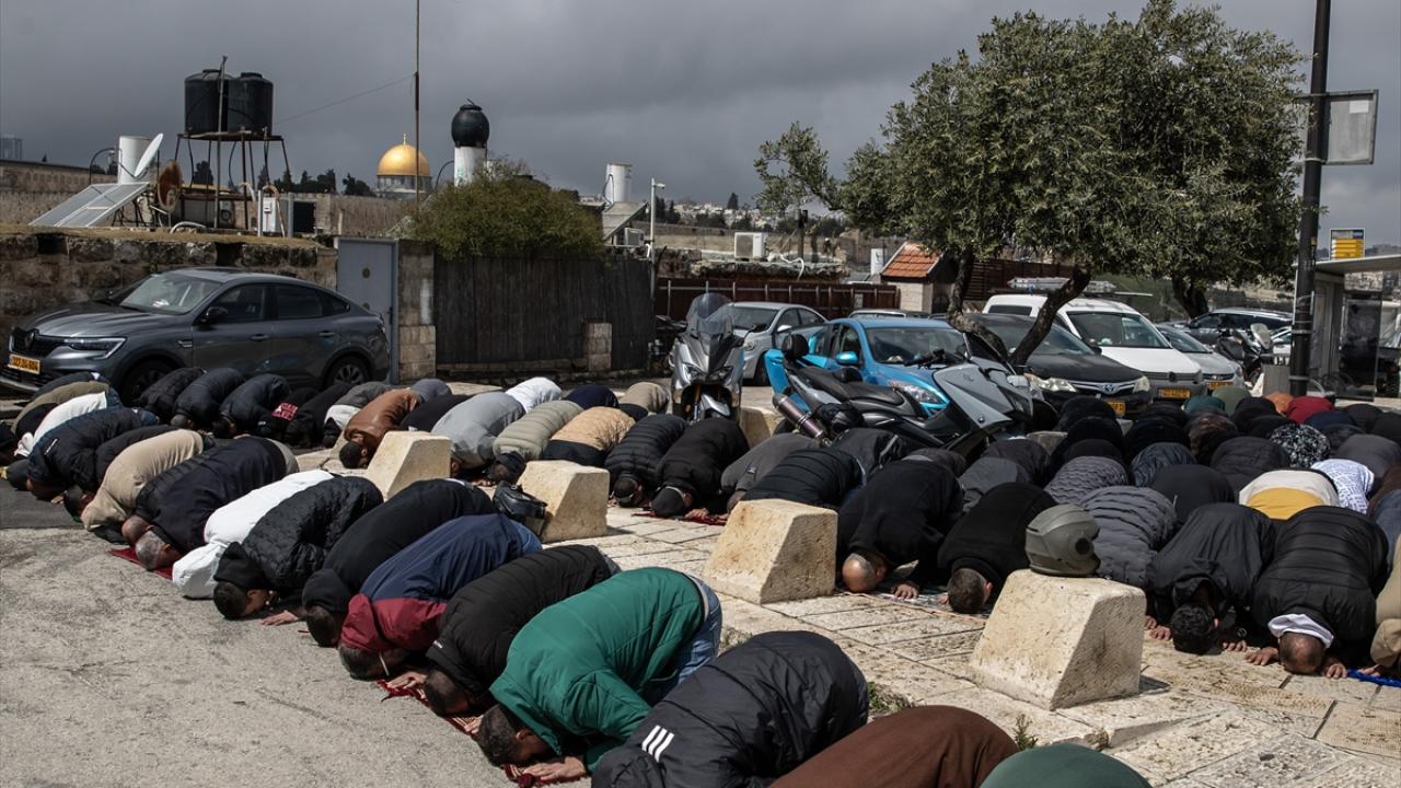 İsrail'in İran'a saldırıları bahane göstererek aldığı kısıtlama kararları nedeniyle 28 Şubat'tan bu yana Doğu Kudüs'teki Mescid-i Aksa'yı kapalı tutması nedeniyle Müslümanlar, cuma namazını sokaklarda kıldı.
