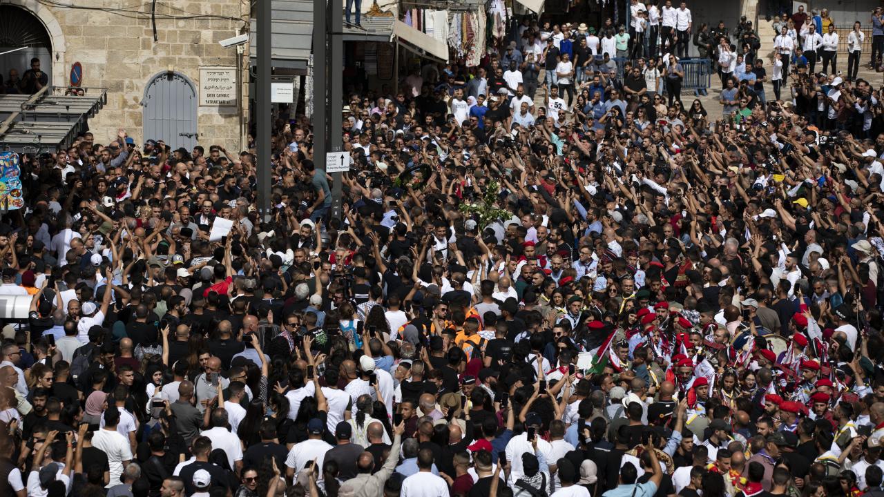 Eski Şehir`in surları boyunca ilerleyen grup burada asılı İsrail bayraklarını indirdi. İsrail polisi, belirli noktalarda kalabalığı bölmek için cenazeye katılanlara müdahale etti. İsrail polisi, en az 3 kişiyi gözaltına aldı.