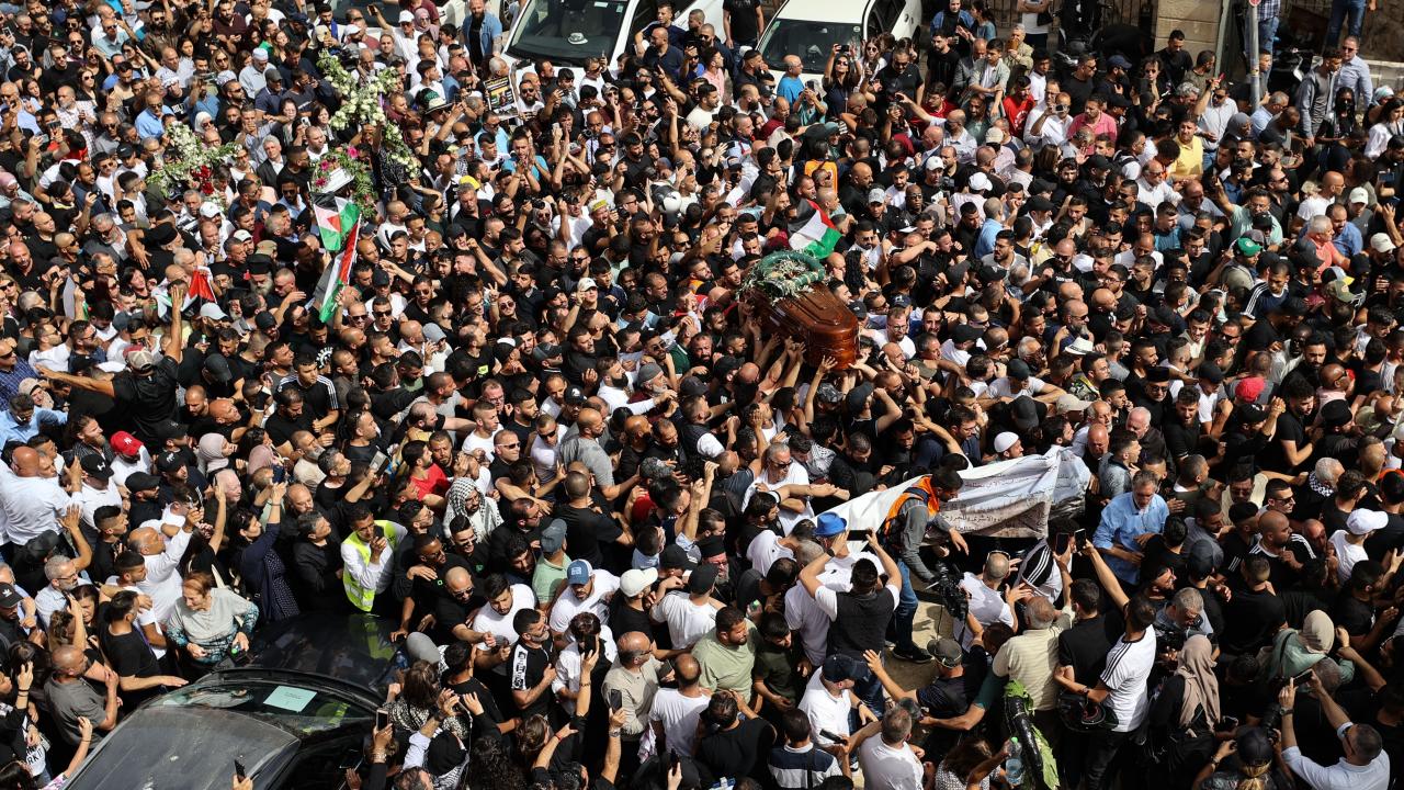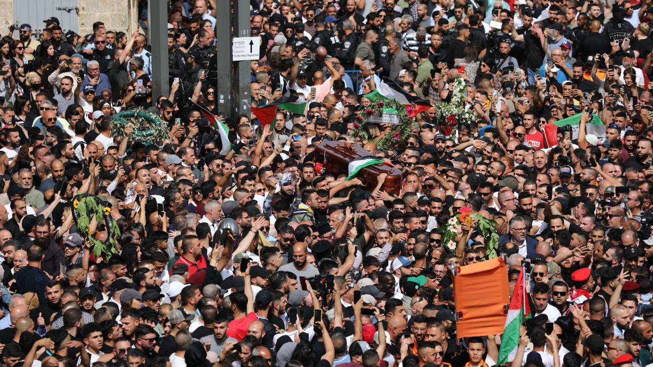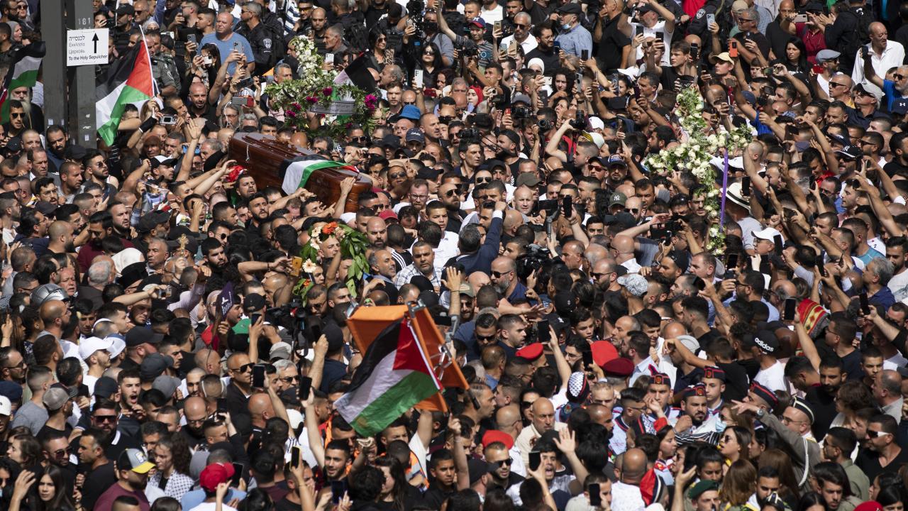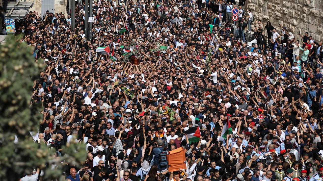 İsrail askerlerinin öldürdüğü Al Jazeera televizyonunun Filistinli kadın muhabiri Şirin Ebu Akile'nin cenazesi on binlerce kişinin katılımıyla işgal altındaki Doğu Kudüs'te toprağa verildi.