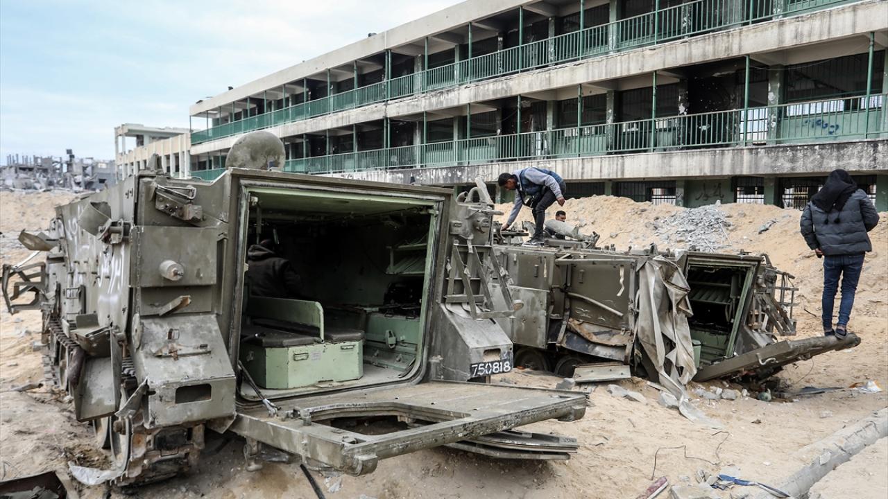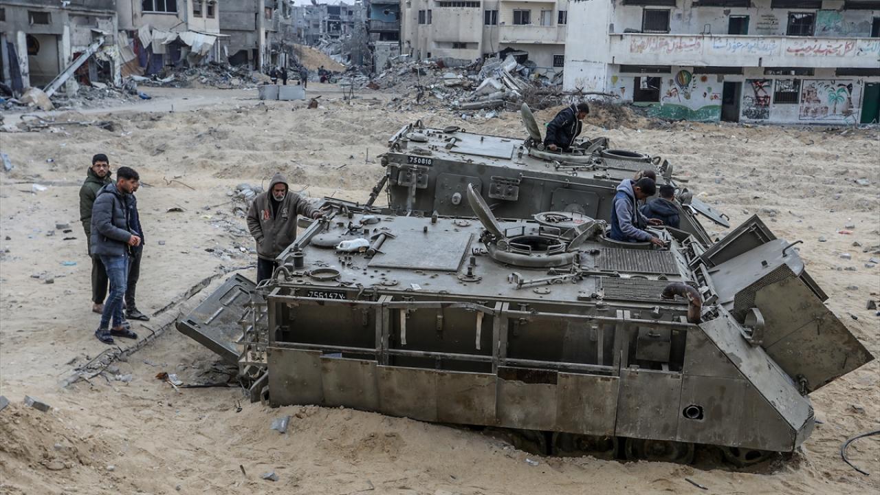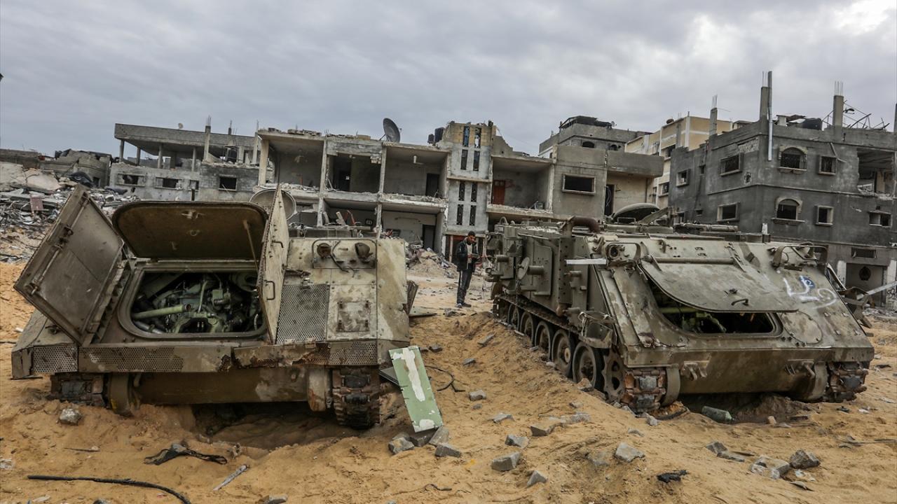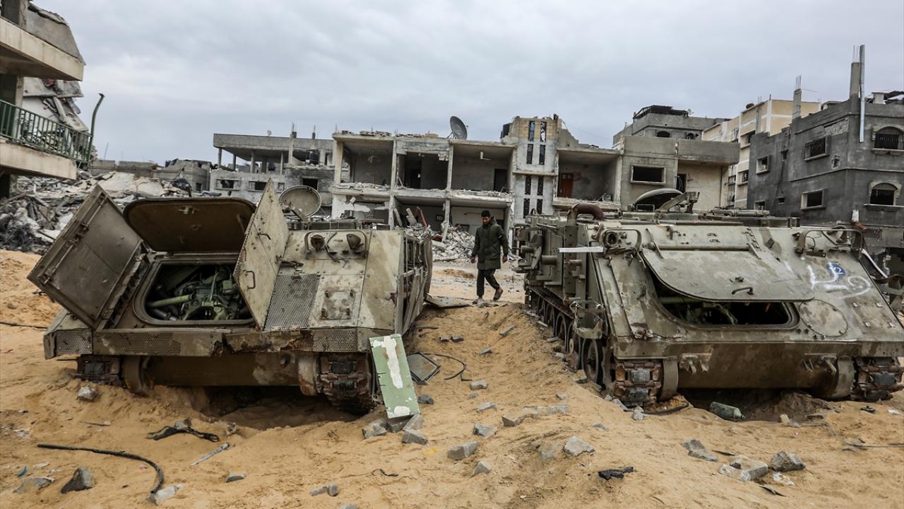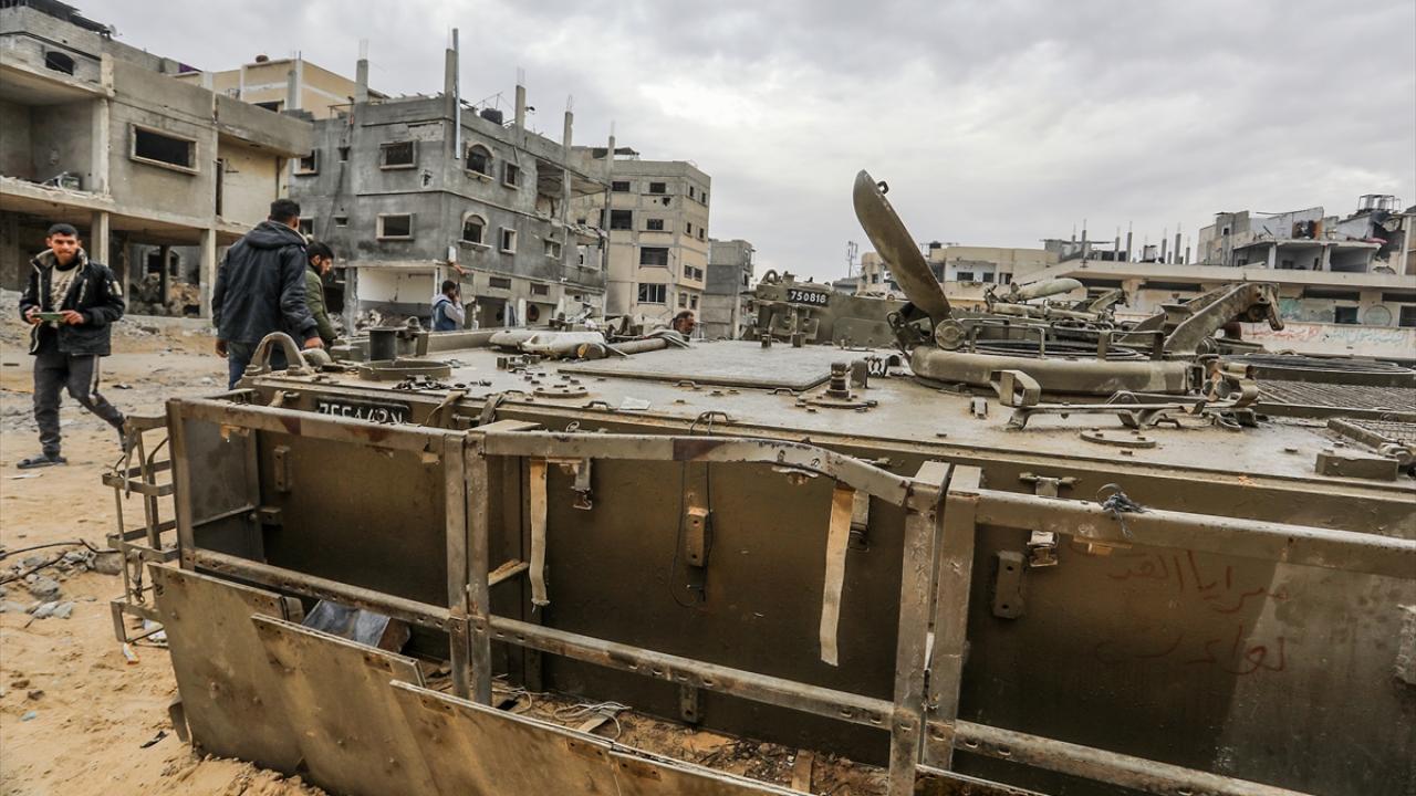 İsrail ile Hamas arasında Gazze'de sağlanan ateşkes sonrası Refah'tan çekilen İsrail güçleri, hasar görmüş bazı askeri araçları bölgede bıraktı.