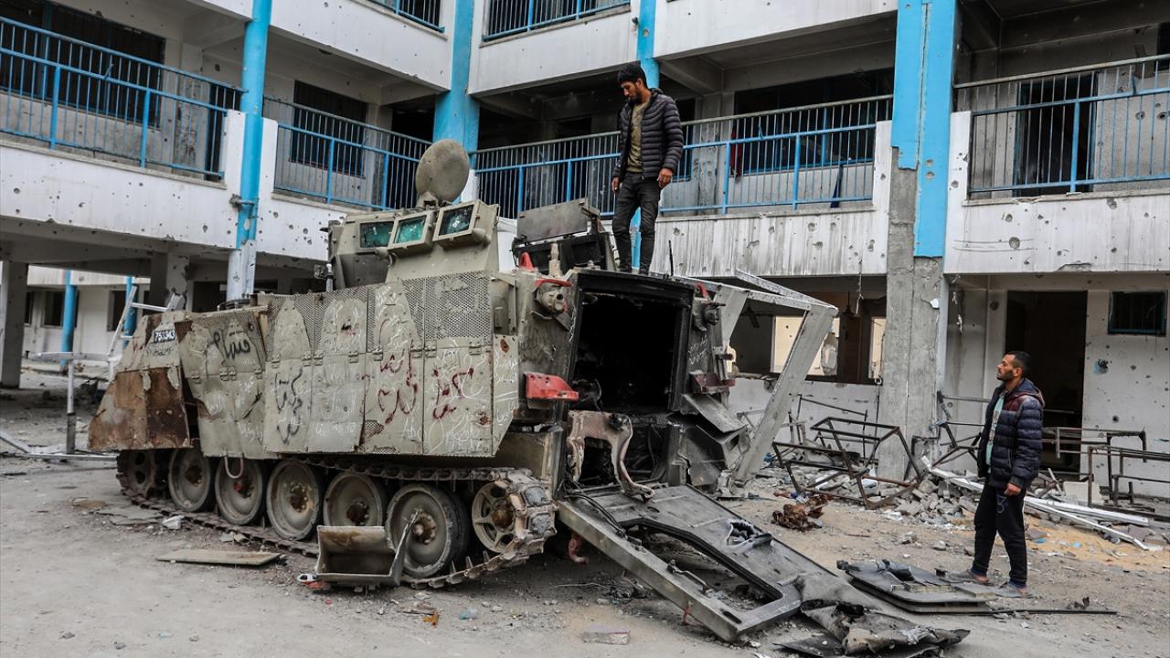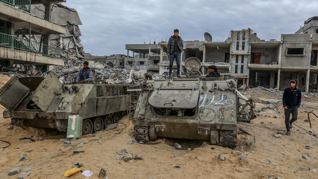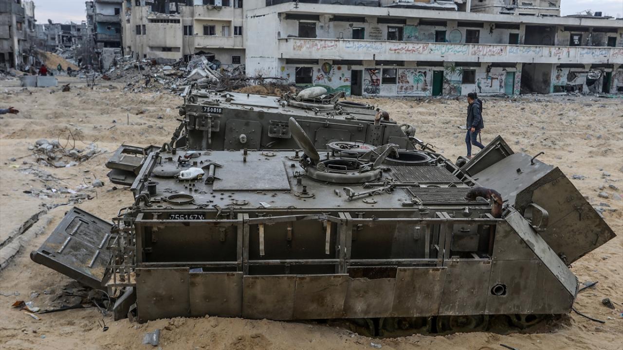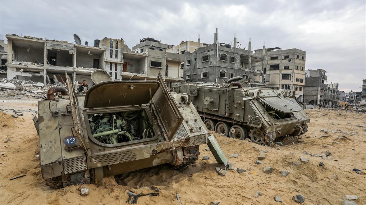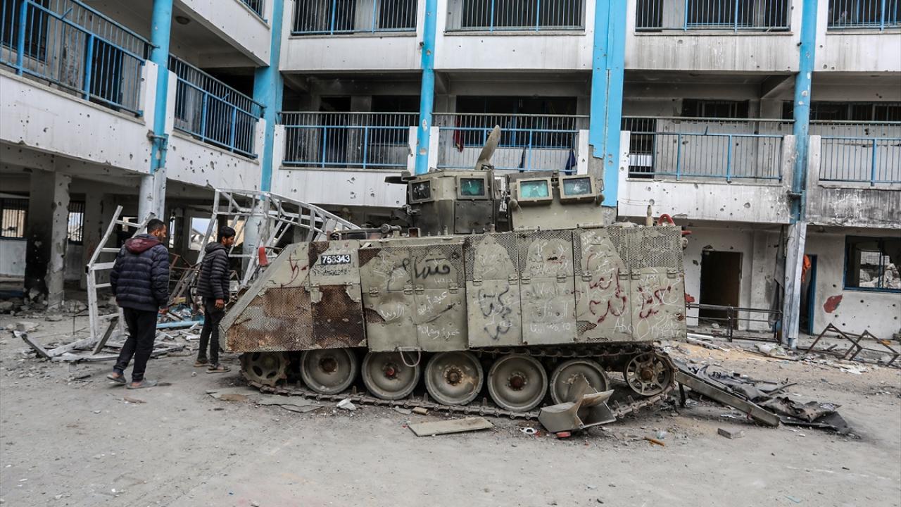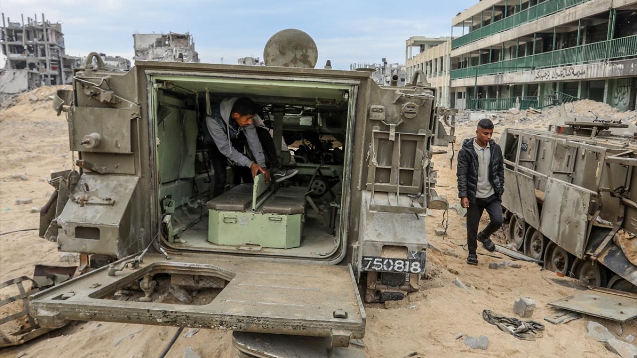 İsrail ile Hamas arasında Gazze'de sağlanan ateşkes sonrası Refah'tan çekilen İsrail güçleri, hasar görmüş bazı askeri araçları bölgede bıraktı.