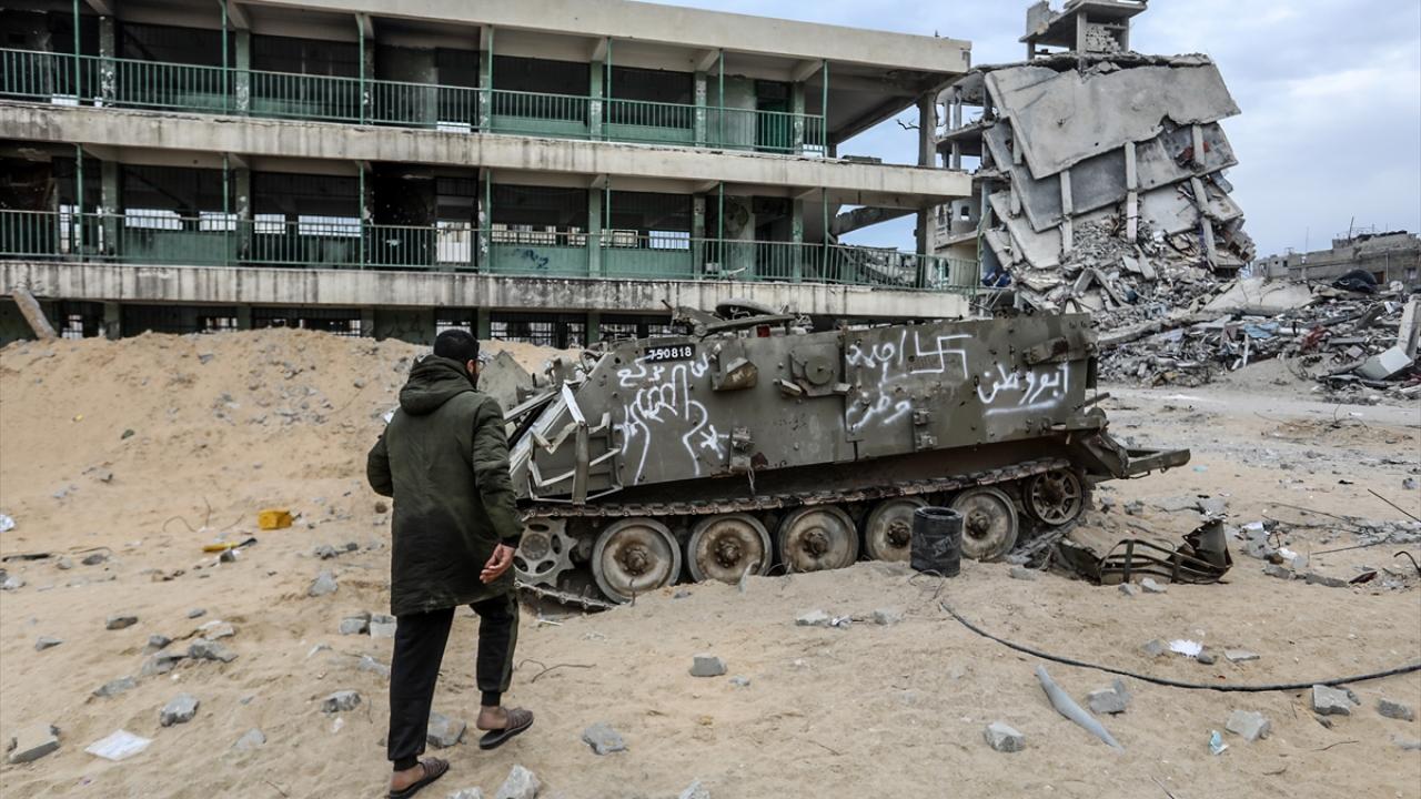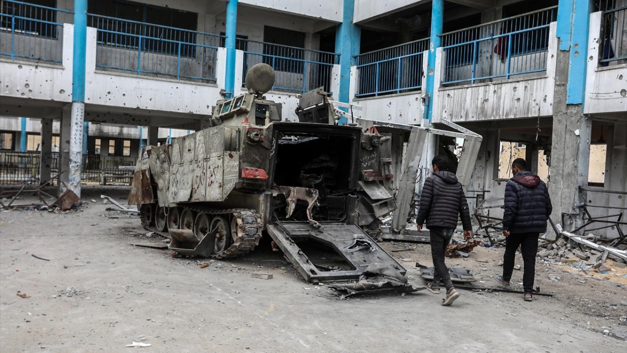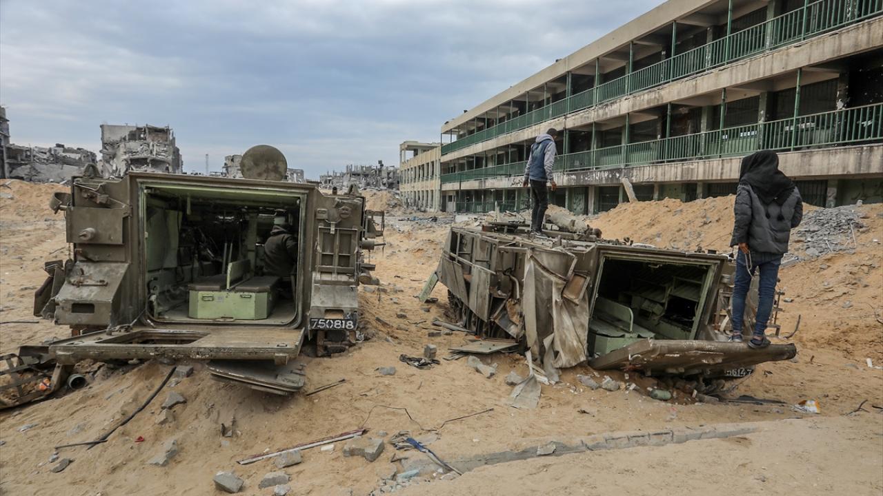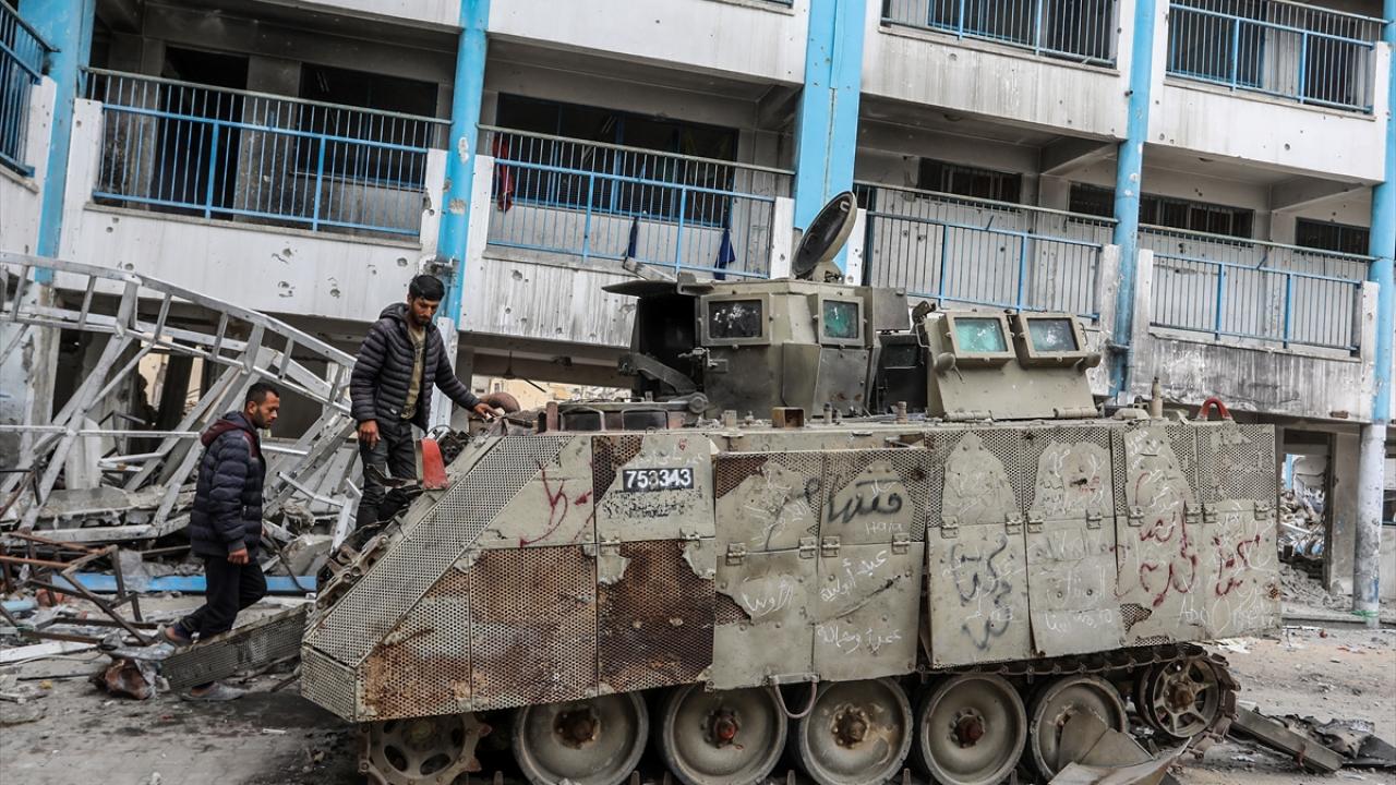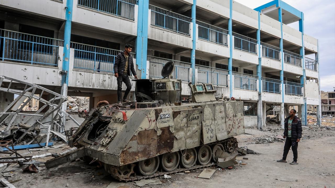 İsrail ile Hamas arasında Gazze'de sağlanan ateşkes sonrası Refah'tan çekilen İsrail güçleri, hasar görmüş bazı askeri araçları bölgede bıraktı.