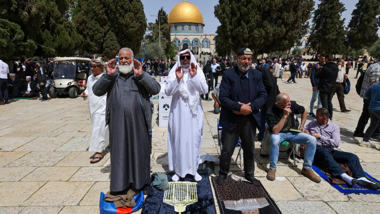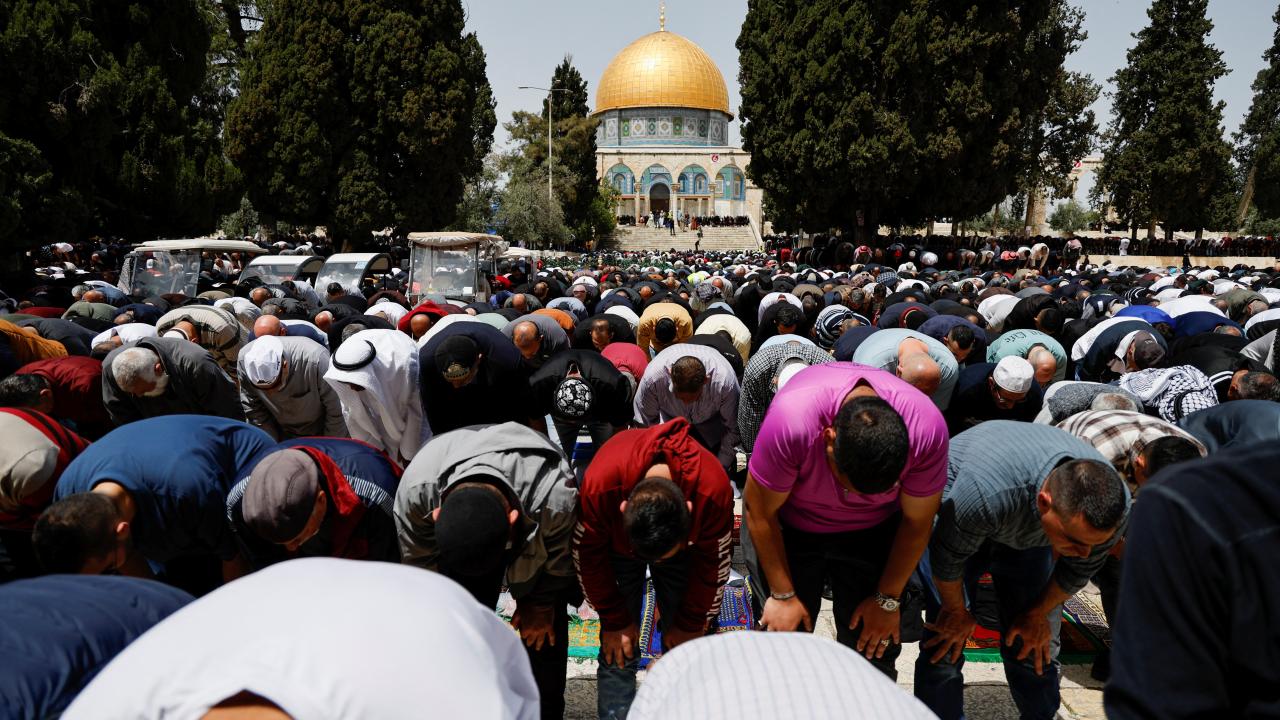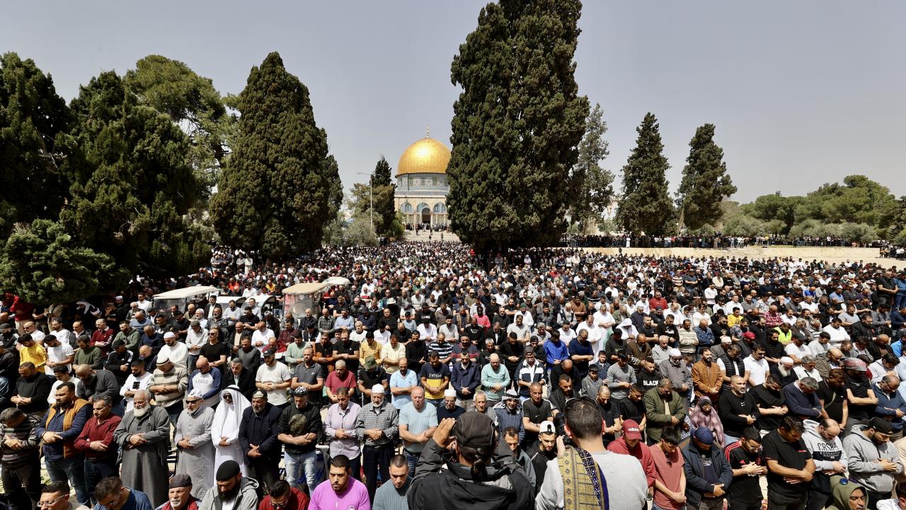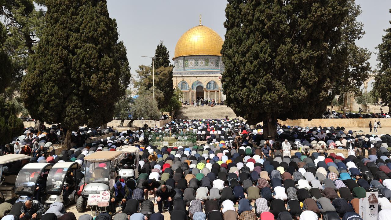 Ardından binlerce kişi, ramazan ayının üçüncü cuma namazını kılmak için Müslümanların ilk kıblesi olan Mescid-i Aksa`ya akın etti.