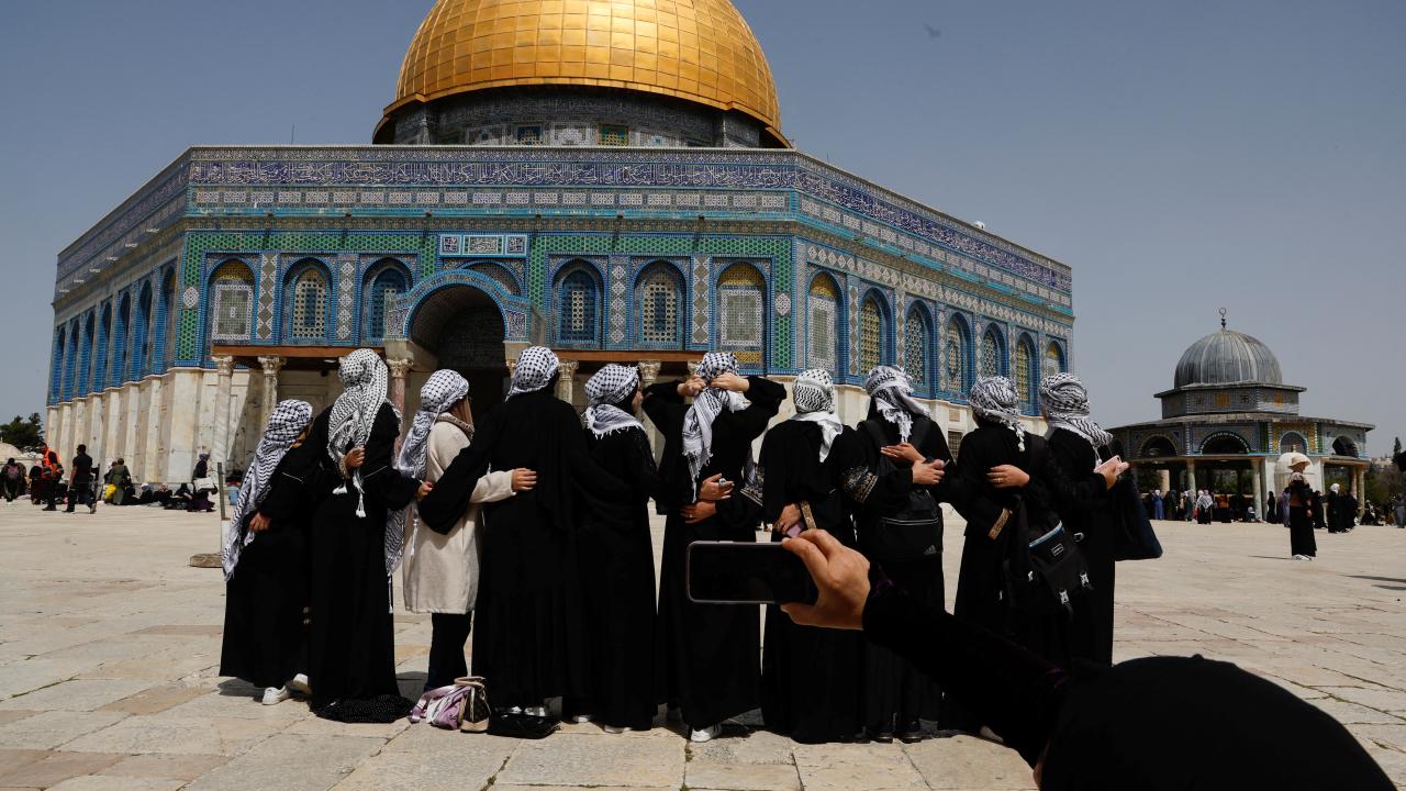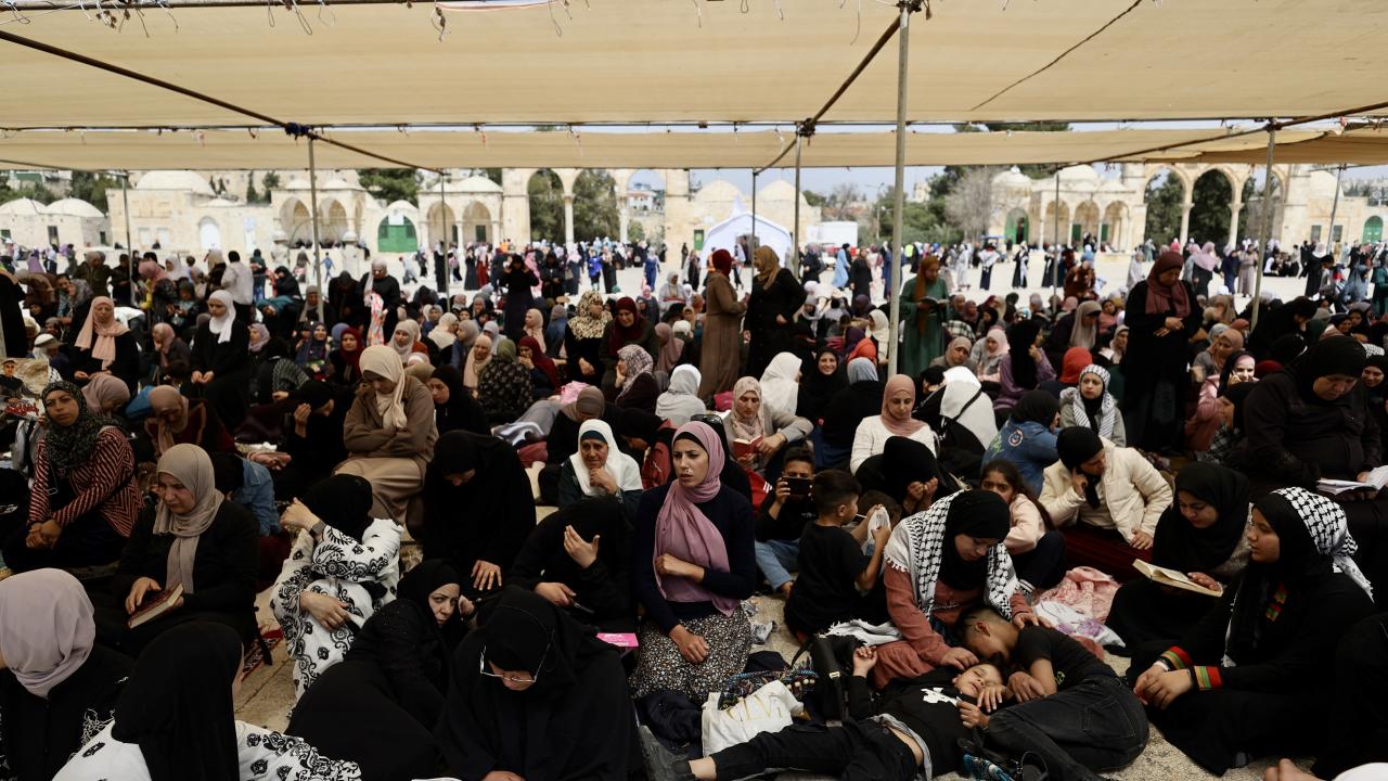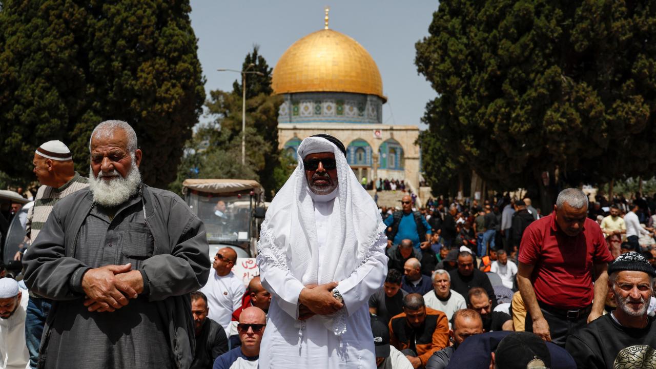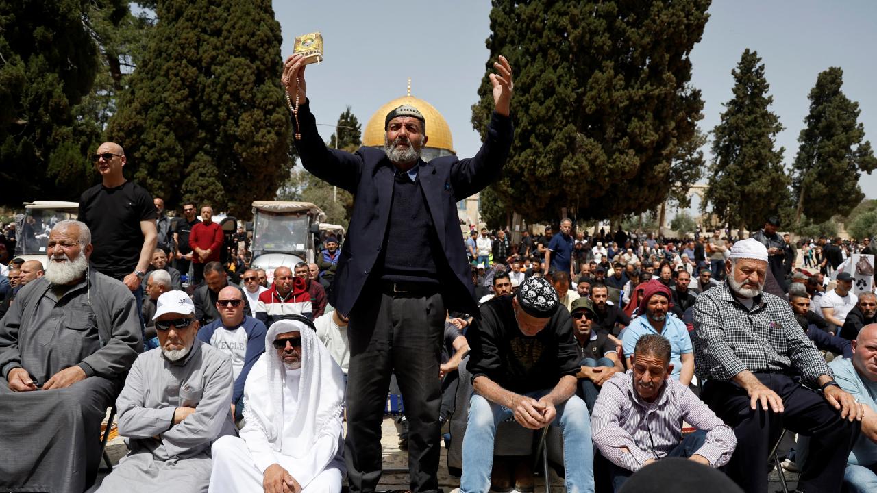 Ardından binlerce kişi, ramazan ayının üçüncü cuma namazını kılmak için Müslümanların ilk kıblesi olan Mescid-i Aksa`ya akın etti.