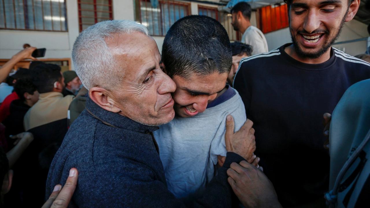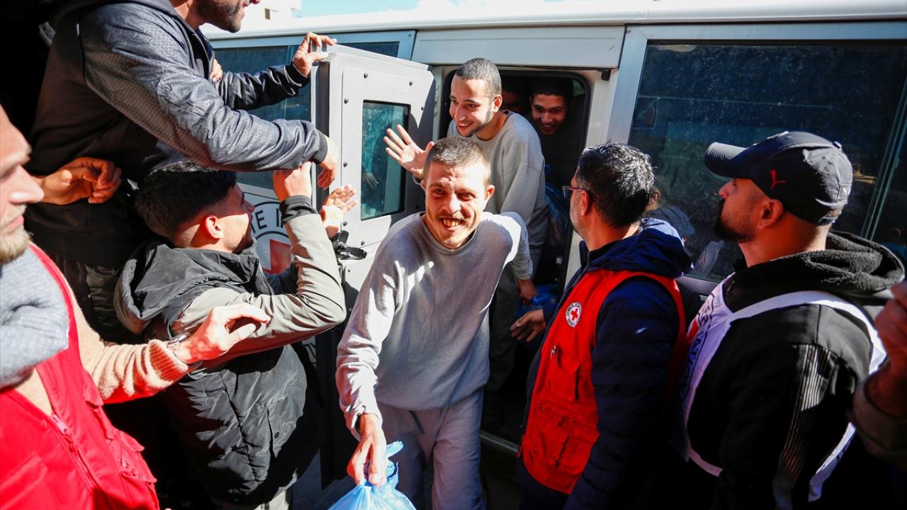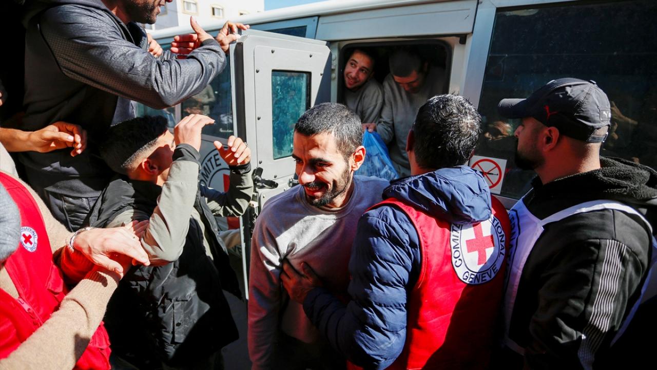 İsrail güçleri tarafından serbest bırakılan bir grup Filistinli esir, Uluslararası Kızılhaç Komitesi aracılığıyla Gazze Şeridi’nin orta kesiminde yer alan Deyr Belah’a ulaştırıldı.