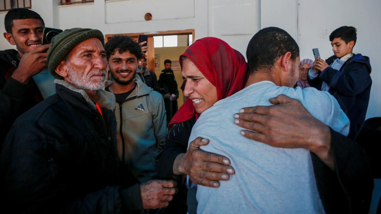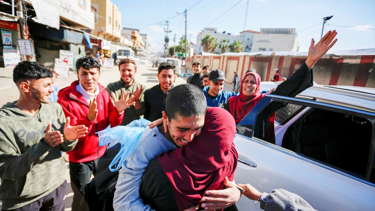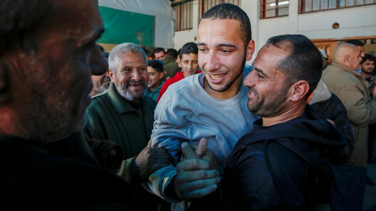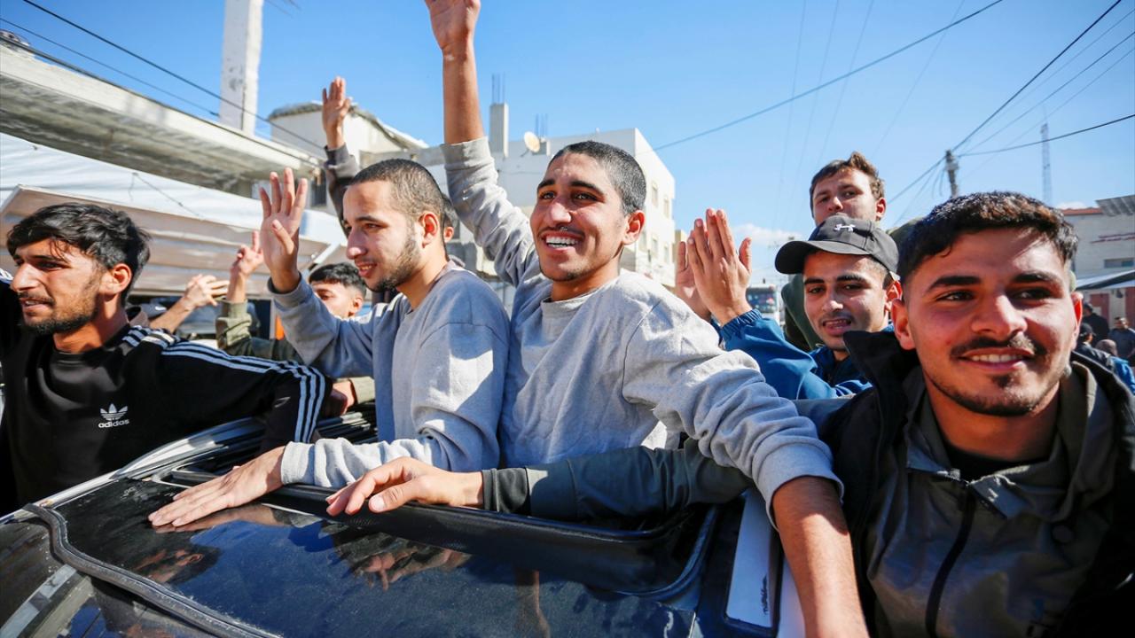 İsrail güçleri tarafından serbest bırakılan bir grup Filistinli esir, Uluslararası Kızılhaç Komitesi aracılığıyla Gazze Şeridi’nin orta kesiminde yer alan Deyr Belah’a ulaştırıldı.