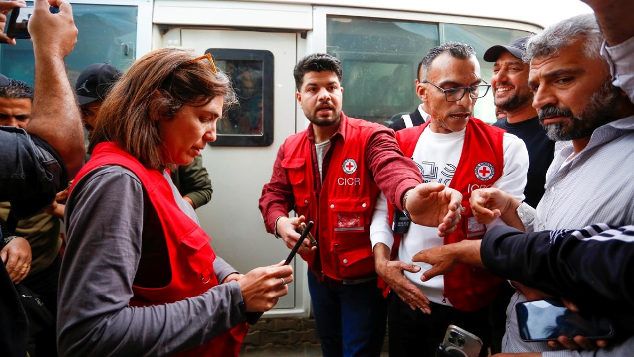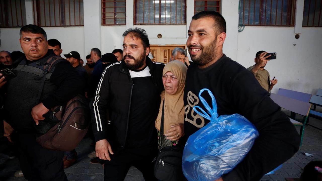 İsrail güçleri tarafından serbest bırakılan 12 Filistinli esir, Uluslararası Kızılhaç Komitesi aracılığıyla Gazze Şeridi’nin orta kesiminde yer alan Deyr Belah’a ulaştırıldı.