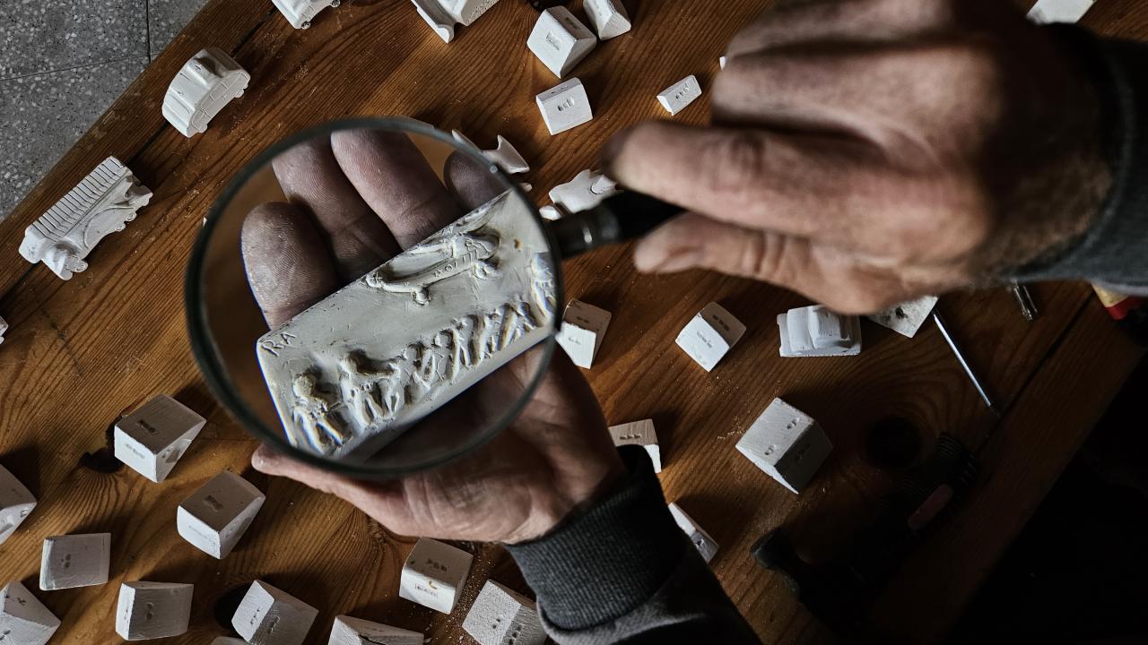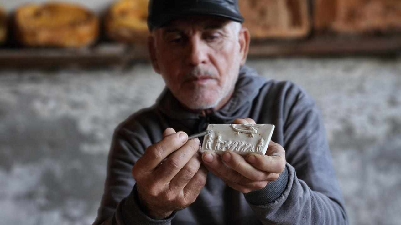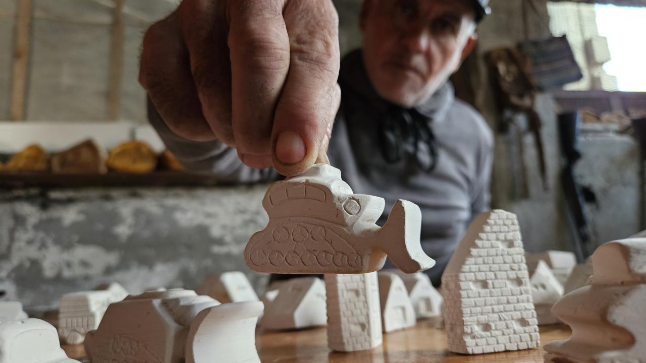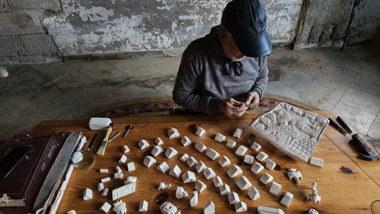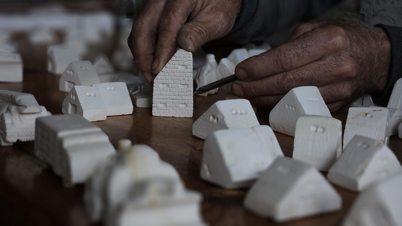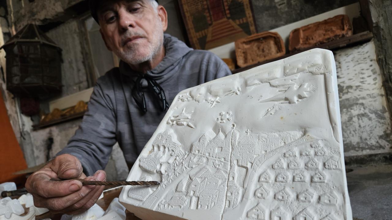 Gazze'nin güneyindeki Han Yunus kentinde yaşayan Rıdvan Ahmet, İsrail ordusunun Gazze'ye düzenlediği saldırılarda kullandığı tank, savaş uçakları ve evlerini terk ederek çadırlarda yaşayan halkın sıkıntılarını taşlara oyuyor.