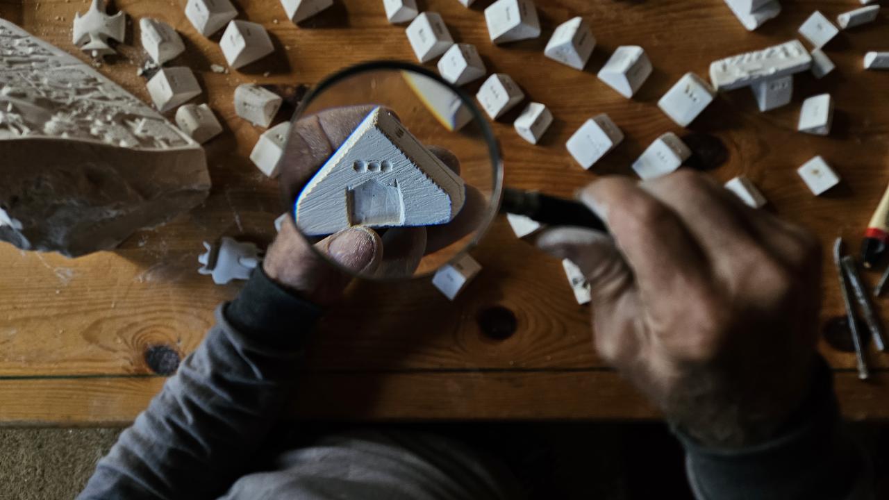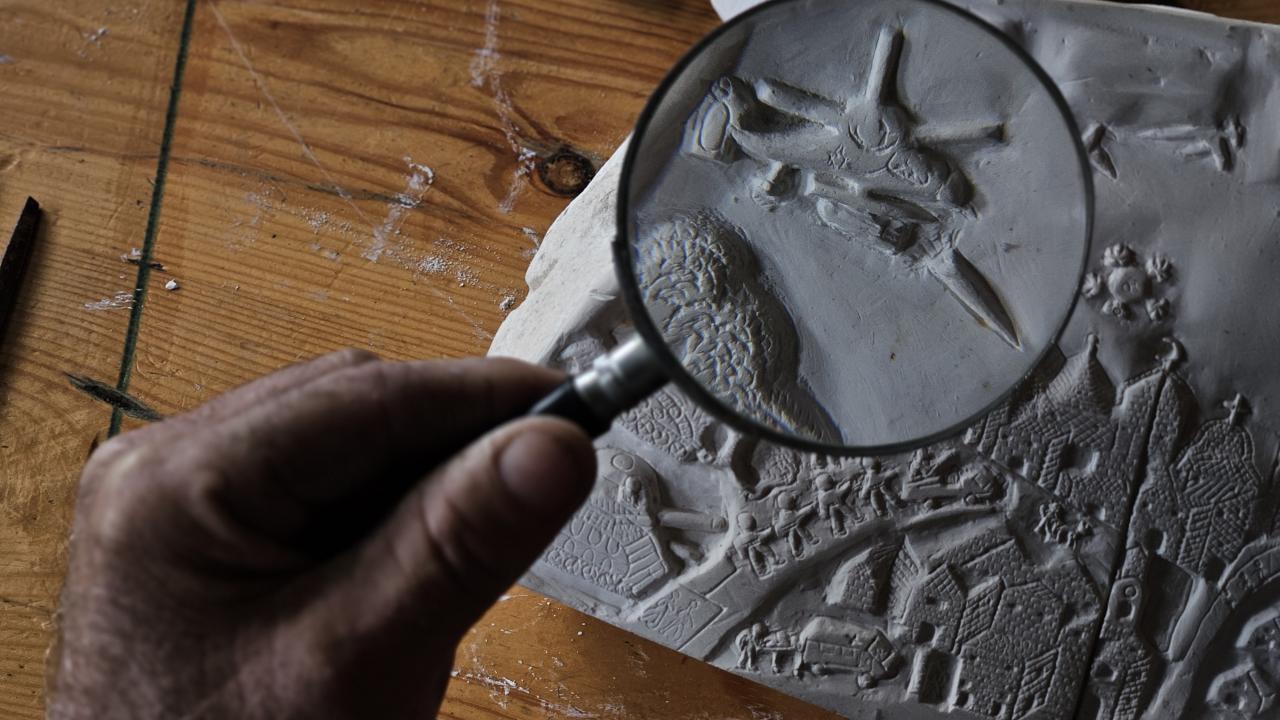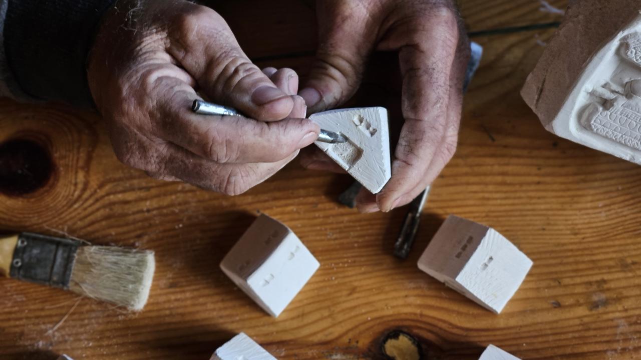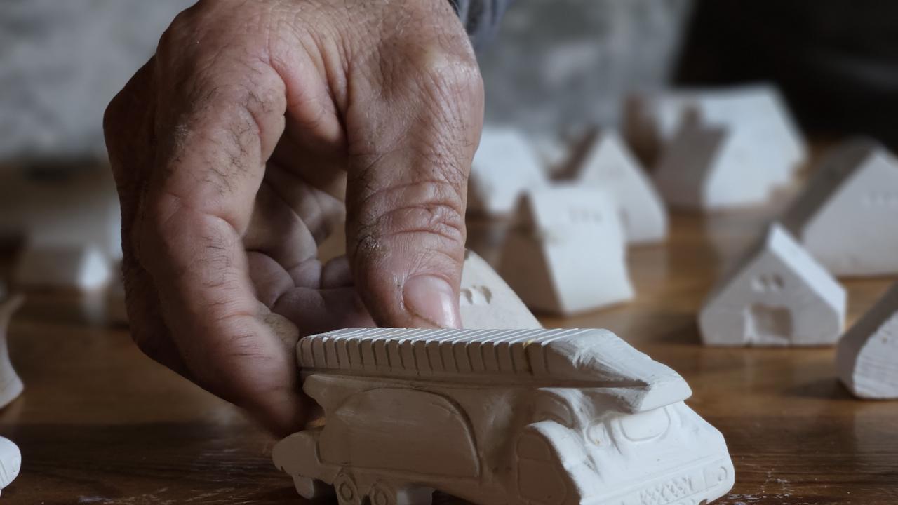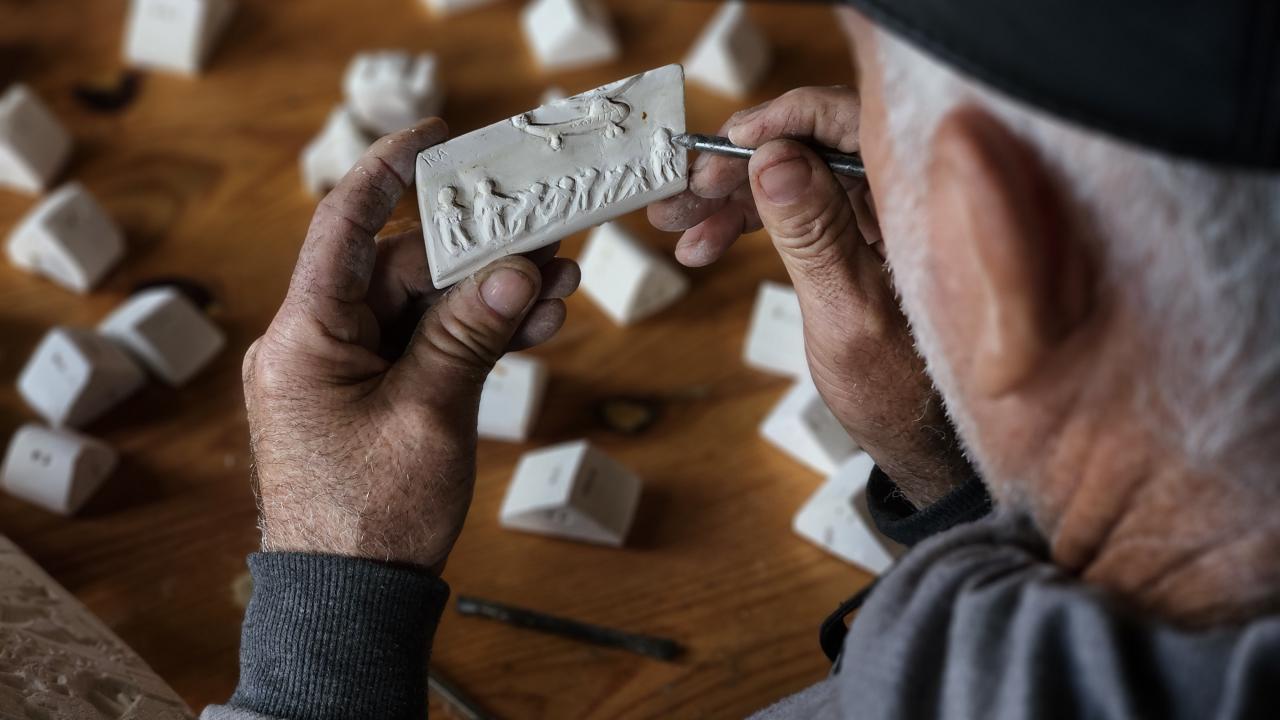 Gazze'nin güneyindeki Han Yunus kentinde yaşayan Rıdvan Ahmet, İsrail ordusunun Gazze'ye düzenlediği saldırılarda kullandığı tank, savaş uçakları ve evlerini terk ederek çadırlarda yaşayan halkın sıkıntılarını taşlara oyuyor.