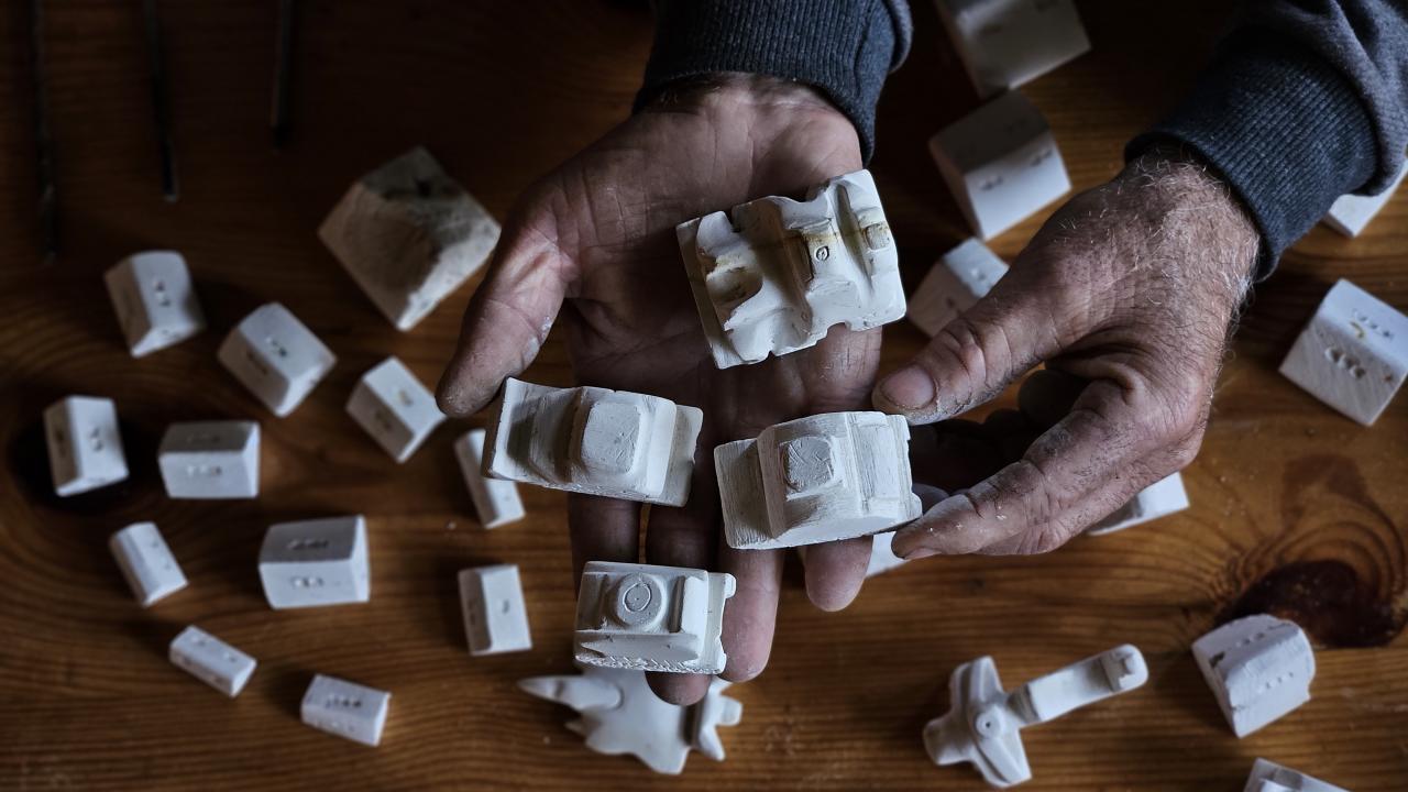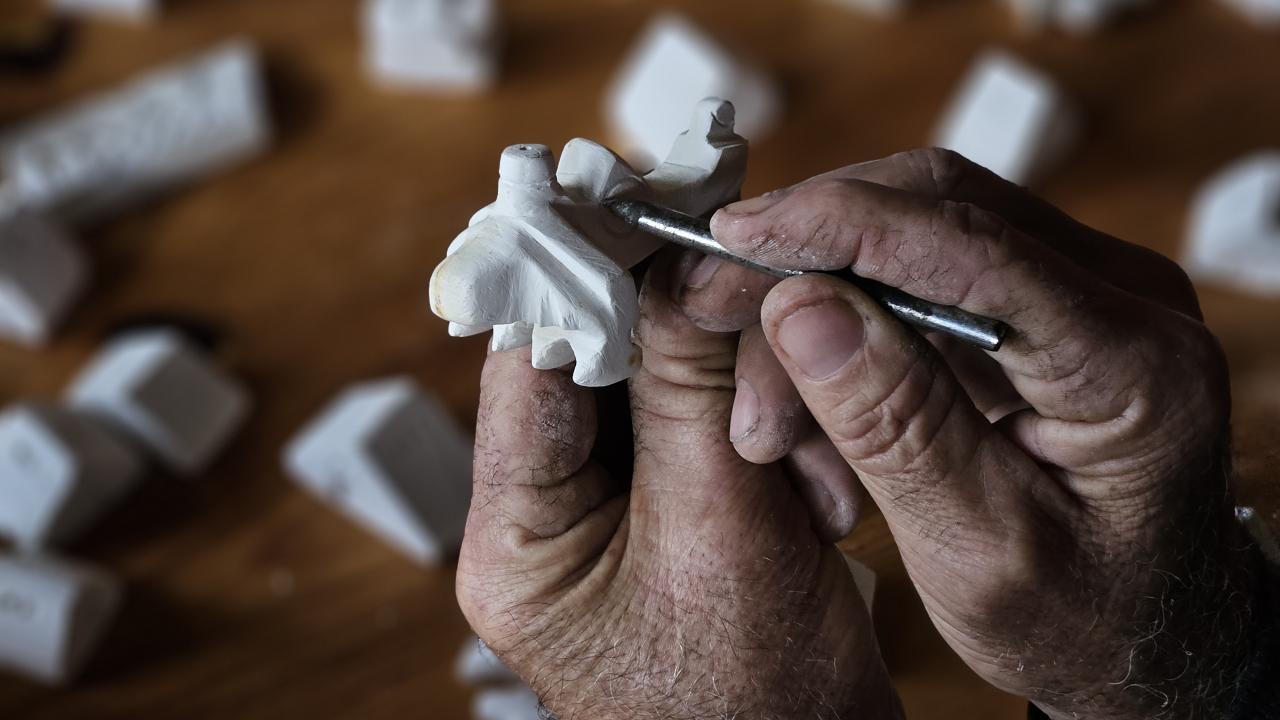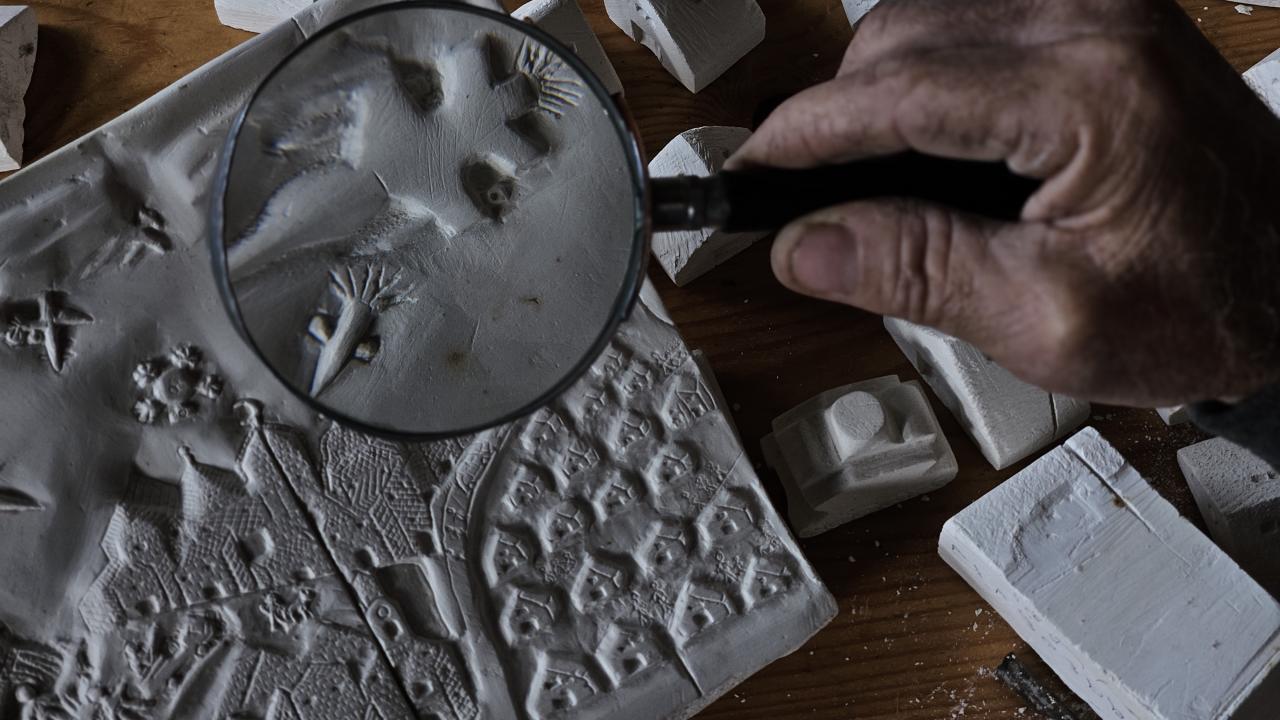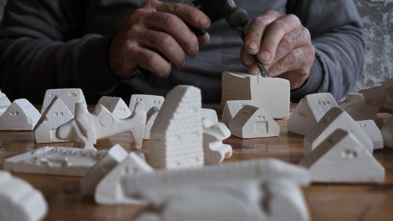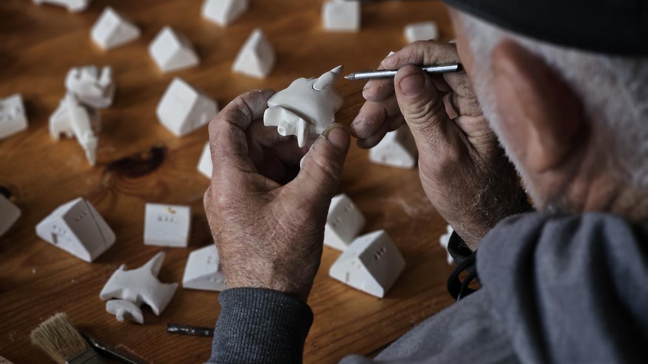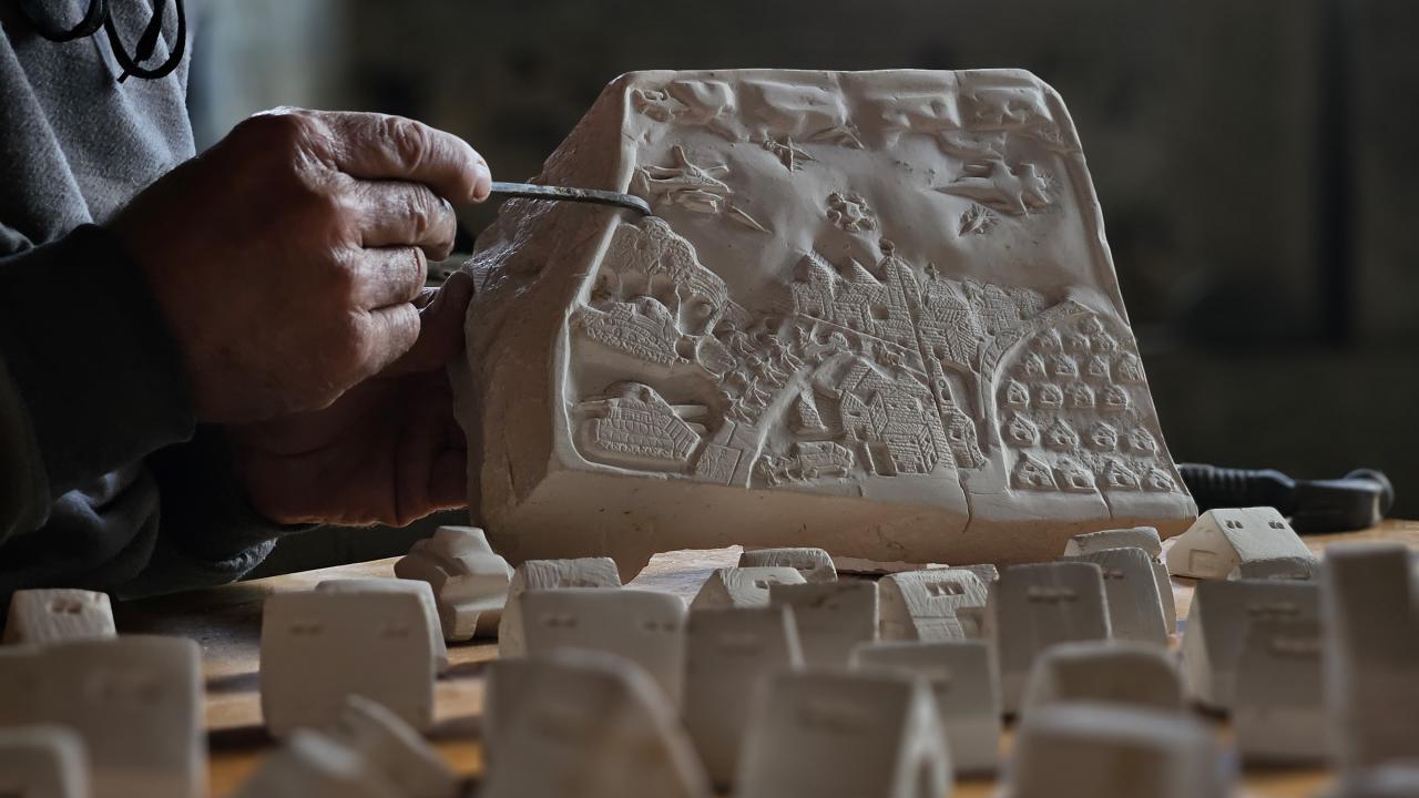 Gazze'nin güneyindeki Han Yunus kentinde yaşayan Rıdvan Ahmet, İsrail ordusunun Gazze'ye düzenlediği saldırılarda kullandığı tank, savaş uçakları ve evlerini terk ederek çadırlarda yaşayan halkın sıkıntılarını taşlara oyuyor.