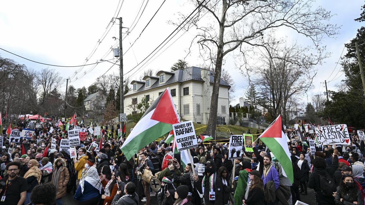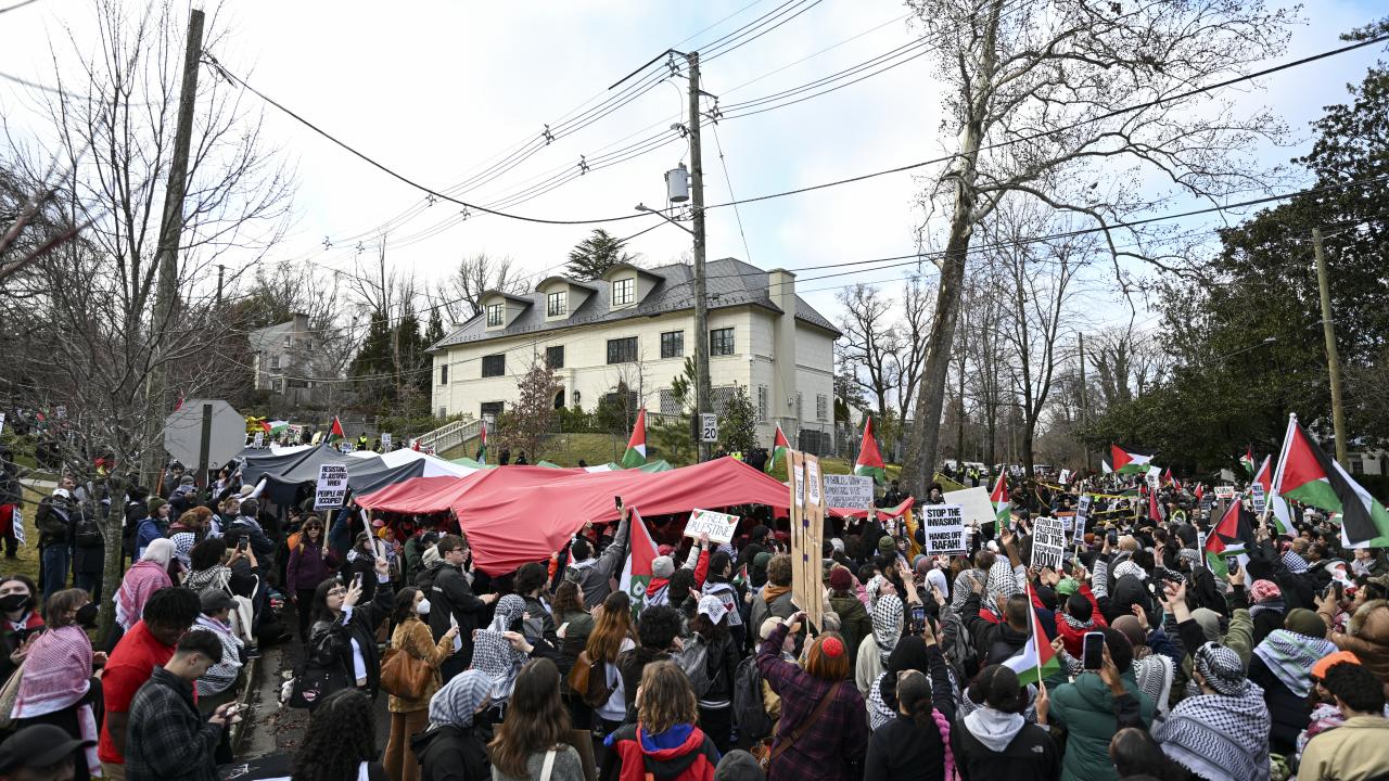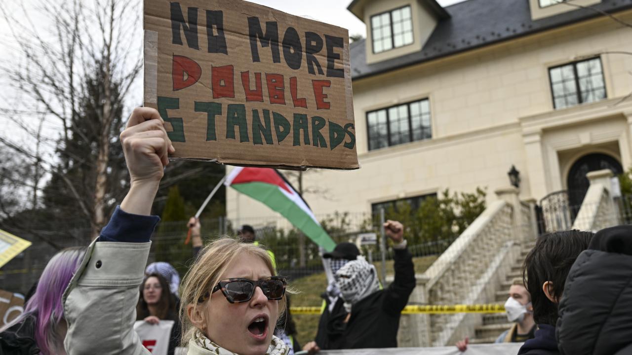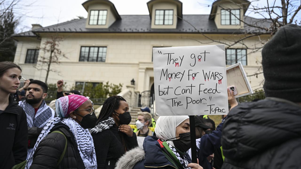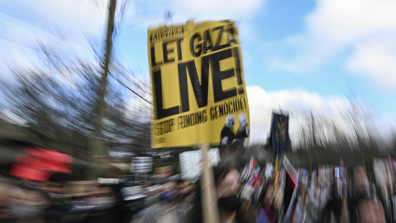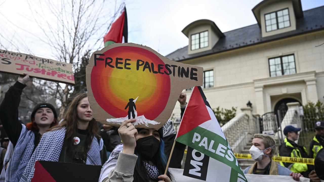 ABD askeri Aaron Bushnell'in "soykırıma ortak olmayacağını" belirterek kendini yaktığı İsrail'in Washington Büyükelçiliği binası önünde toplanan yüzlerce gösterici, İsrail'in Gazze'ye devam eden saldırılarını ve buna ABD yönetiminin verdiği desteği protesto etti.