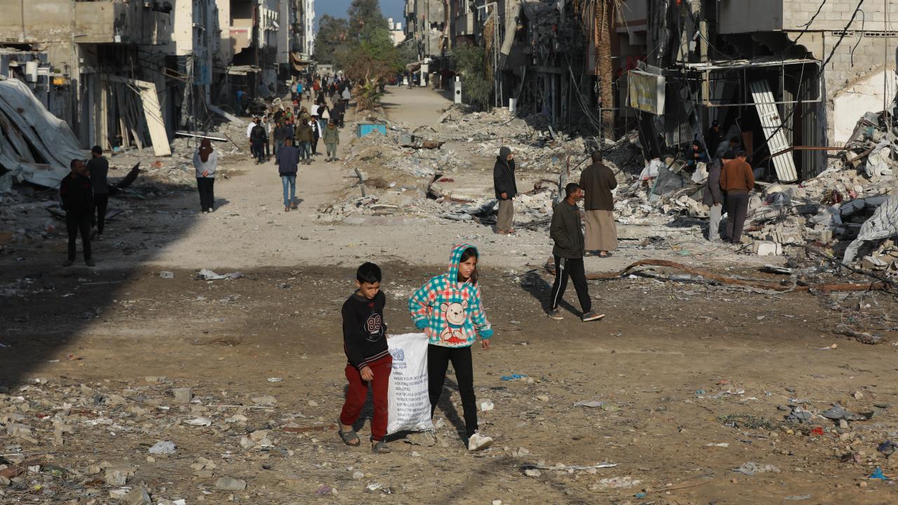 Gazze'de yerinden edilmiş Filistinlilere yemek dağıtıldı