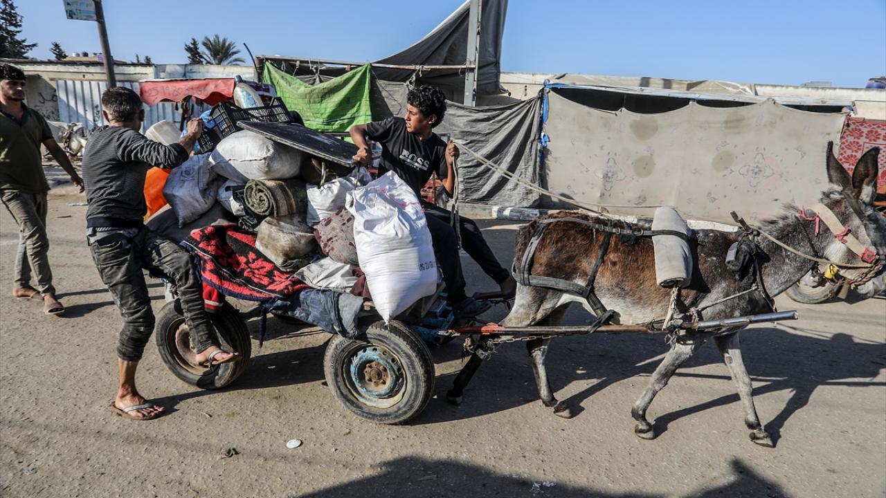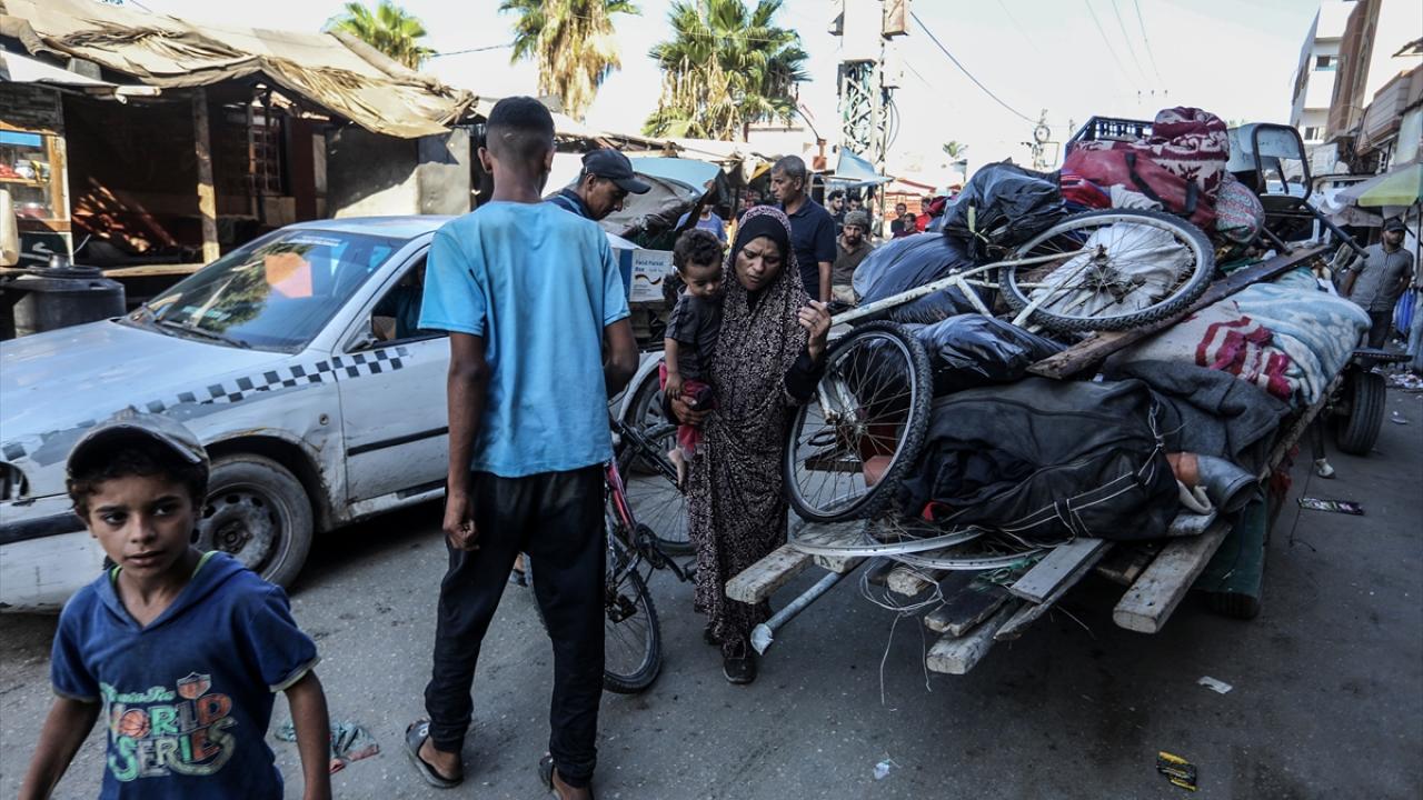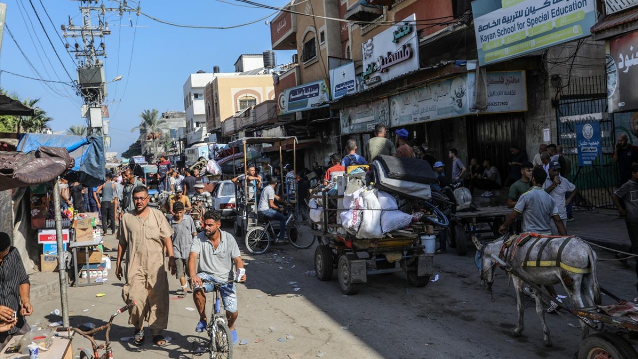 İsrail ordusunun, Gazze Şeridi’nin orta kesiminde yer alan Deyr Belah kentindeki Vakıflar Bakanlığı'na bağlı Dawa Fakültesi'nin boşaltılması çağrısının ardından bazı Filistinliler, yanlarına aldıkları eşyalarla güvenli olduğunu düşündükleri bölgelere doğru göç etmeye başladı.