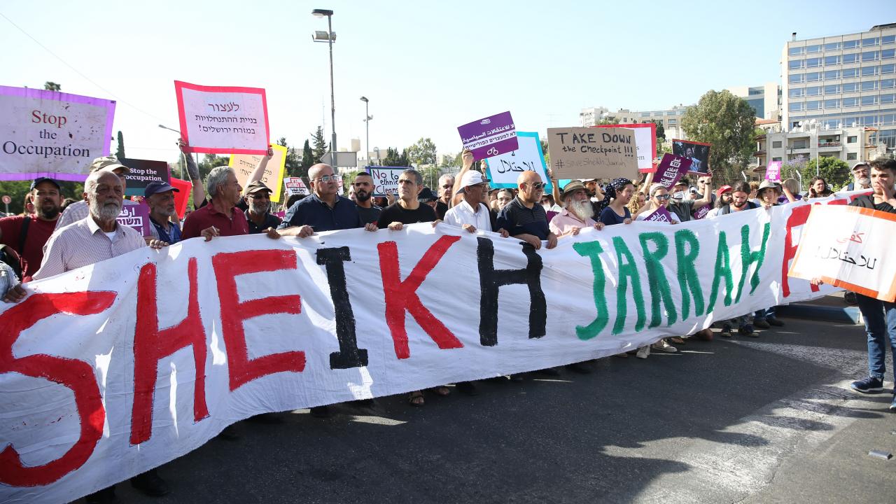 Kudüs'ün Şeyh Cerrah Mahallesi'ndeki Filistinliler, kaybetme riskiyle karşı karşıya oldukları evlerini korumak için mücadelelerini sürdürüyor. Bir grup İsrailli aktivist ise yerlerinden edilmek istenen Filistinlilerin yanında olduklarını göstermek için gösteri düzenledi.