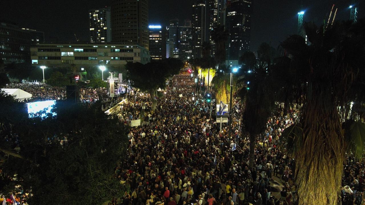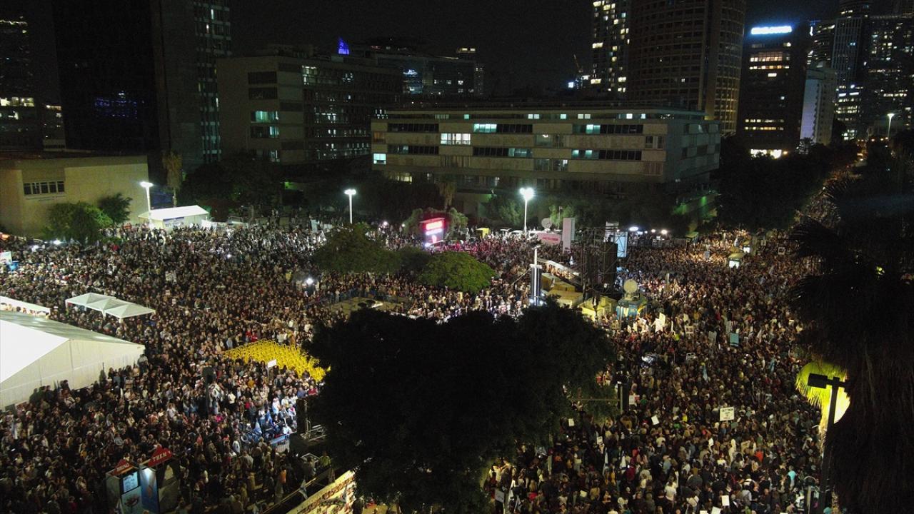 İsrailliler, Hamas'ın elindeki esirlerin serbest bırakılması talebiyle Tel Aviv'de gösteri düzenledi.