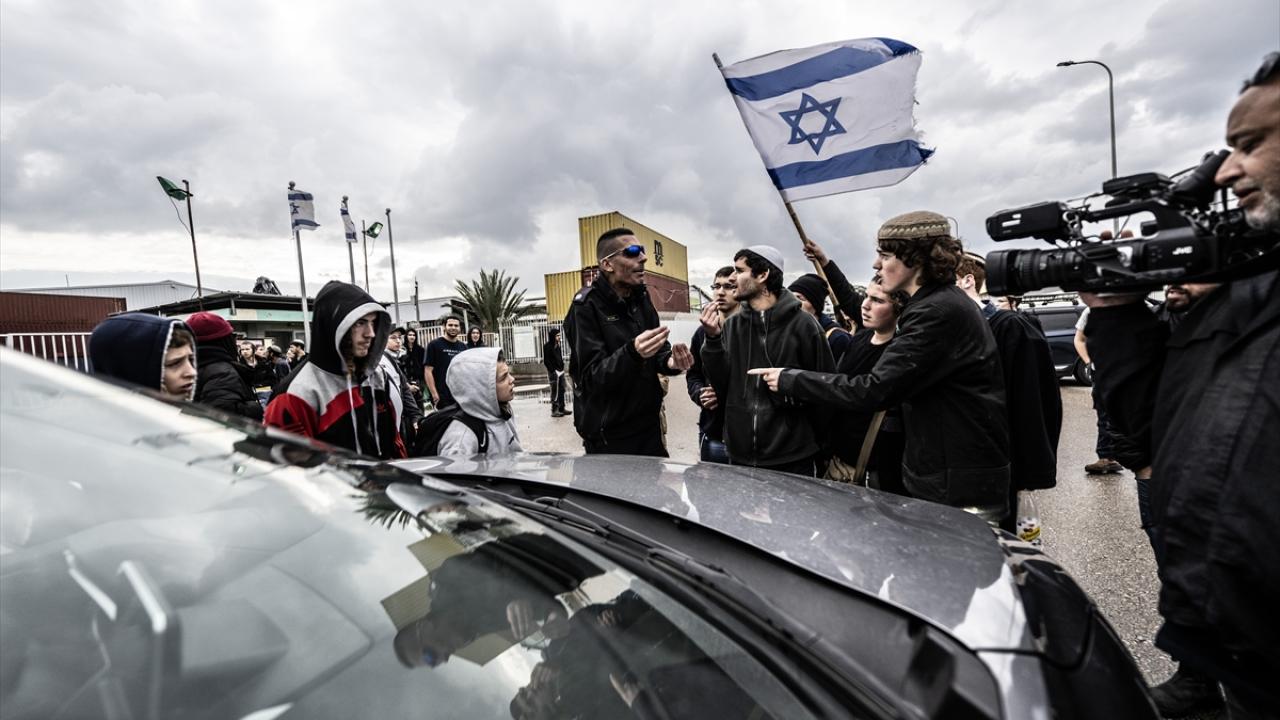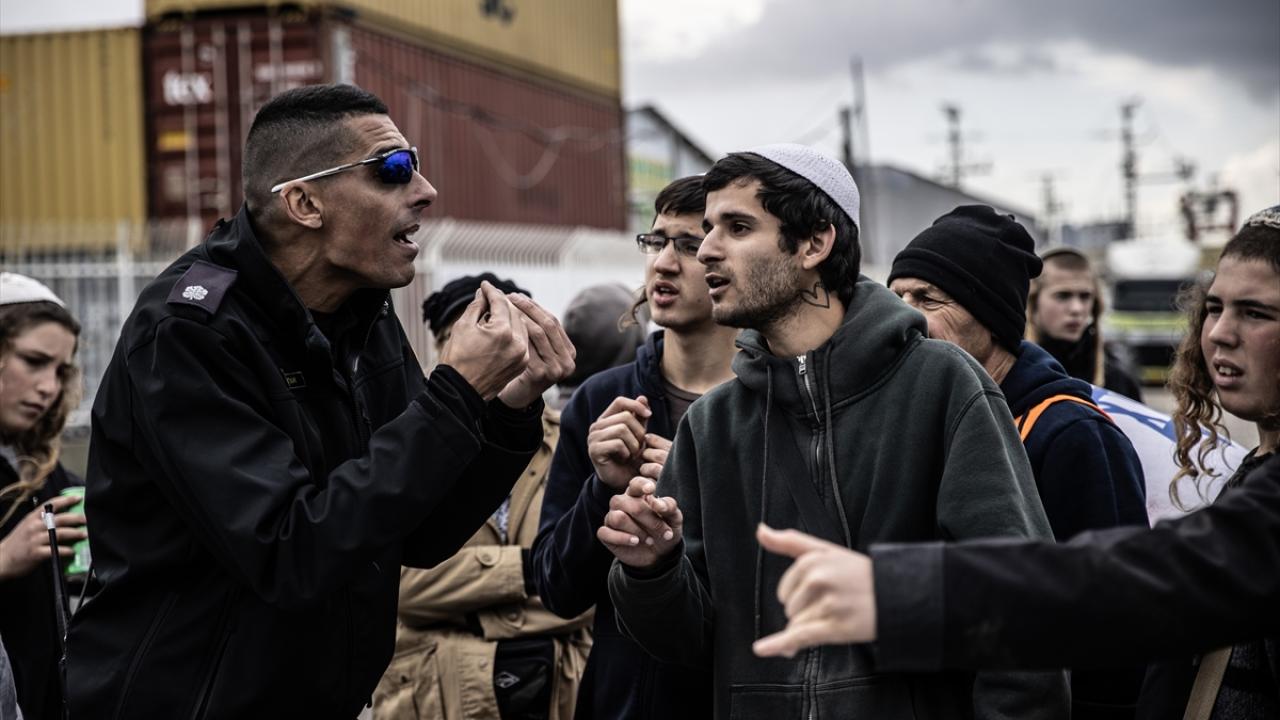 Yol üzerinde demir bariyerler kurarak konuşlanan ancak göstericilere müdahale etmeyen İsrail polisi ve göstericiler arasında zaman zaman tartışma yaşandı.