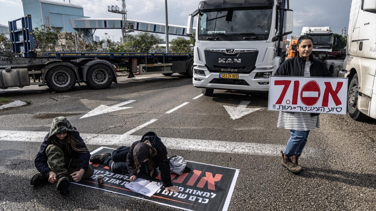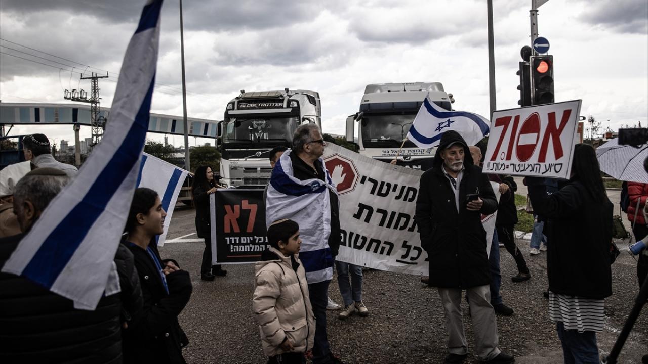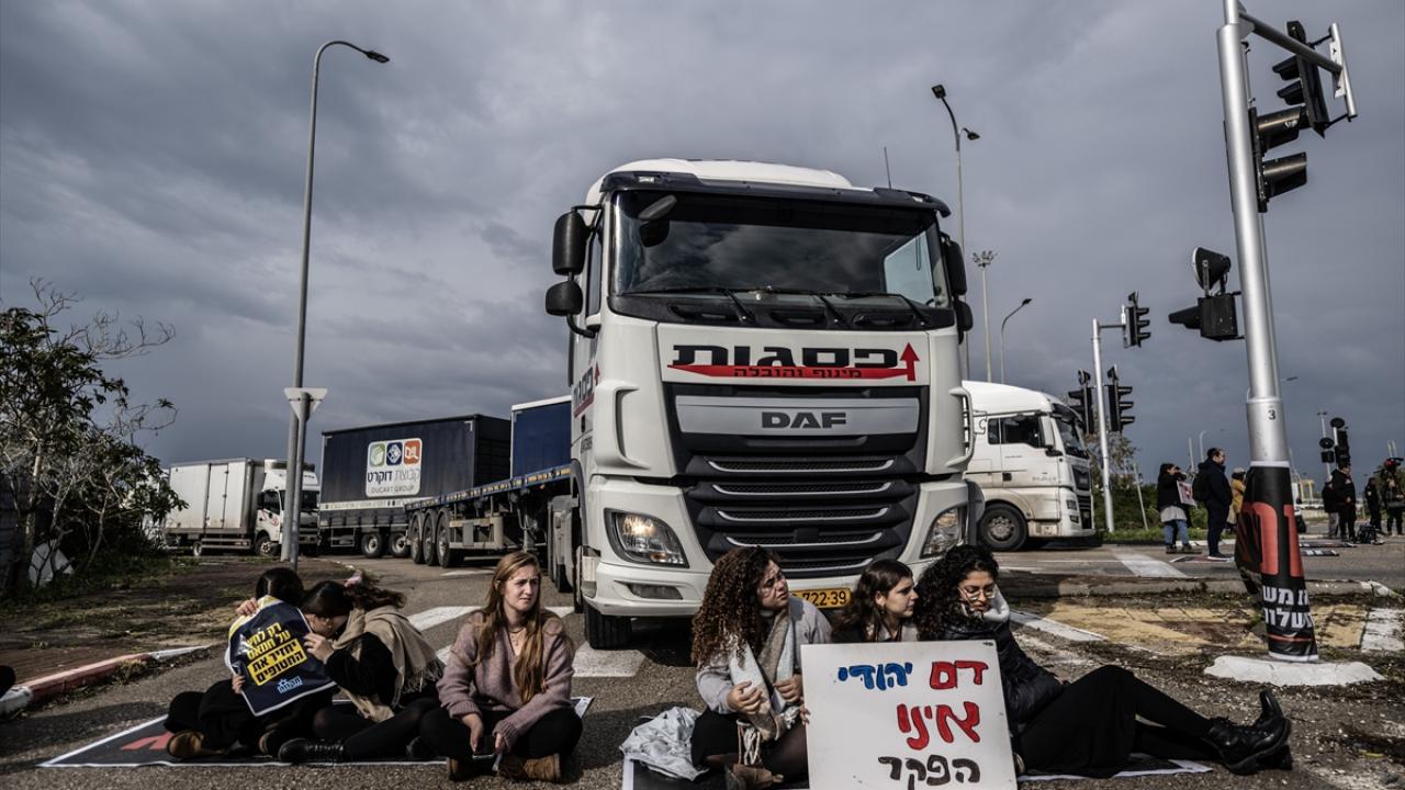 Yüzlerce İsrailli işgalci, İsrail'in saldırılarıyla felaketin her gün derinleştiği, Gazze Şeridi'ne gönderilen insani yardımları engellemek amacıyla eylem yaptı.
