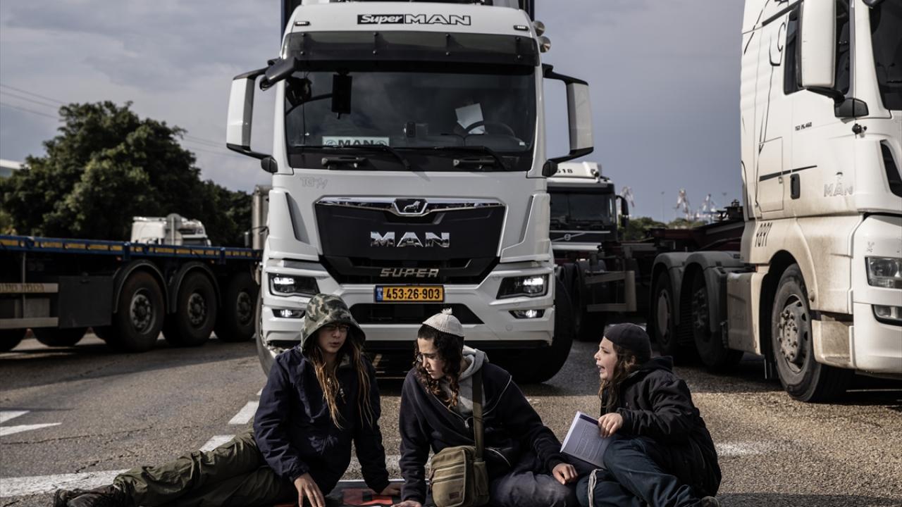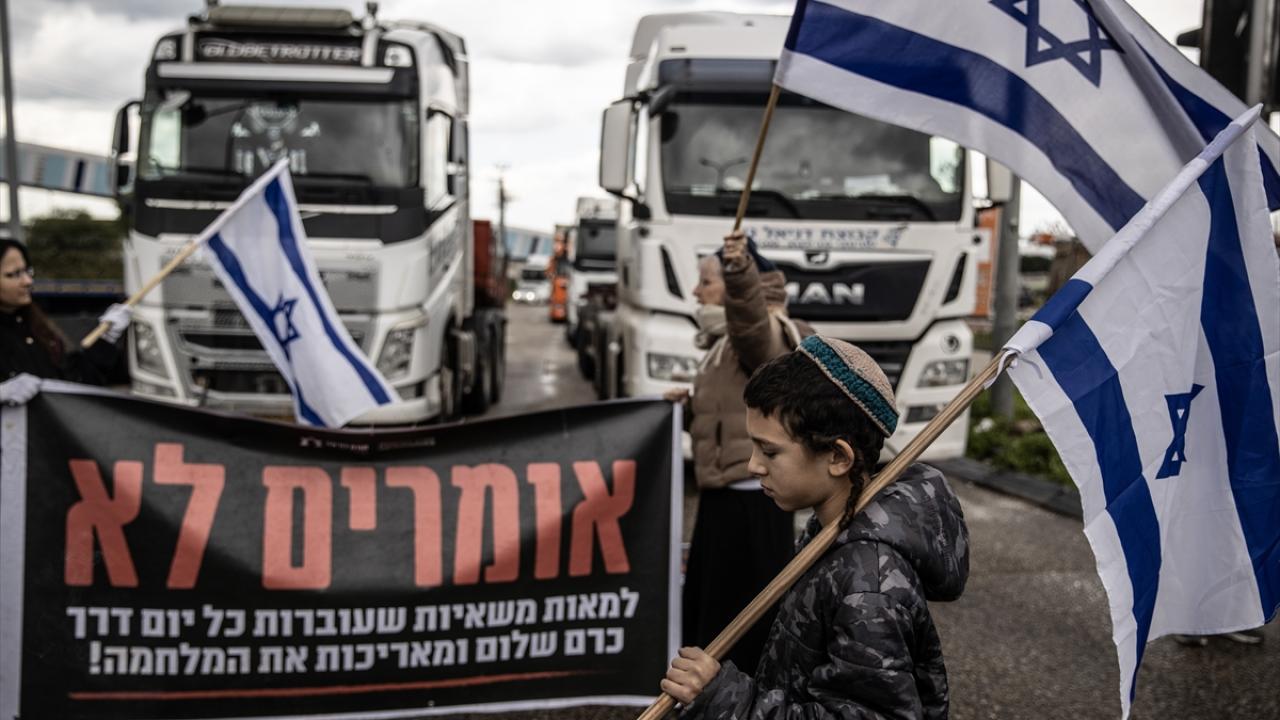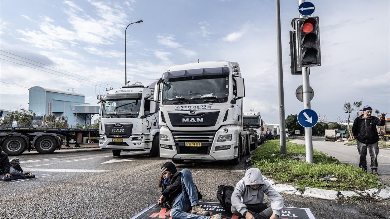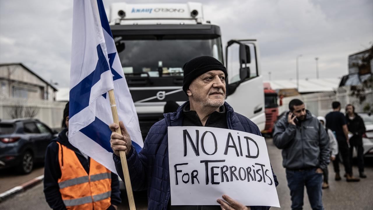Yüzlerce İsrailli işgalci, İsrail'in saldırılarıyla felaketin her gün derinleştiği, Gazze Şeridi'ne gönderilen insani yardımları engellemek amacıyla eylem yaptı.