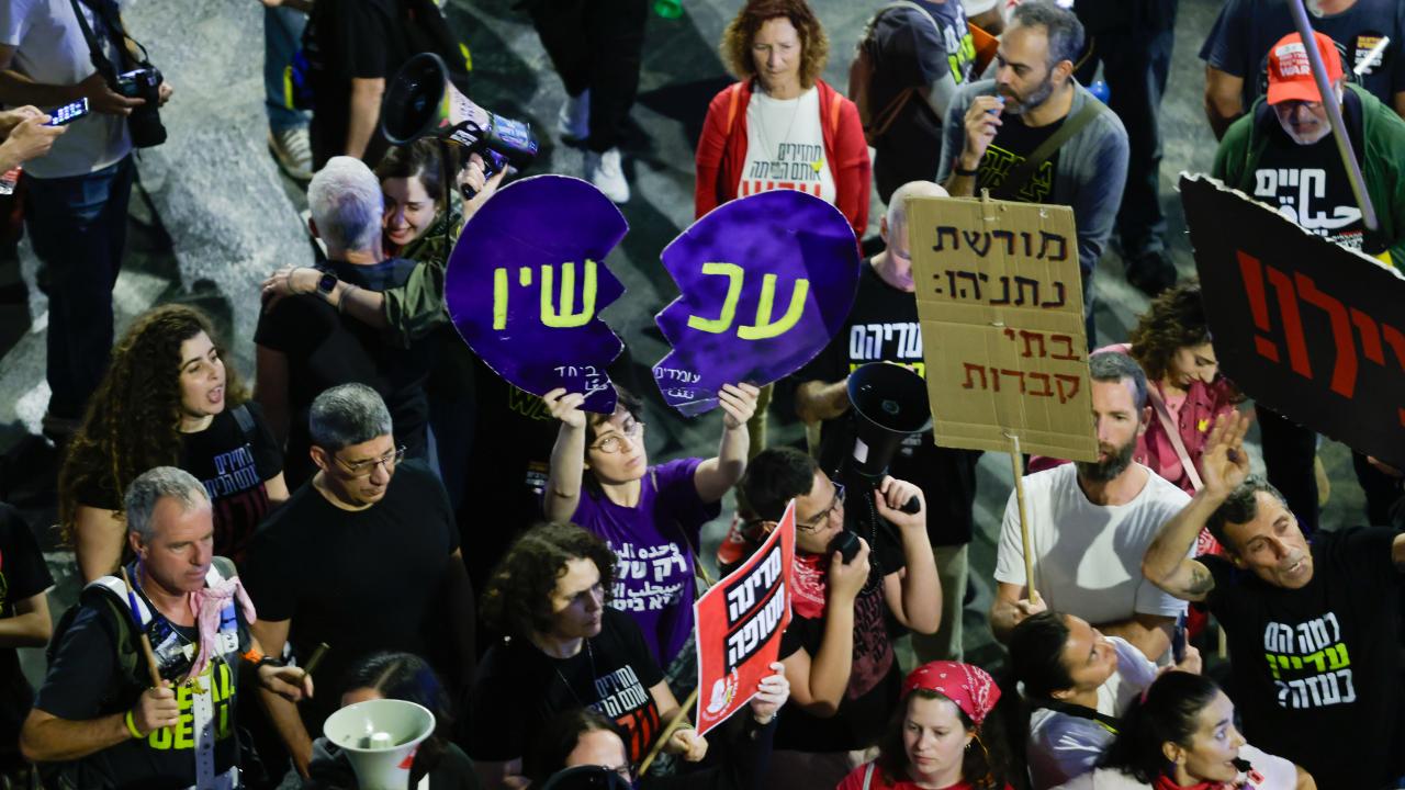 İsrail'in Tel Aviv kentinde toplanan yüzlerce kişi, Gazze'de ateşkesin sağlanması ve İsrailli esirlerin geri getirilmesi talebiyle gösteri düzenledi. Göstericiler, ellerinde esirlerin fotoğrafları, İsrail bayrakları ve hükümet karşıtı dövizler taşıdı.