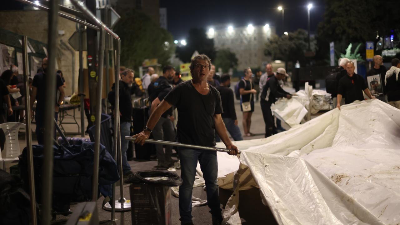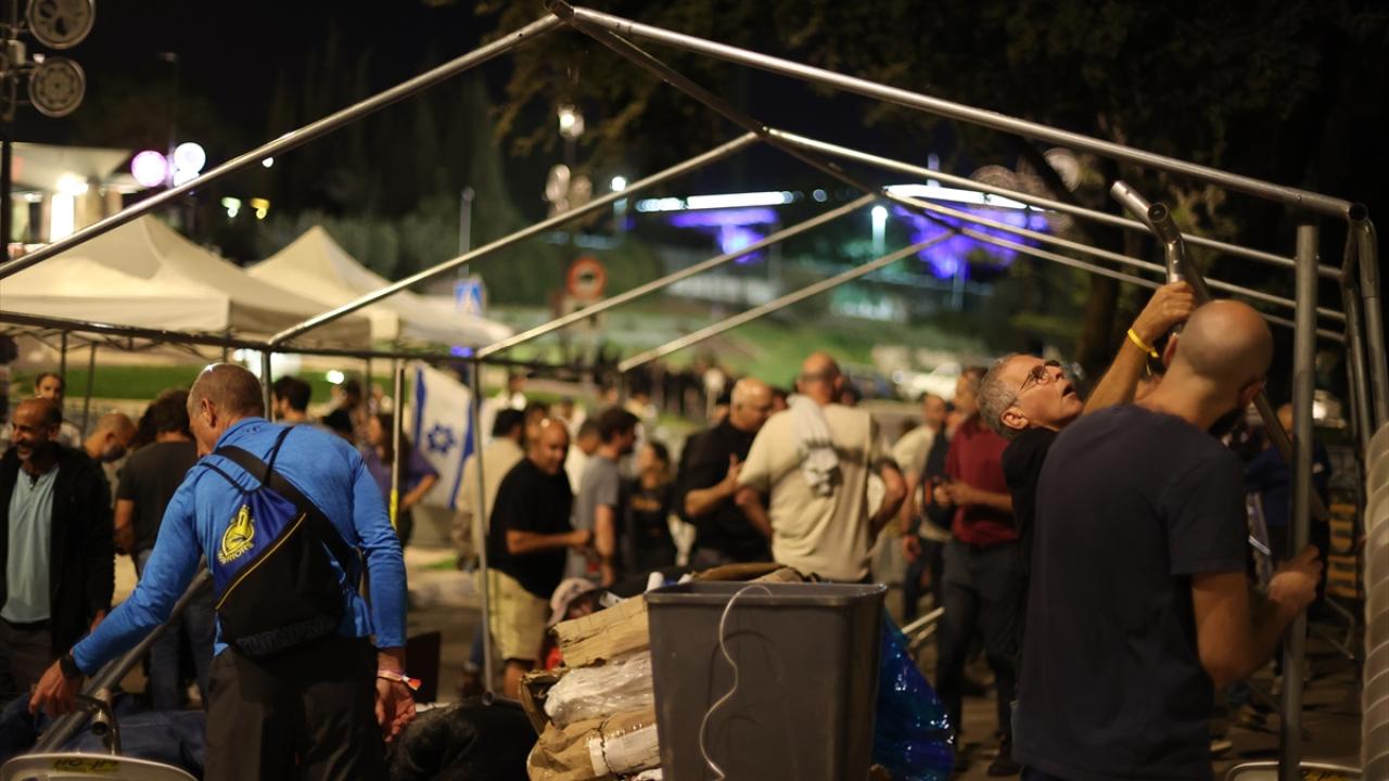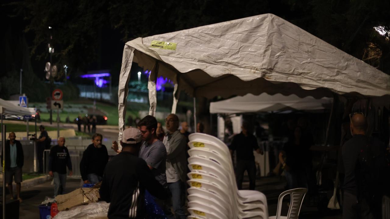 İsrailli aktivistler, yatakları, çubukları, brandaları taşıyarak bölgede tenteli bir çadır hazırladı. İsrail polisi ise Meclise çıkan yoldaki demir bariyerlerin arkasında güvenlik önlemi aldı. Bölgeye getirilen bir TOMA daha sonra alandan ayrıldı.
