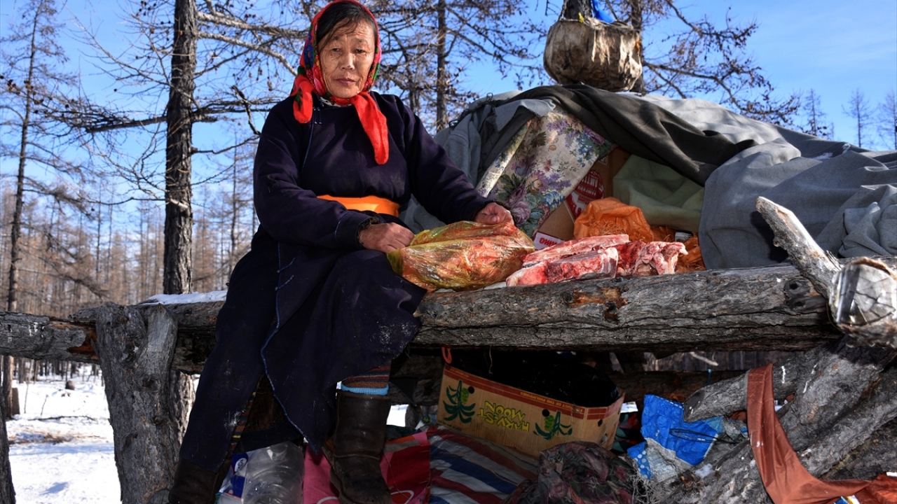 Duha Türkleri, kış aylarında yiyeceklerini evlerinin yakınında yerden yüksekte kurdukları "doğal buzdolabında" saklıyor.