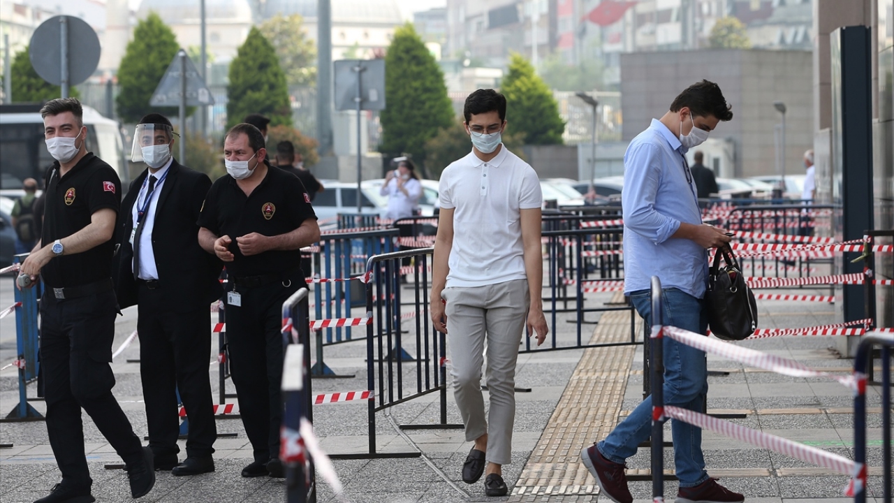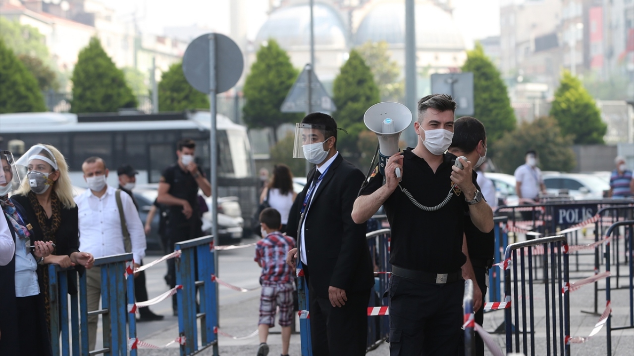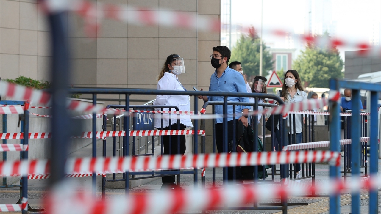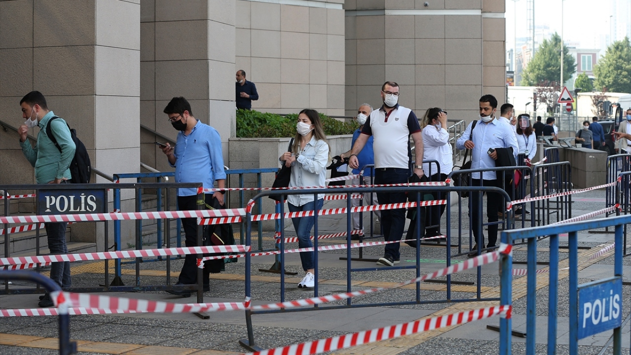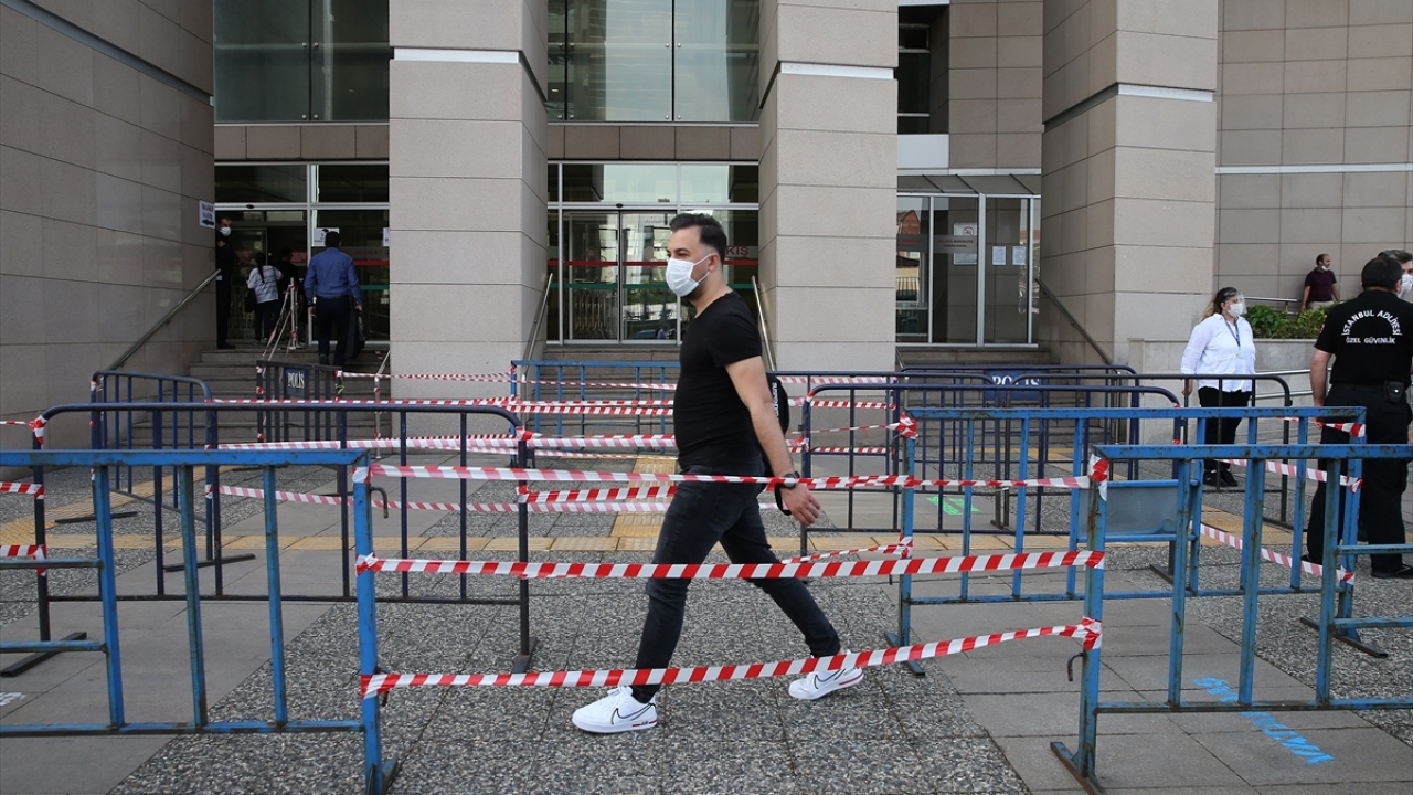 Yeni tip koronavirüs (Covid-19) salgını tedbirleri kapsamında tutuklu ve acil dışındaki işlemlere verilen aranın sona ermesi ve duruşmaların görülmesine başlanmasıyla Çağlayan'daki İstanbul Adalet Sarayı'nda alınan önlemler dikkat çekti.