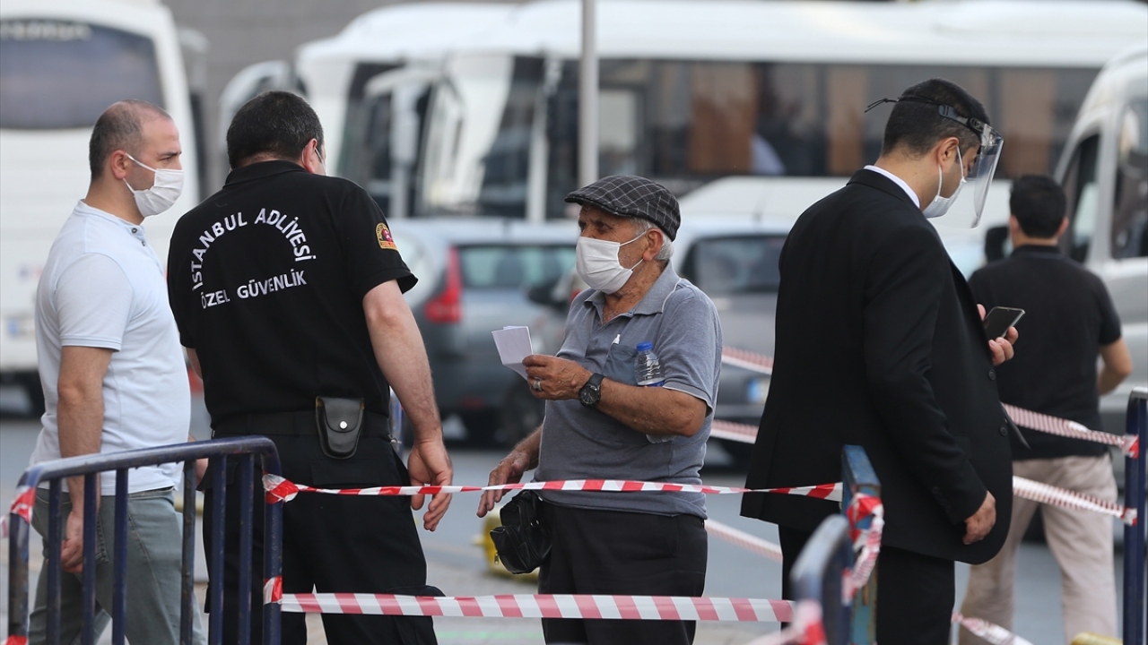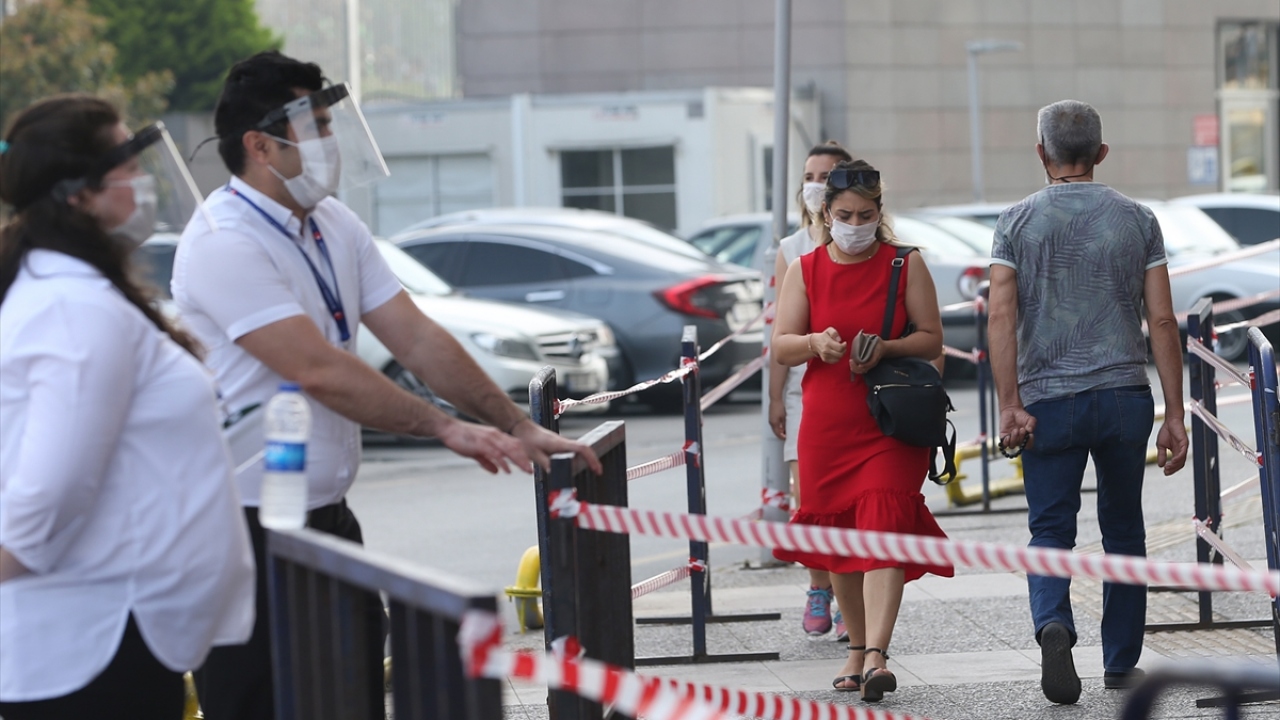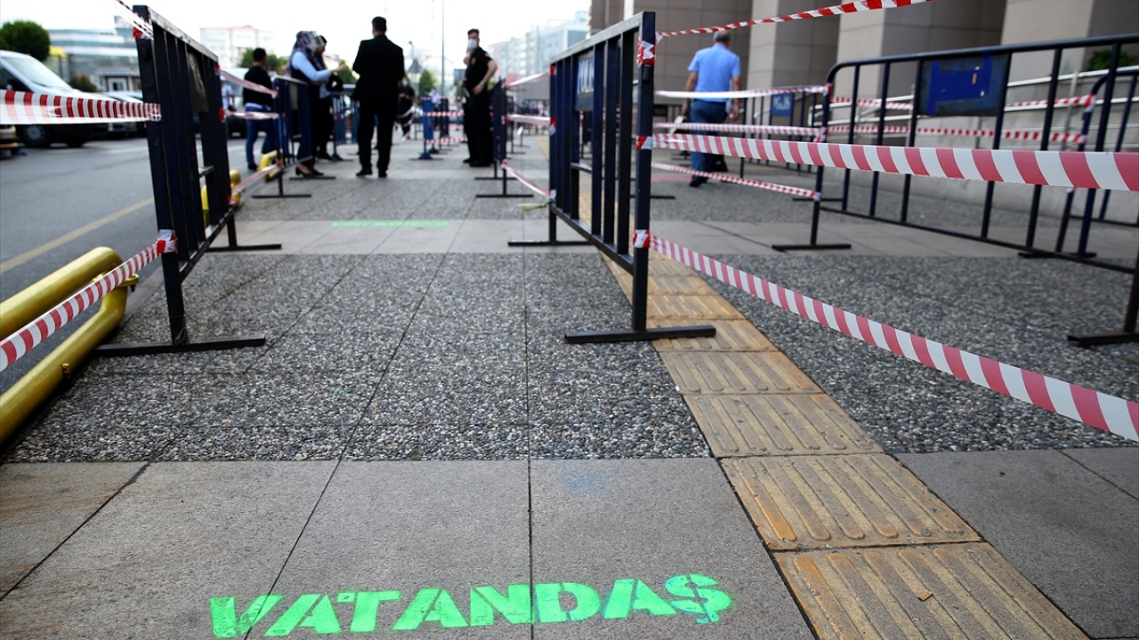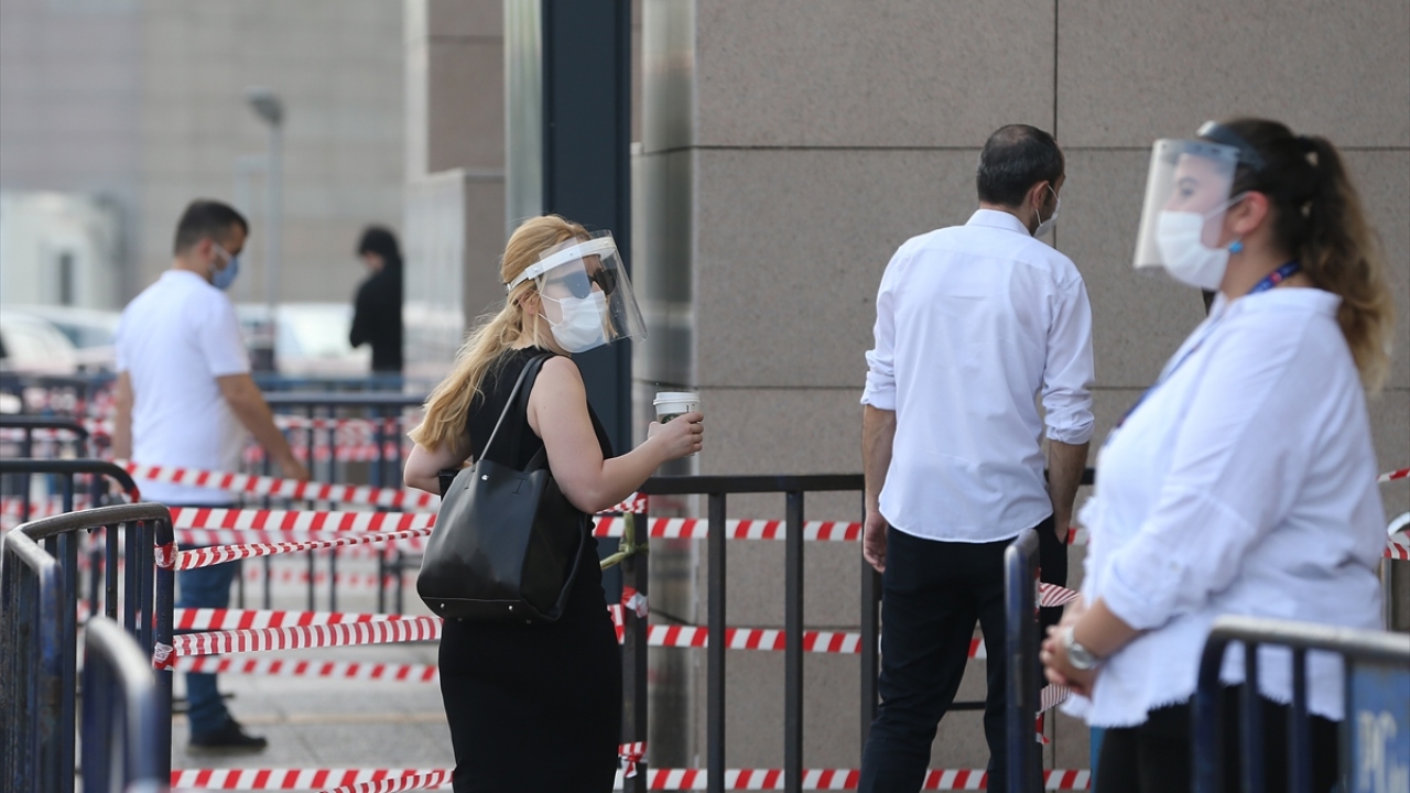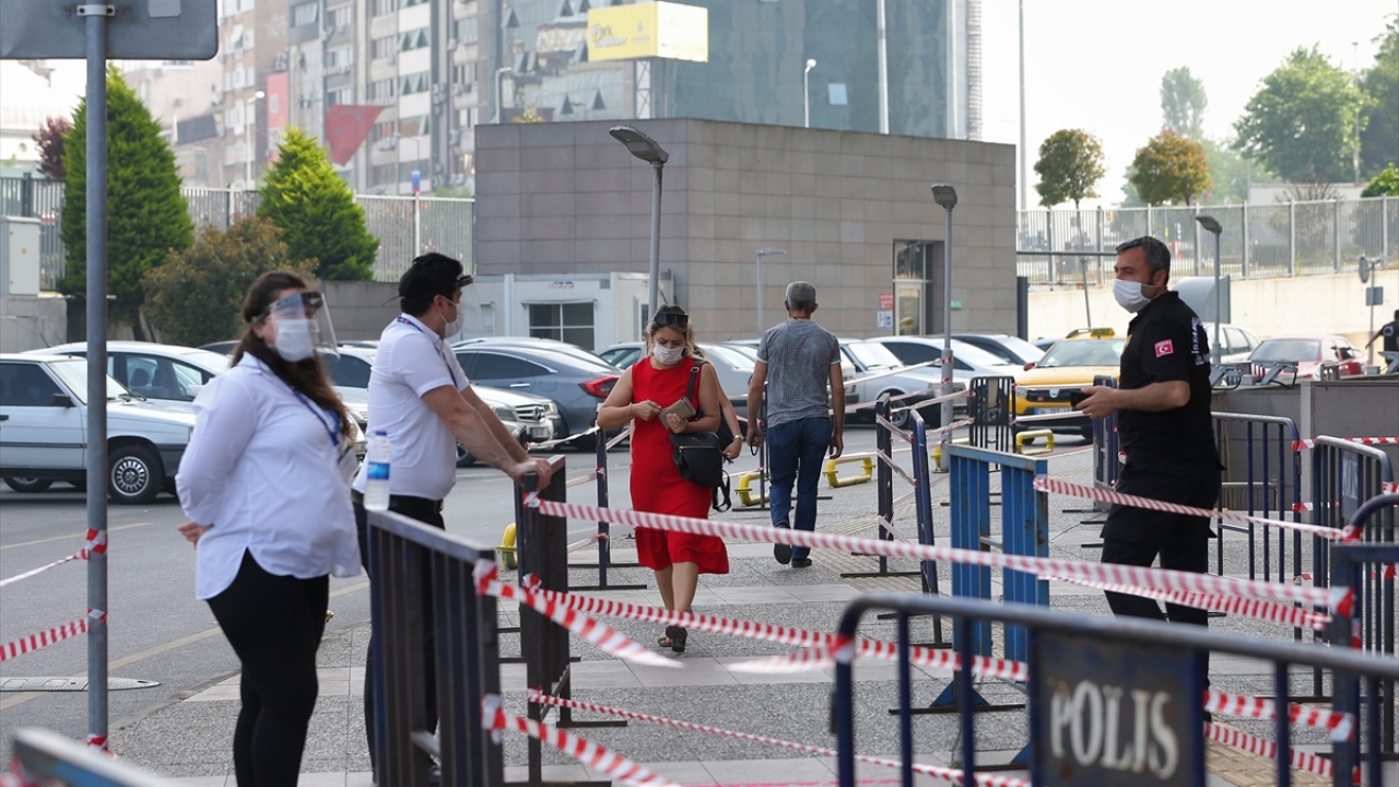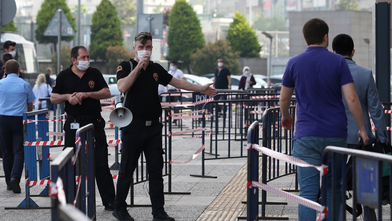 Yeni tip koronavirüs (Covid-19) salgını tedbirleri kapsamında tutuklu ve acil dışındaki işlemlere verilen aranın sona ermesi ve duruşmaların görülmesine başlanmasıyla Çağlayan'daki İstanbul Adalet Sarayı'nda alınan önlemler dikkat çekti.