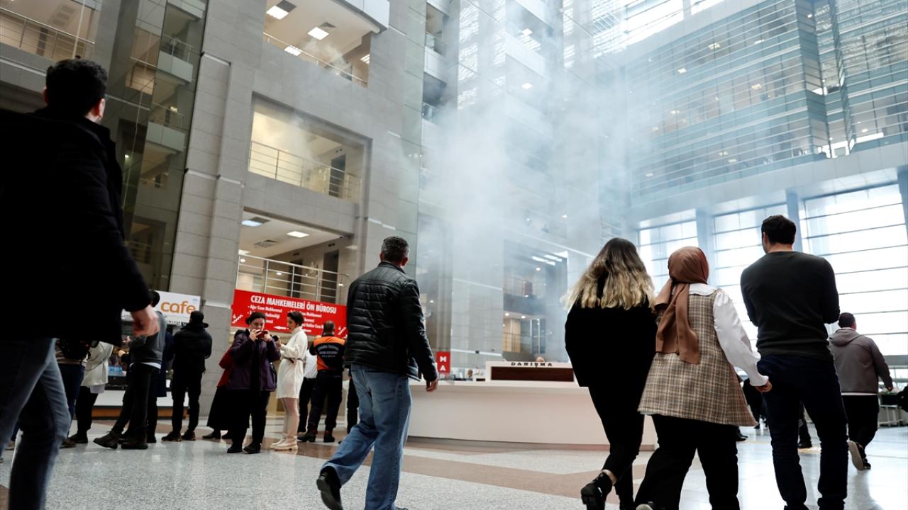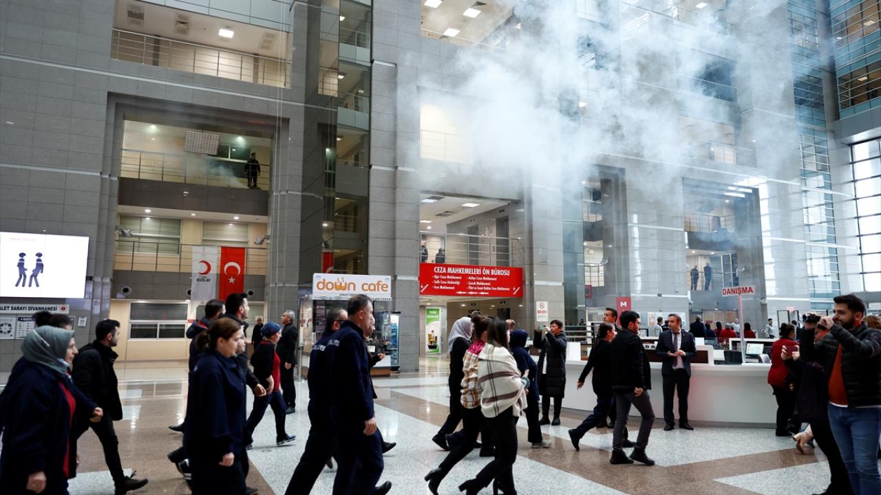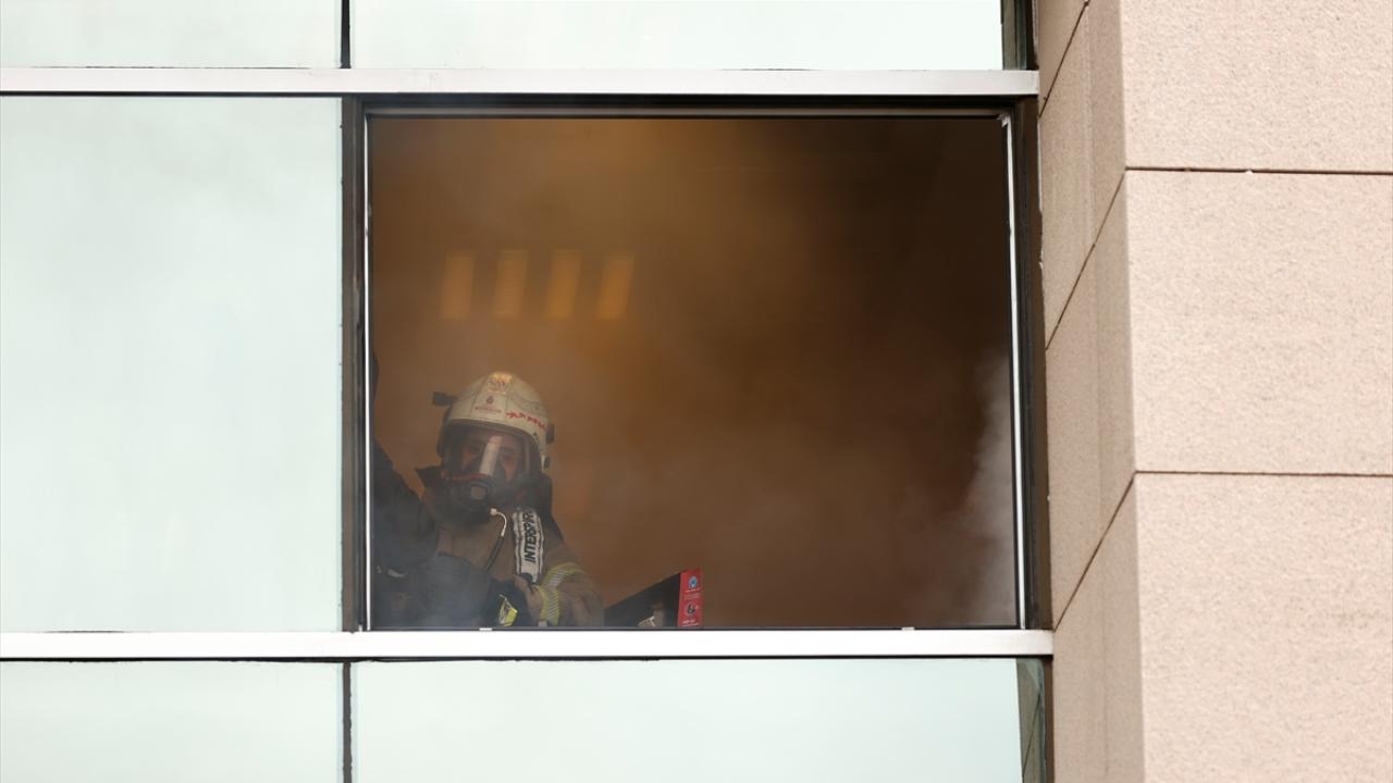 Başka bir katta mahsur kalan kişi ise adliye binasının tavanına asılan iple o bölüme ulaşan itfaiye eri tarafından kurtarıldı.