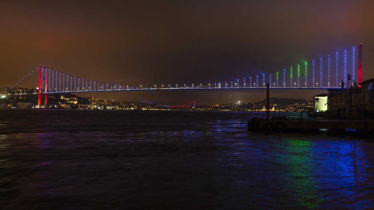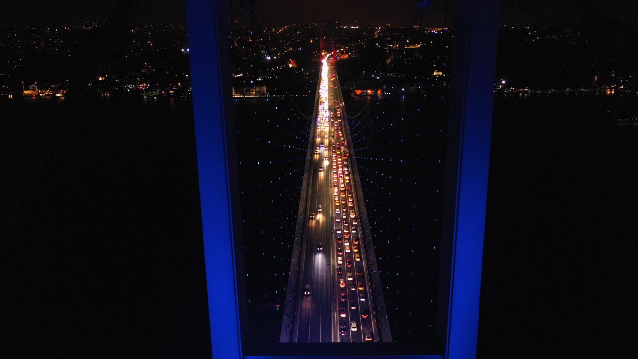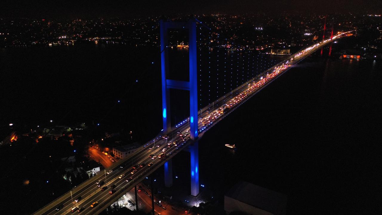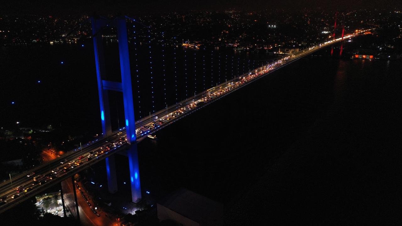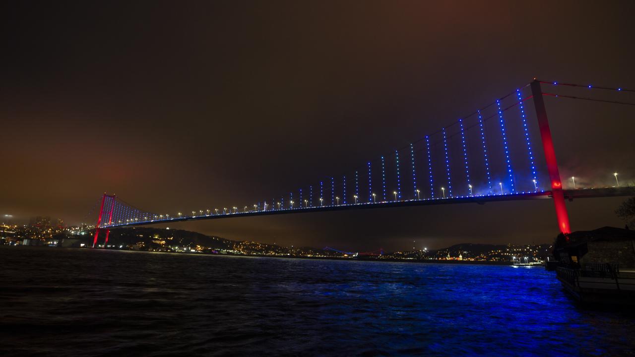 Trabzonspor'un, Spor Toto Süper Lig'de 2021-2022 sezonunu şampiyon tamamlamasının ardından İstanbul Boğazı bordo-mavi renklere büründü.