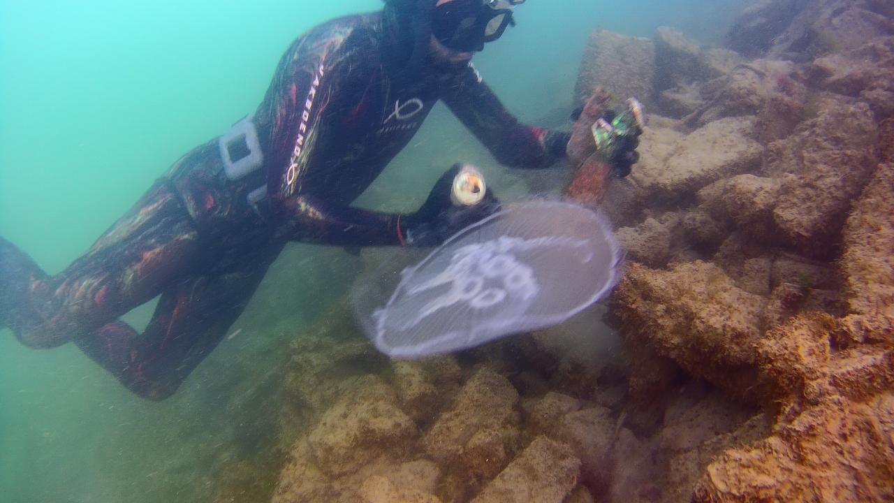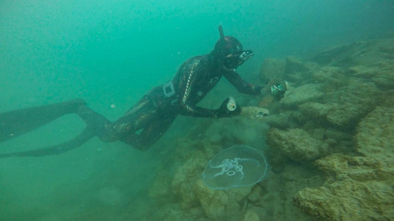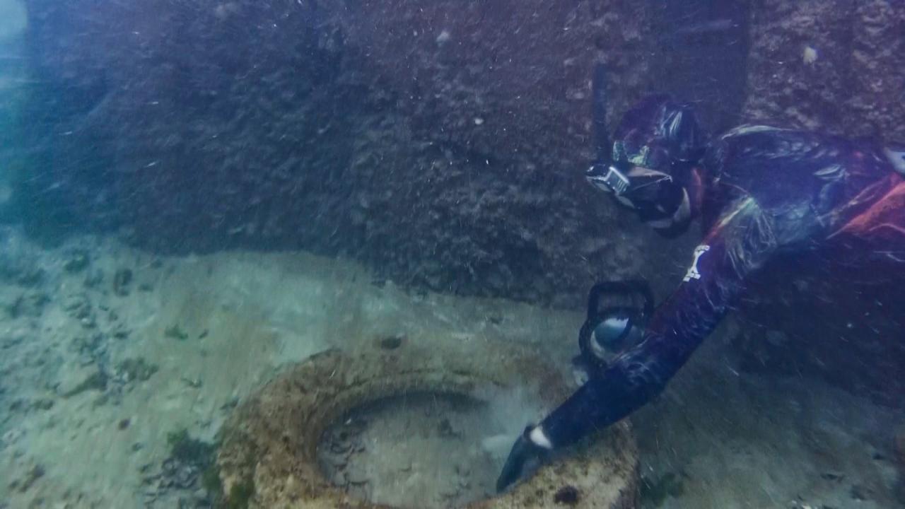 Dalgıçların gönüllü olarak yaptığı temizlik çalışmaları ise su altı dron ile görüntülendi. Tüpsüz olarak yapılan dalışlarda atıkları tespitini ve daha sonra toplama işlemlerini gerçekleştirildi. Su altından dalgıçların bir lastiği kaldırmaya çalıştıkları ancak ağırlığı nedeniyle yapamadığı görüldü. Dalgıçları görüntüleyen su altı dron ise hayalet ağlara takıldı. Dron ağlara takılması ve kurtarılması aksiyon kamerasına yansıdı.