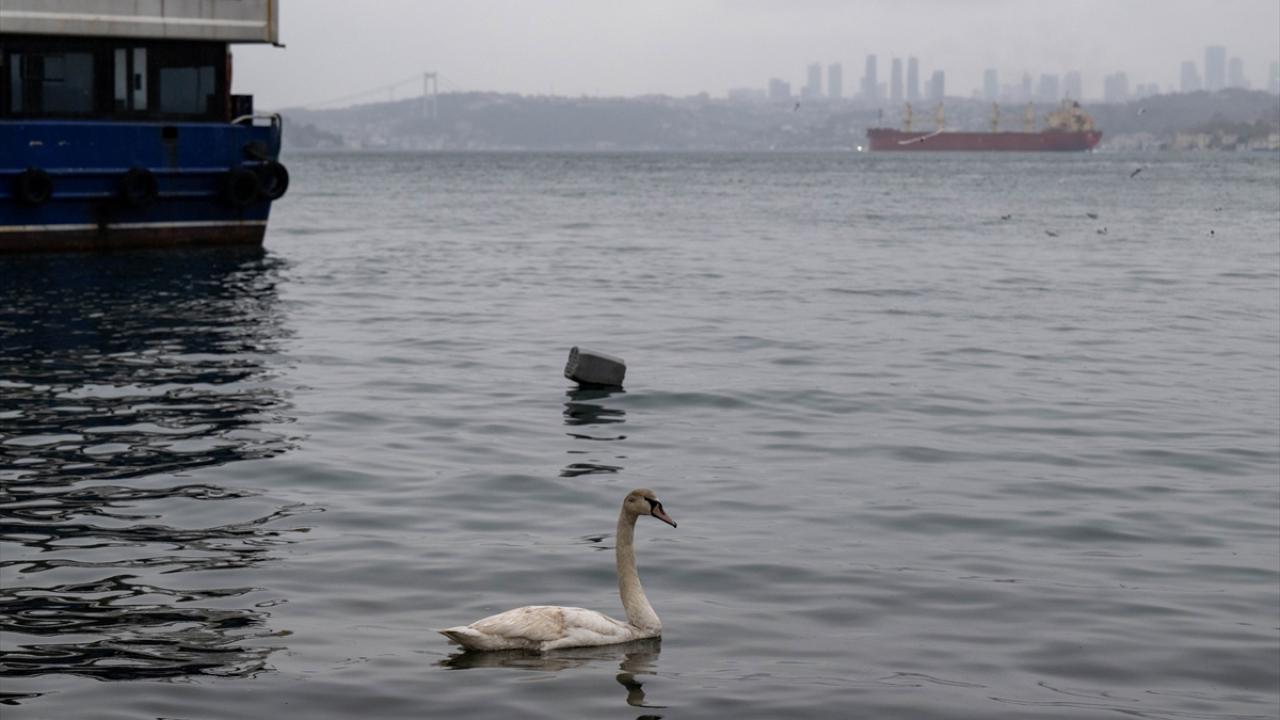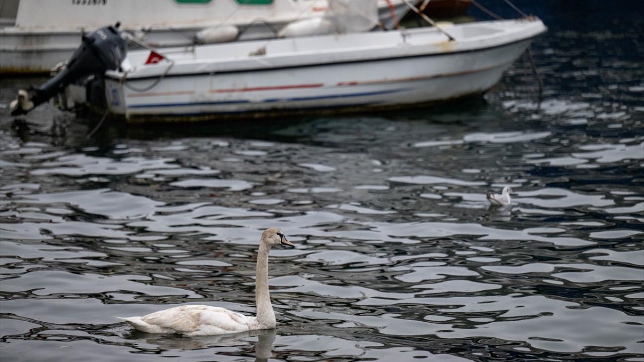 İstanbul Boğazı'nın Beykoz sahilinde kuğu görüntülendi.