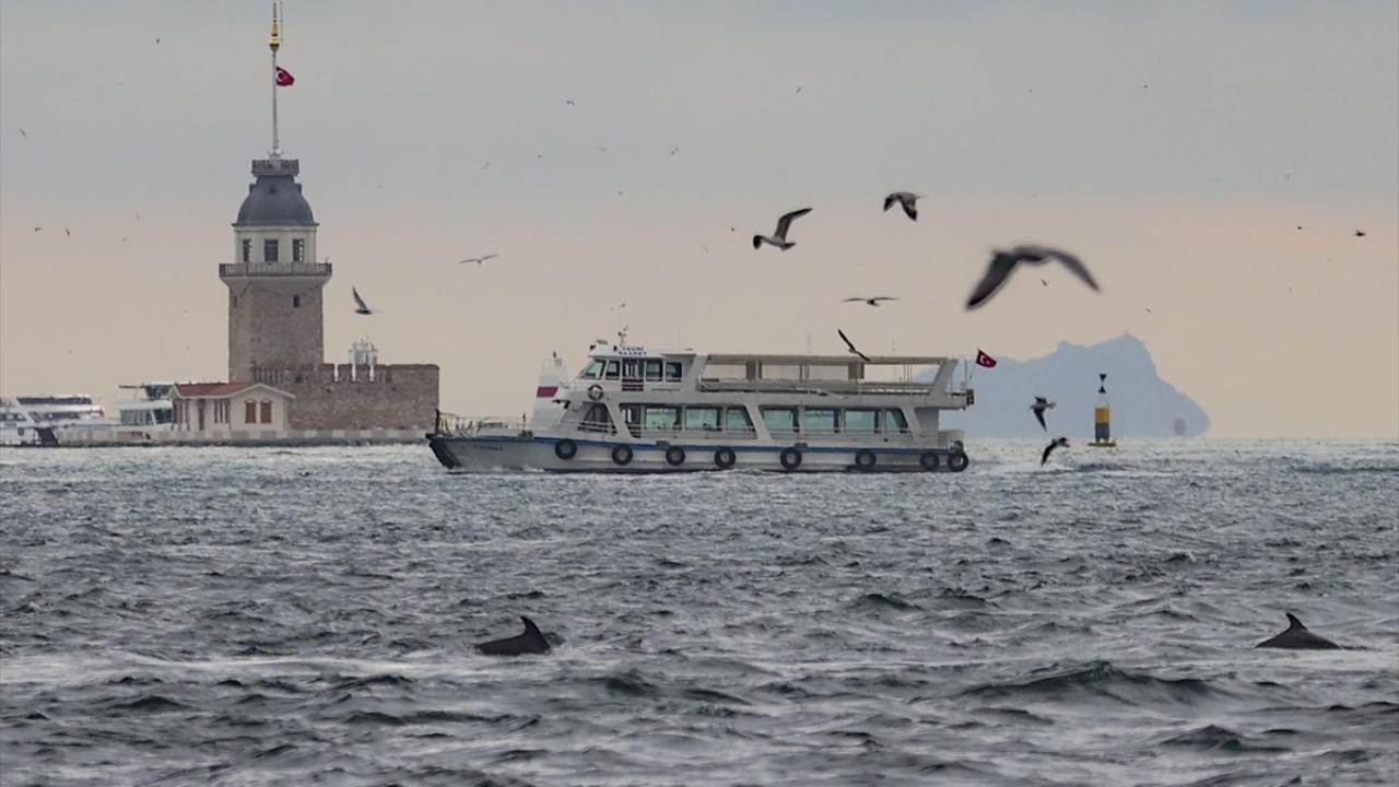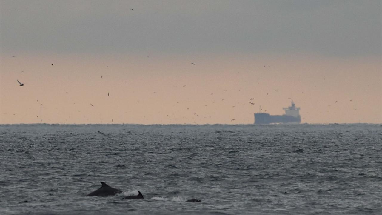 İstanbul Boğazı'nda sabah saatlerinde avlanan yunus sürüsü görüntülendi.
