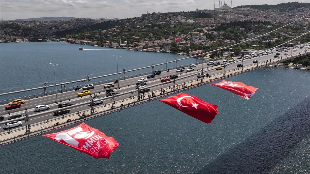 İstanbul Boğazı'ndaki köprülere Türk bayrağı asıldı