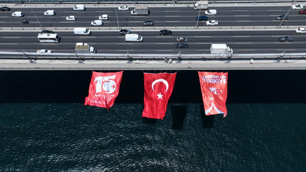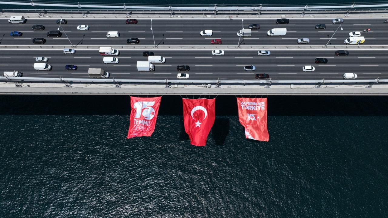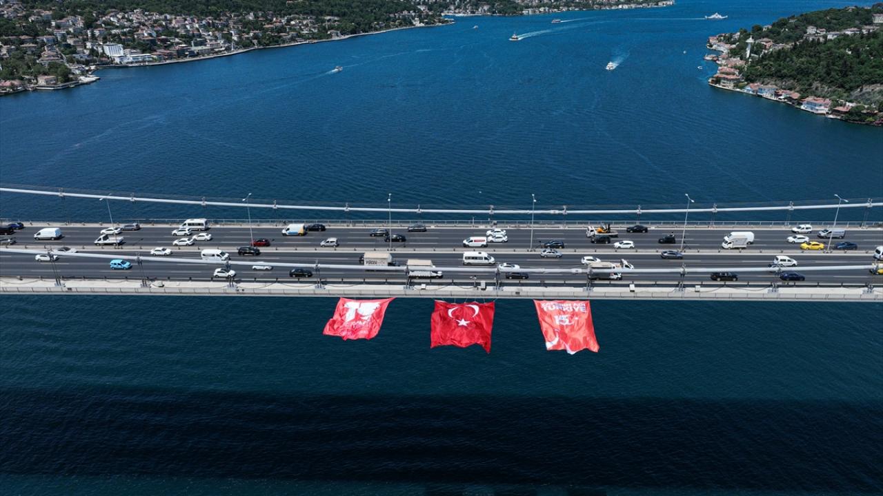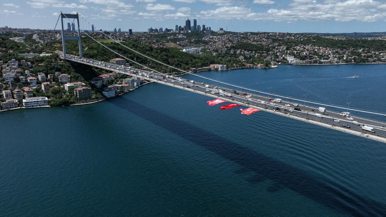 FETÖ'nün 15 Temmuz 2016'daki darbe girişiminin 9'uncu yıl dönümü kapsamında İstanbul Boğazı'ndaki Yavuz Sultan Selim, Fatih Sultan Mehmet ve 15 Temmuz Şehitler köprülerine Türk bayrağı asıldı.