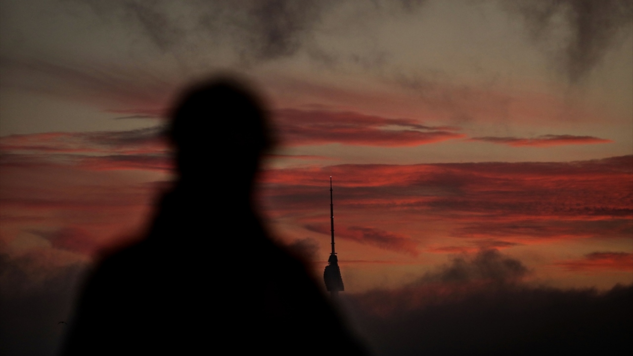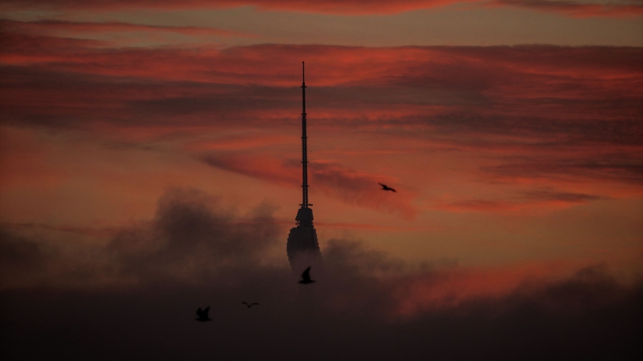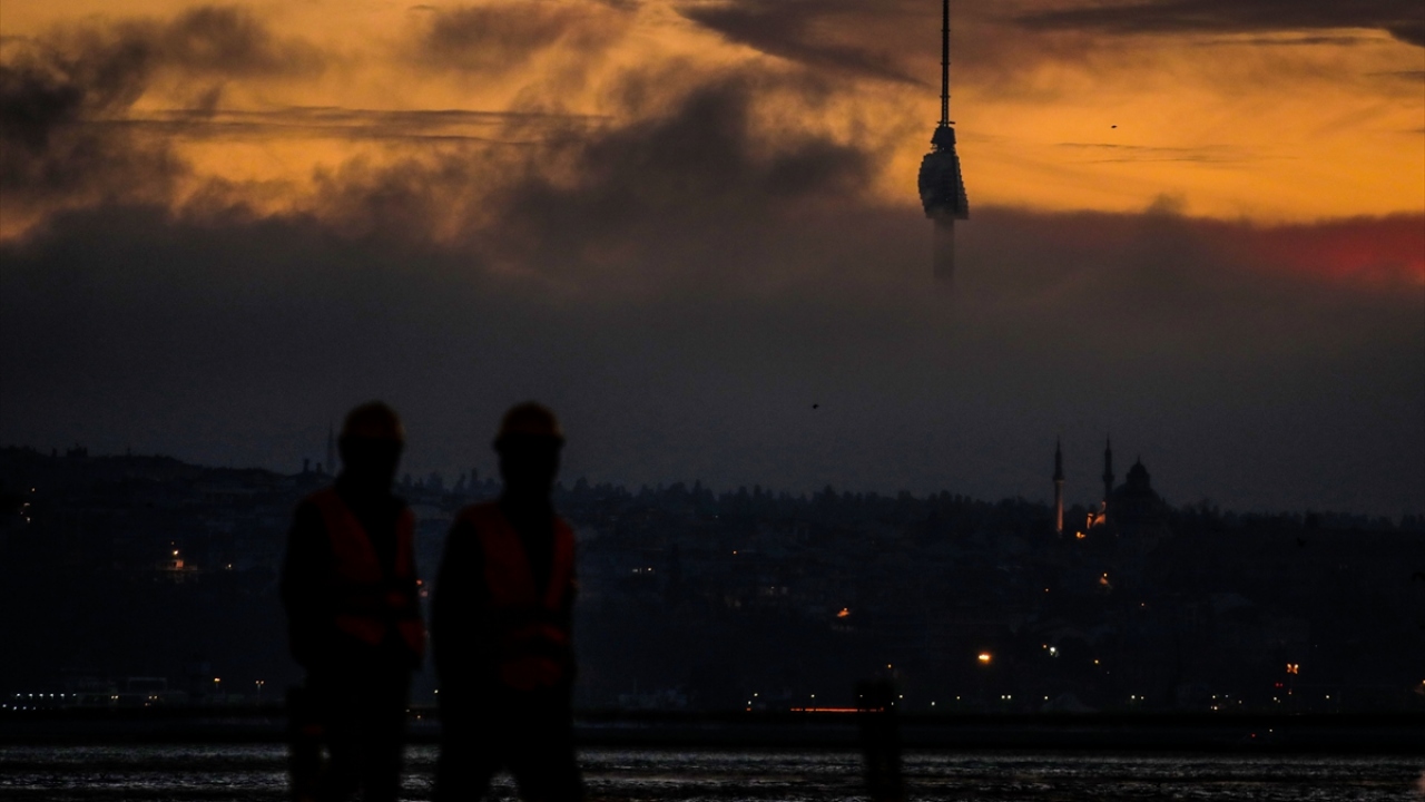 İstanbul`da gün doğumu, martılar ve Yeni Çamlıca Kulesi ile güzel görüntüler oluşturdu.