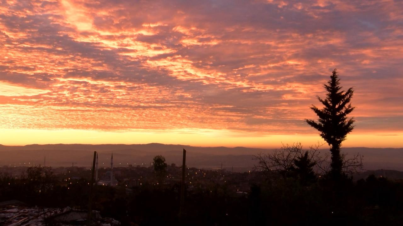Kartal Aydos Ormanı`nda da güneşin doğuşu ile birlikte gökyüzü kızıla büründü.
