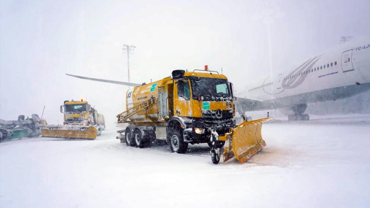 İstanbul Havalimanı`nda 300 personel, 130 kar temizleme aracı ve ekipmanı hava tarafında, 200 personel ve 50 araç da kara tarafında mesai harcıyor.