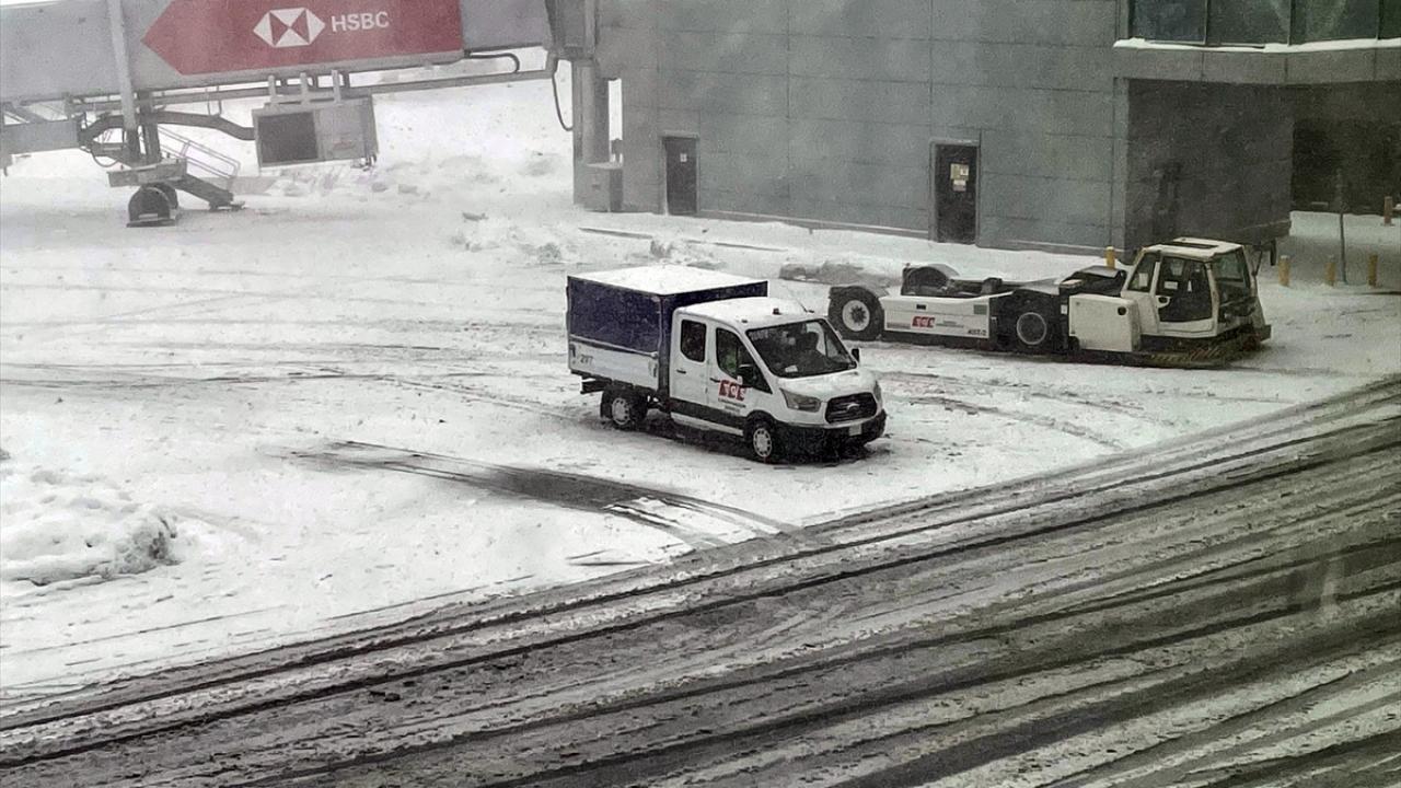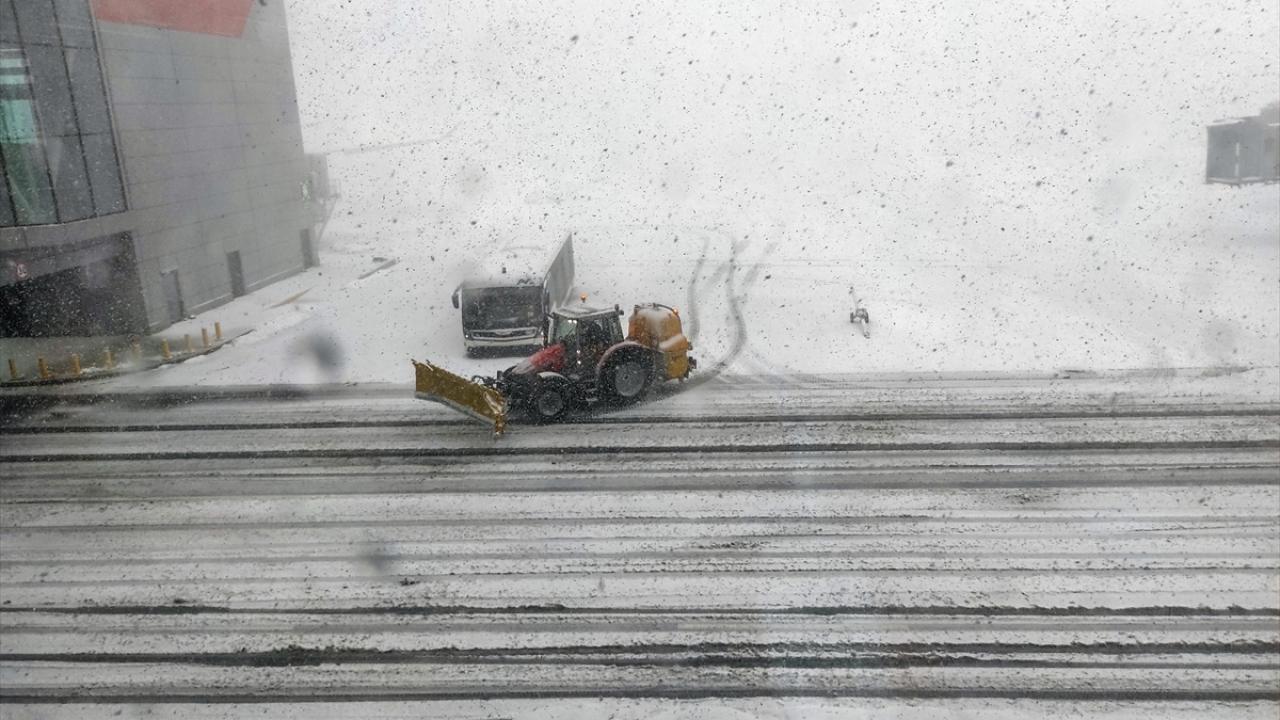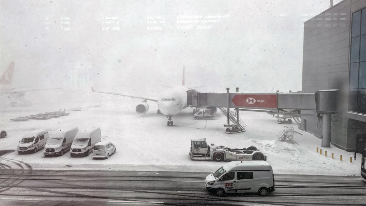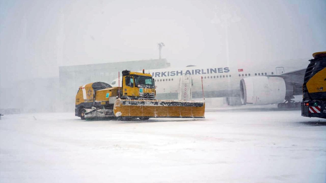 Kar yağışı nedeniyle tüm seferlerin 25 Ocak saat 04.00'a kadar durdurulduğu İstanbul Havalimanı'nda pist ve taksi yollarını temizleme çalışmaları sürüyor.