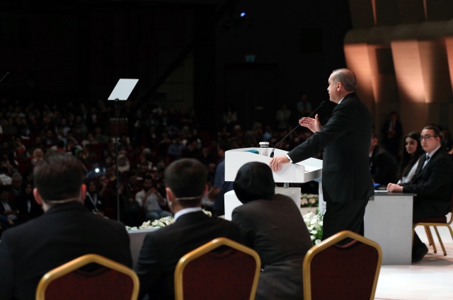 Cumhurbaşkanı Recep Tayyip Erdoğan, Kongre Merkezinde düzenlenen "İstanbul Meridyen Open `17 Uluslararası Münazara Turnuvası"nın ödül törenine katıldı. Cumhurbaşkanı Erdoğan, ödül törenine katılanlara aile fotoğrafı çektirdi.