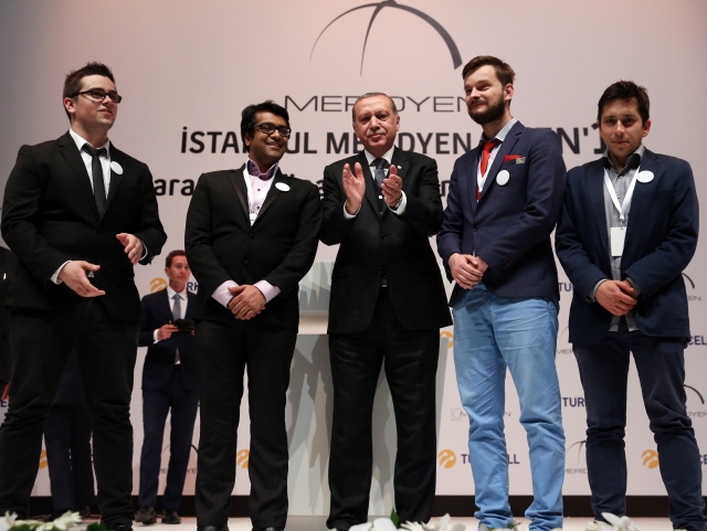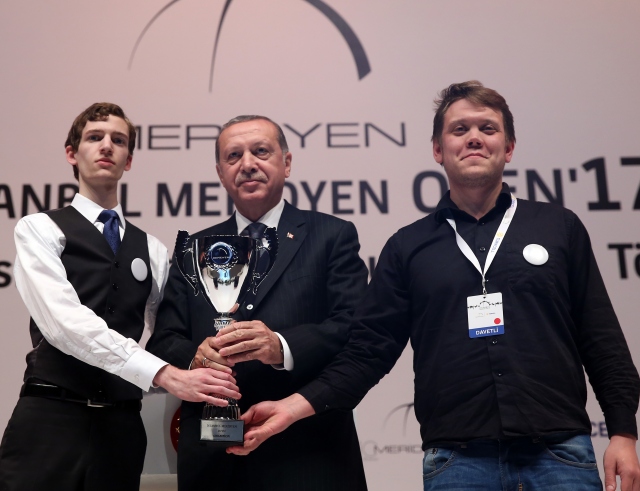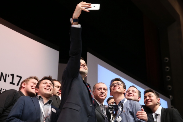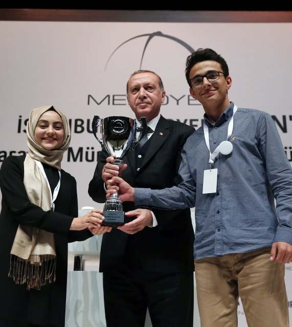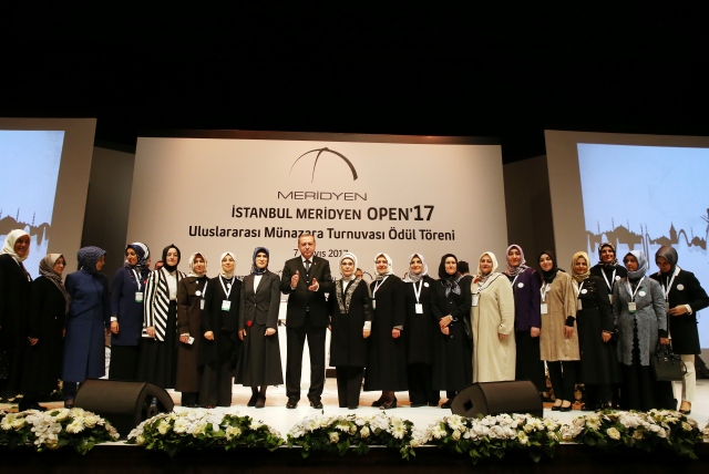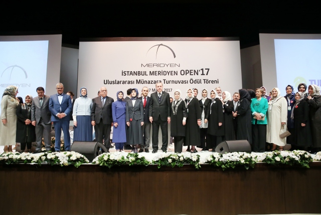 Cumhurbaşkanı Recep Tayyip Erdoğan, Haliç Kongre Merkezinde düzenlenen "İstanbul Meridyen Open `17 Uluslararası Münazara Turnuvası" ödül törenine katıldı. Cumhurbaşkanı Erdoğan turnuvada dereceye girenlerle fotoğraf çektirdi.