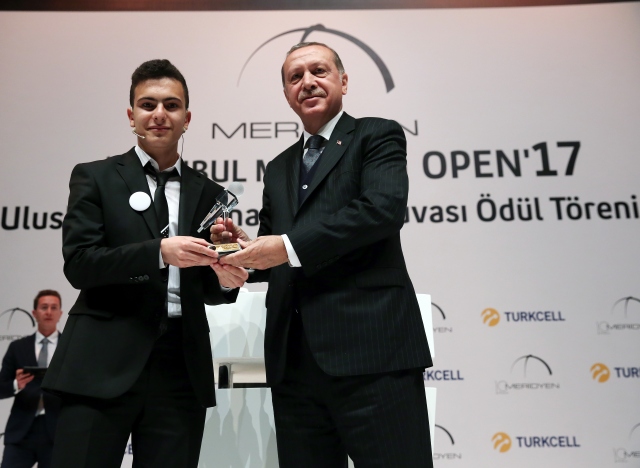Cumhurbaşkanı Recep Tayyip Erdoğan, Haliç Kongre Merkezinde düzenlenen "İstanbul Meridyen Open `17 Uluslararası Münazara Turnuvası" ödül törenine katıldı. Cumhurbaşkanı Erdoğan, turnuvada dereceye girenlere ödüllerini verdi.