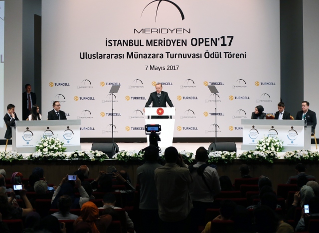 Cumhurbaşkanı Recep Tayyip Erdoğan, Haliç Kongre Merkezinde düzenlenen "İstanbul Meridyen Open '17 Uluslararası Münazara Turnuvası" ödül törenine katıldı.