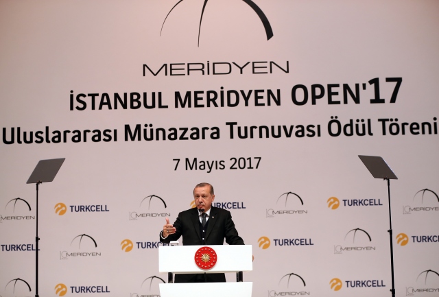 Cumhurbaşkanı Recep Tayyip Erdoğan, Haliç Kongre Merkezinde düzenlenen "İstanbul Meridyen Open `17 Uluslararası Münazara Turnuvası" ödül törenine katıldı. Cumhurbaşkanı Erdoğan, törende konuşma yaptı.