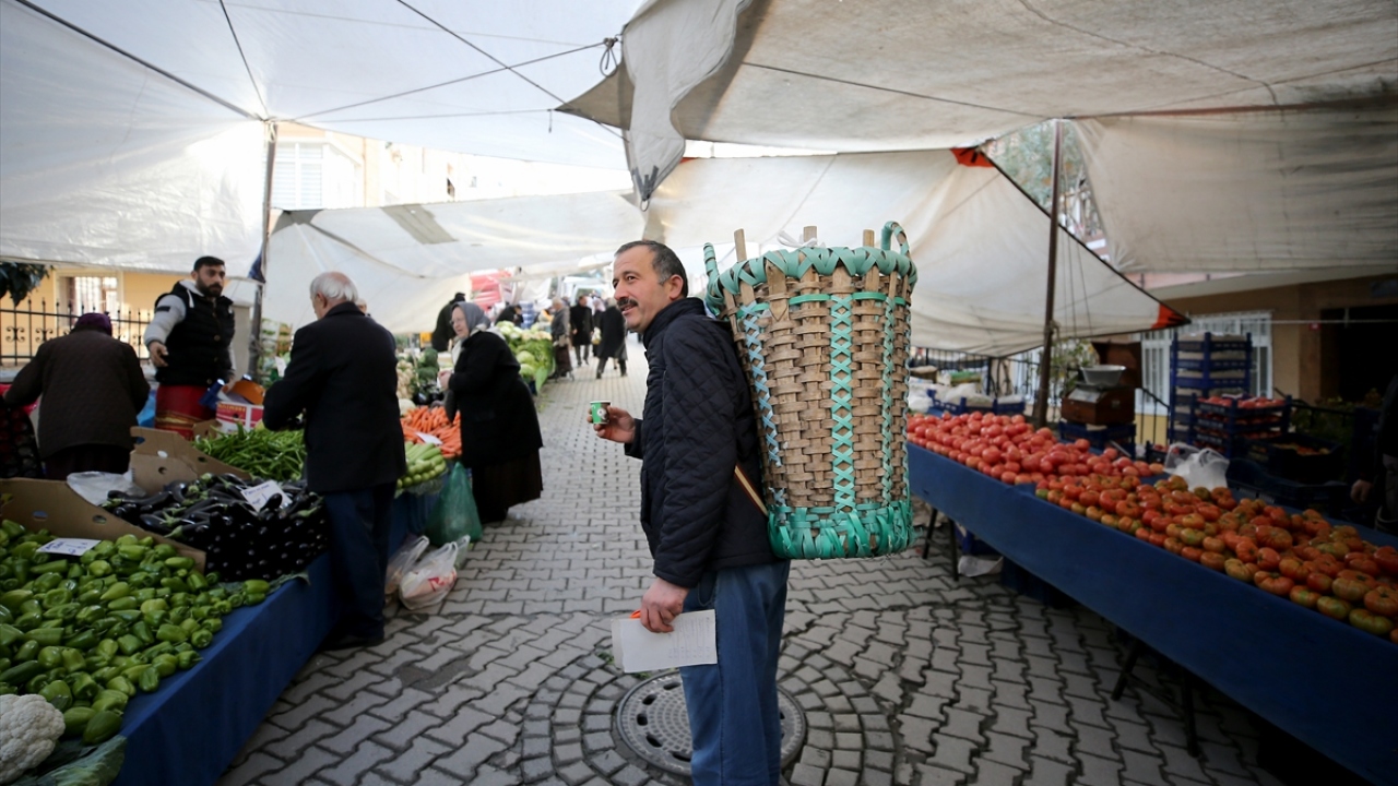 Bardakçı, sipariş olmadığı günlerde ise pazarda alışveriş yapan müşterilerin poşetlerini doldurduğu sırtındaki küfesinde taşıyor.