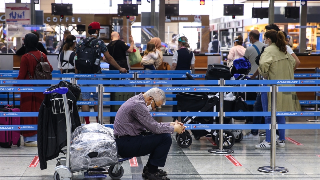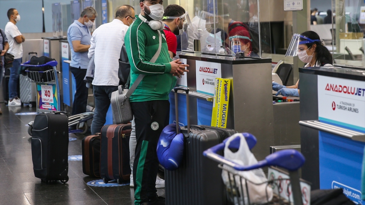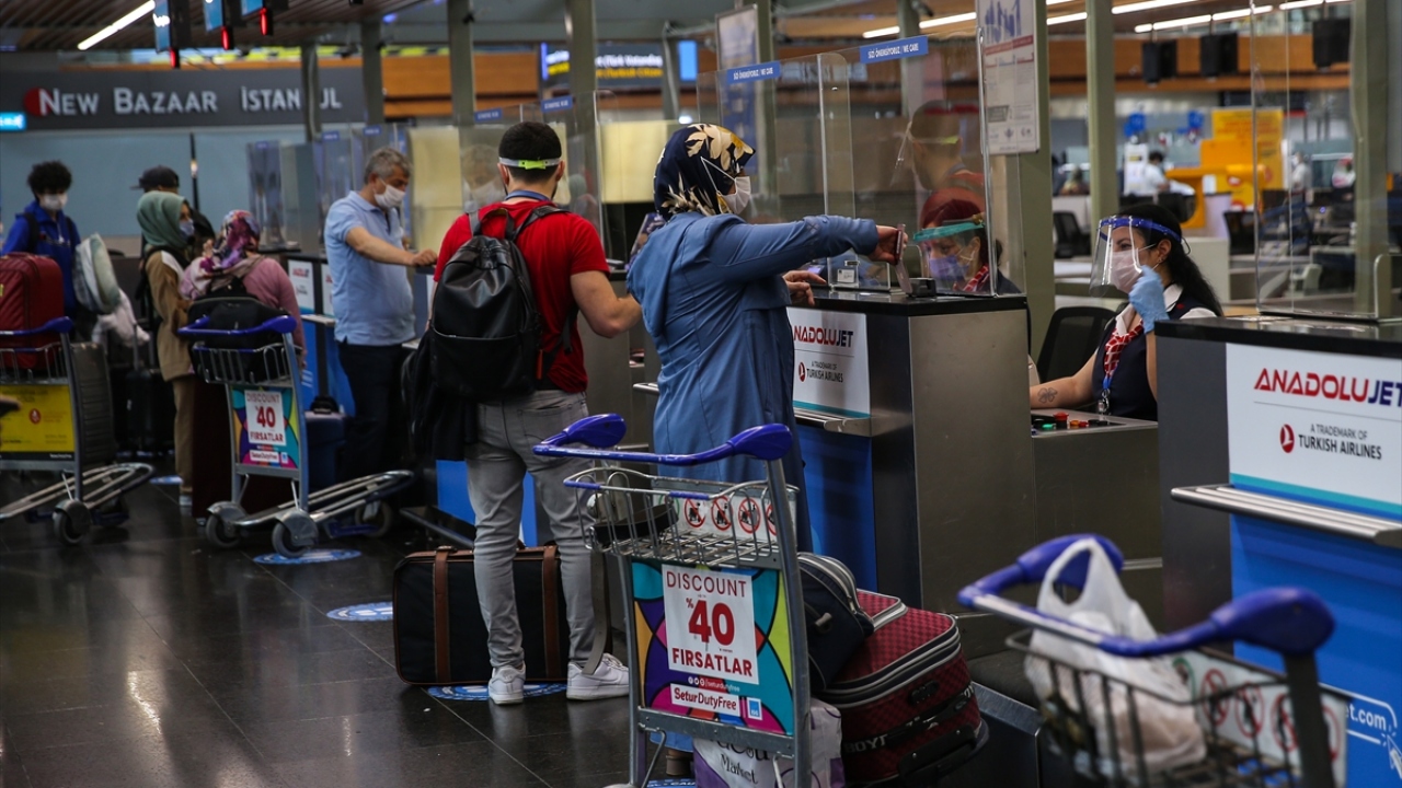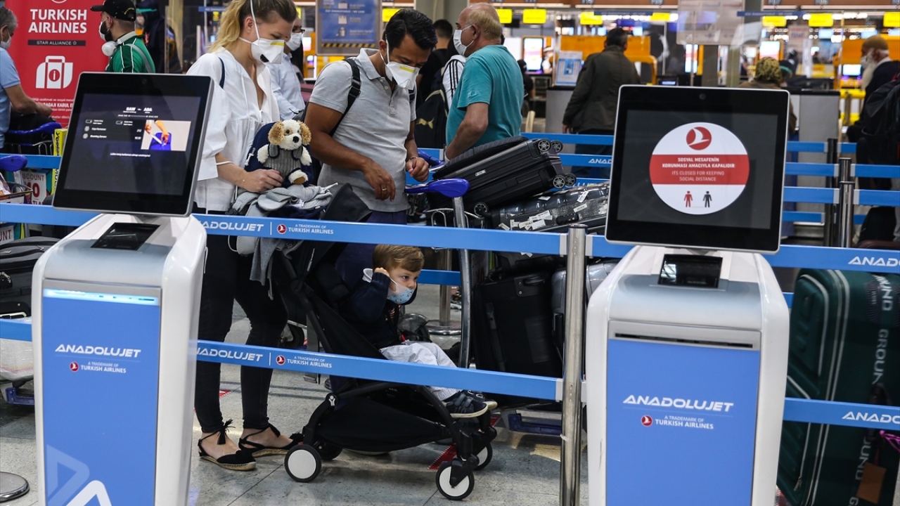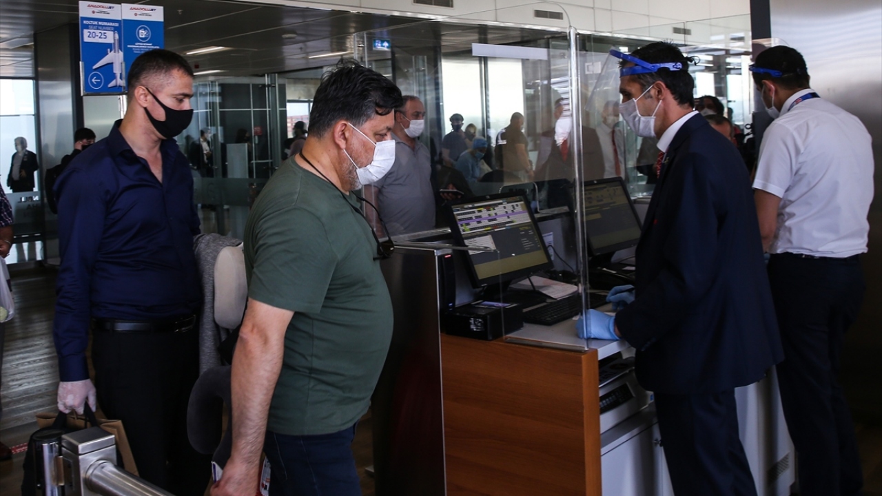 Yolcular, burada uçuş kartlarını kendileri okutarak uçağa bindirildi. Havalimanına bileti olmayan ve maske takmayan yolcular alınmadı.