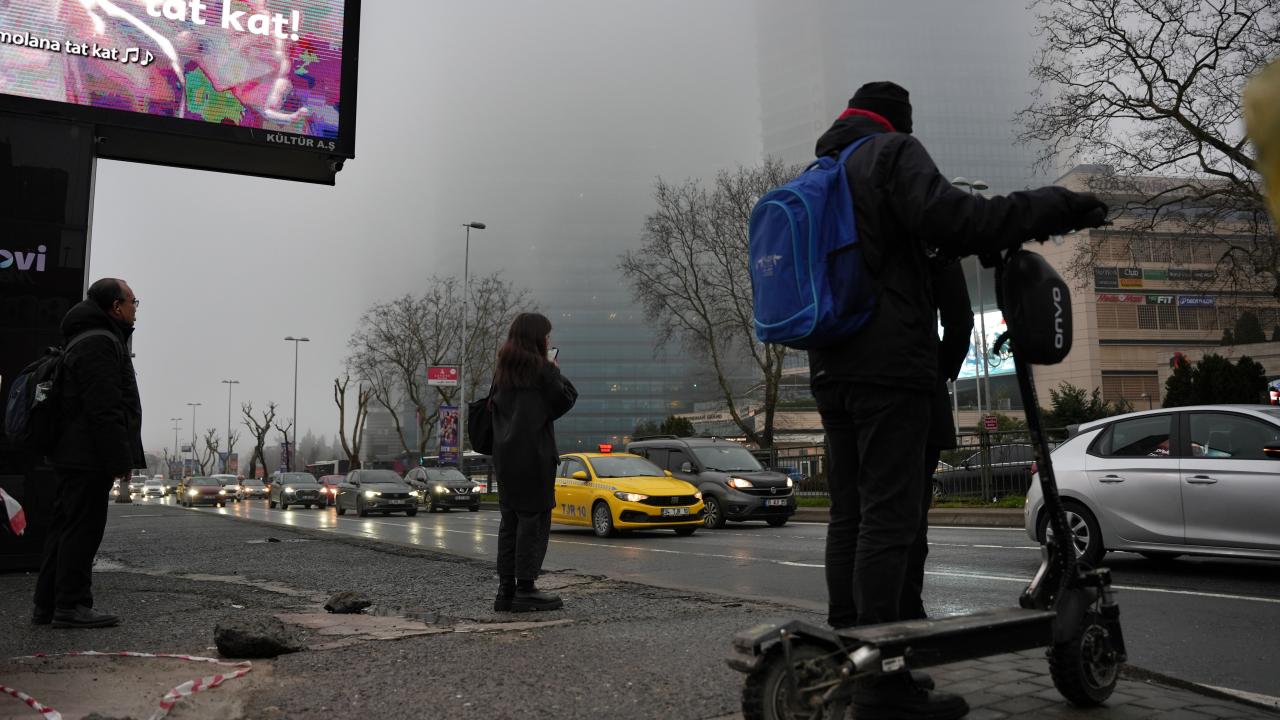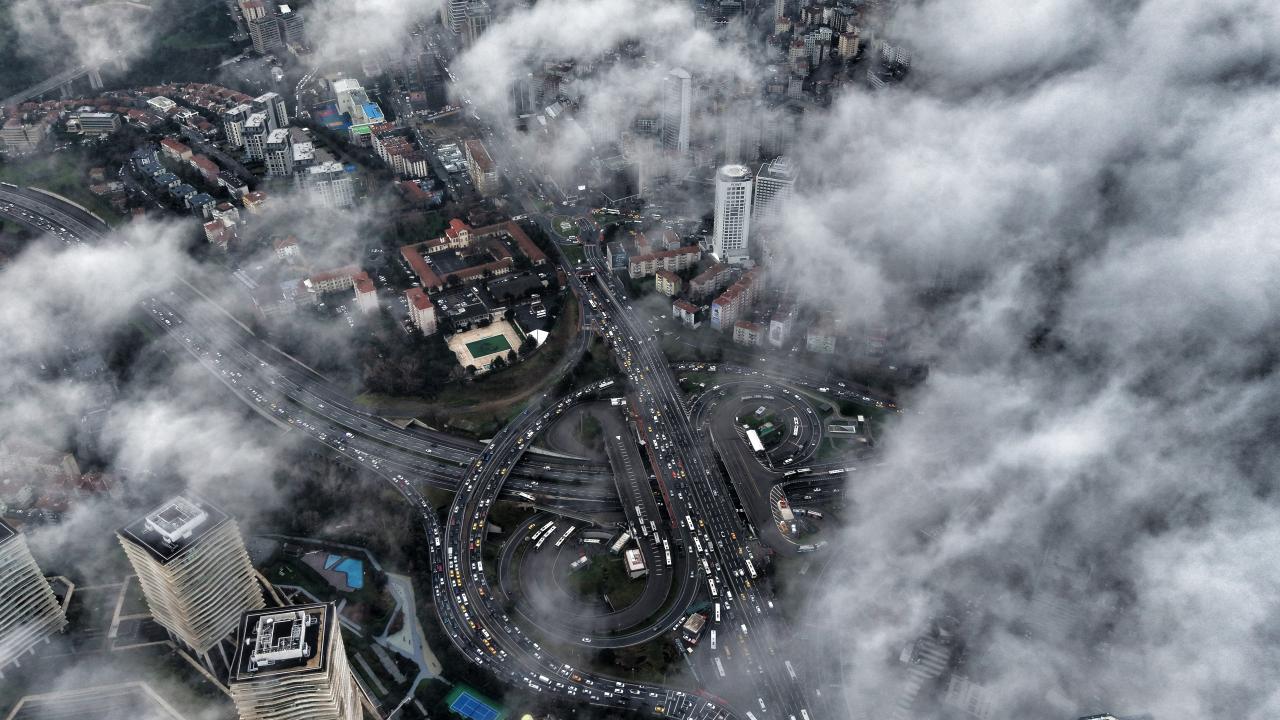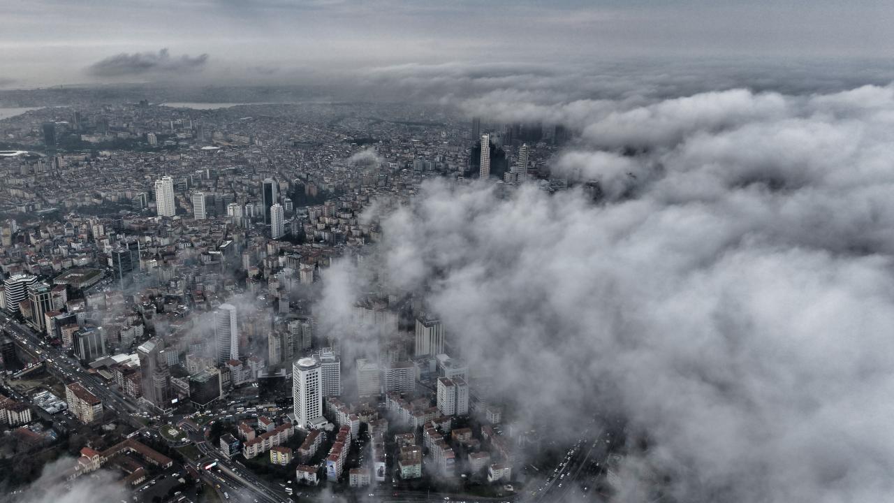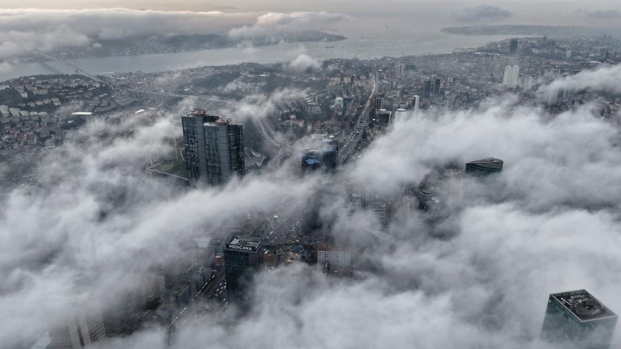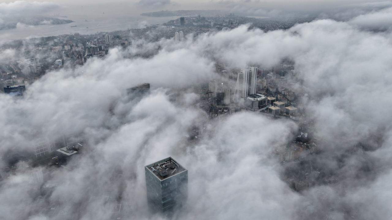 Anadolu Yakası’nda Ataşehir’de yer alan İstanbul Finans Merkezi çevresinde kaydedilen görüntülerde ise yüksek yapılar sis denizinin içinde kayboldu.