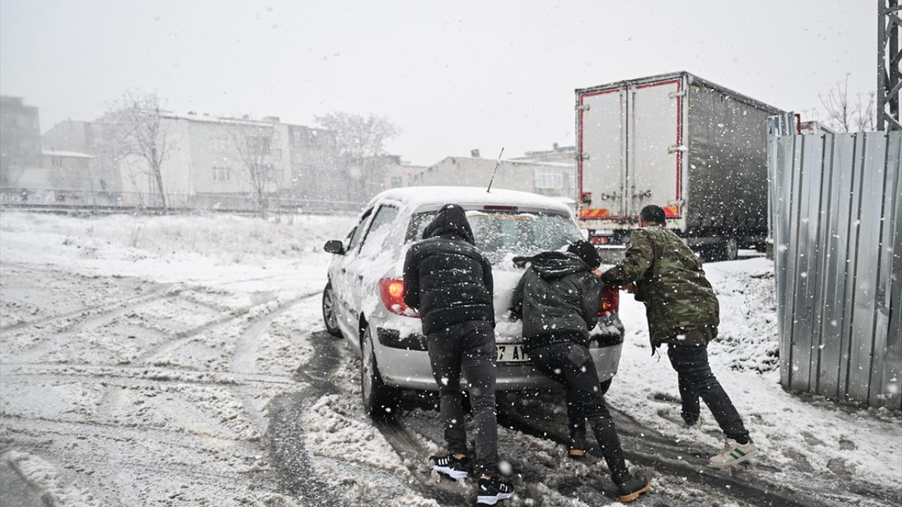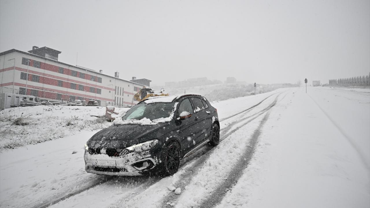 Arnavutköy`de, Anadolu Mahallesi`nde kar yağışı nedeniyle yollar beyaza bürünürken sürücüler araçlarıyla ilerlemekte zorlandı.