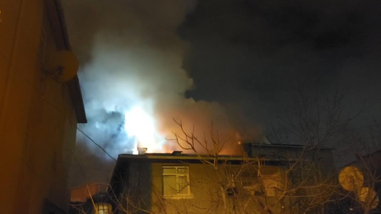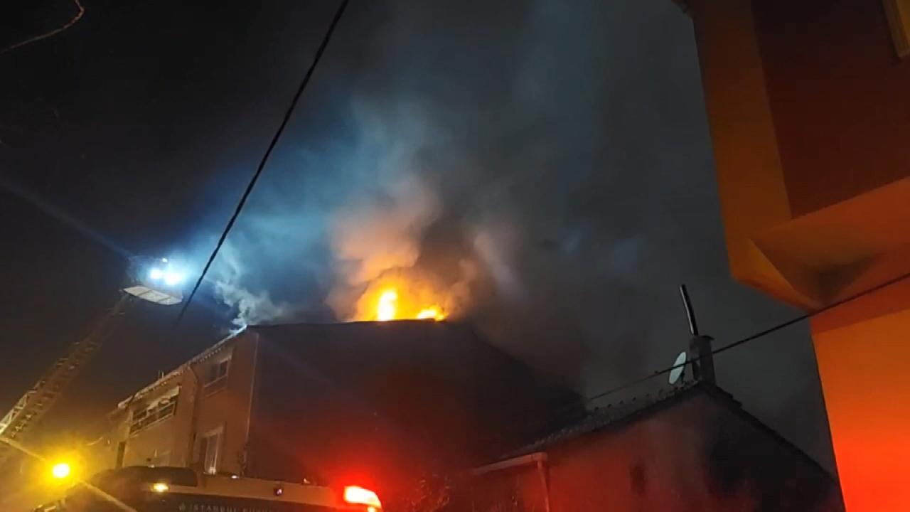İstanbul'da 3 katlı binanın çatısı alevlere teslim oldu