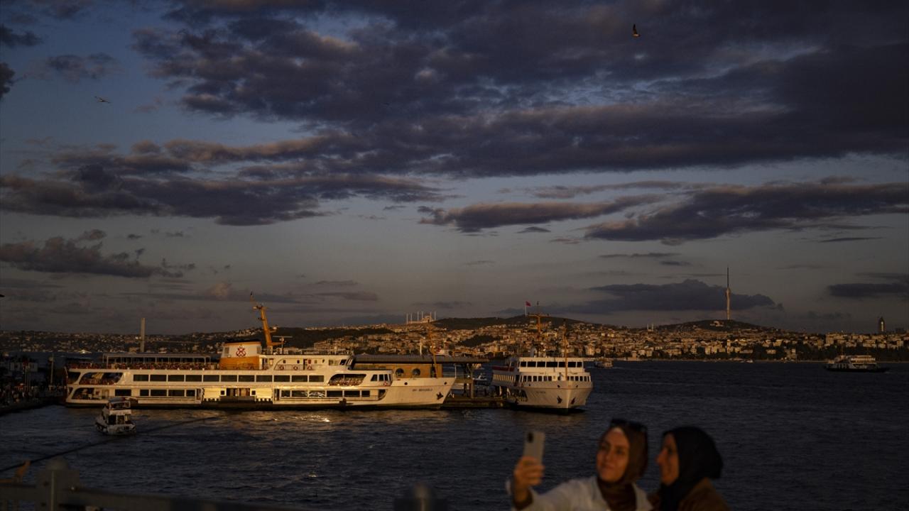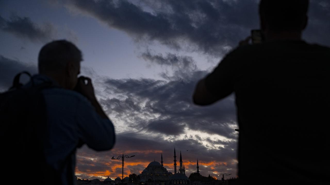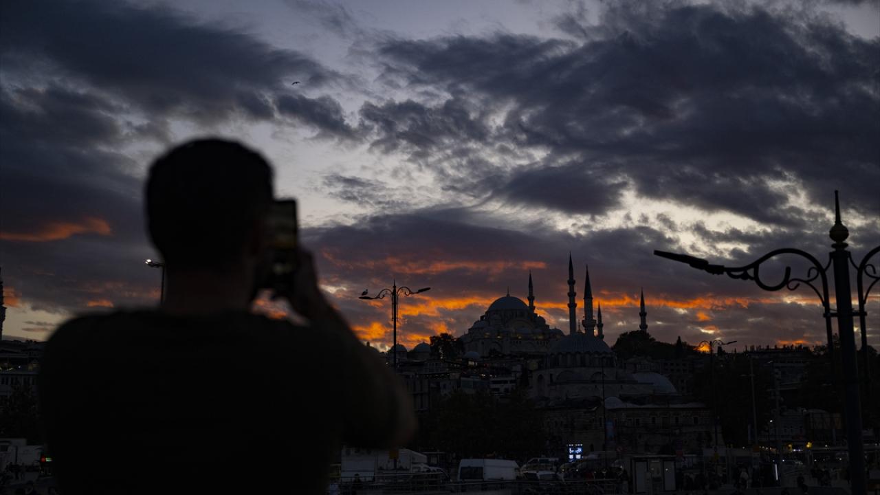 İstanbul'da akşam saatlerinde etkisini gösteren bulutlu hava, gün batımı ile birlikte hoş manzaralar oluşturdu.