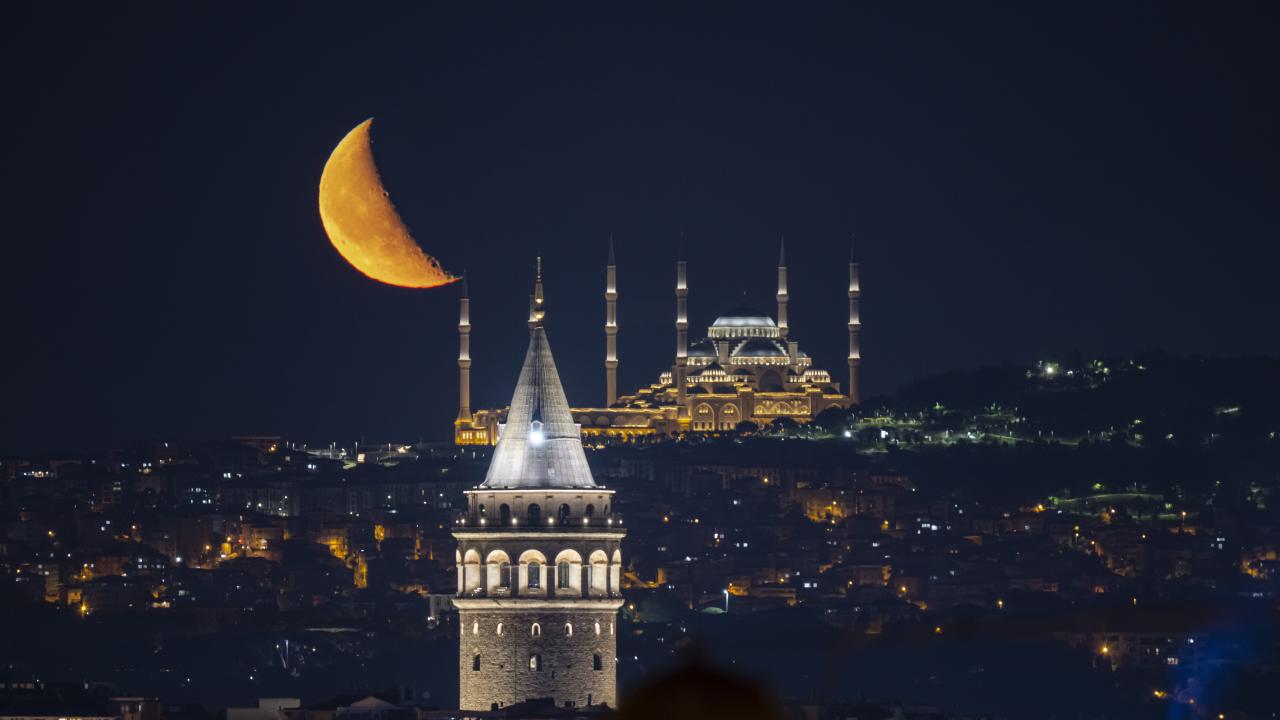 İstanbul'da Ay, Galata Kulesi ve Çamlıca Camisi ile birlikte görüntülendi.